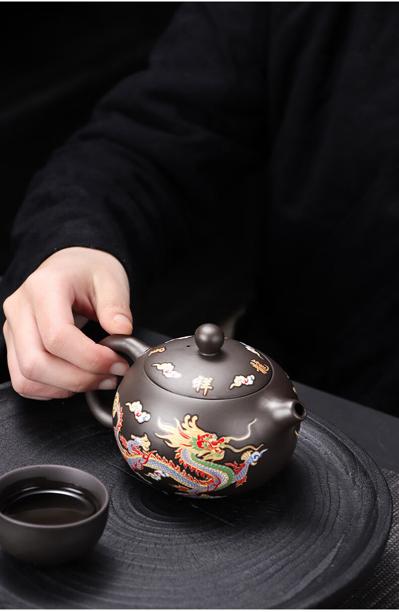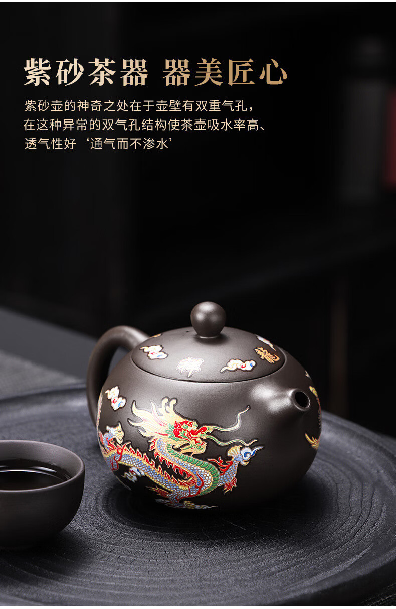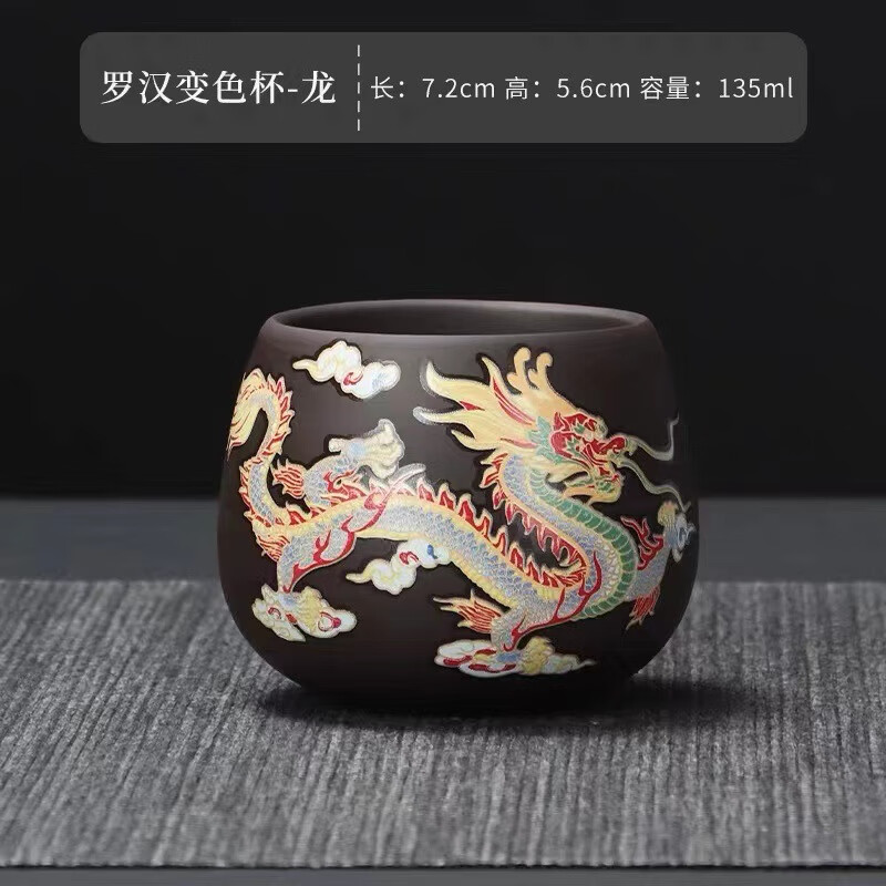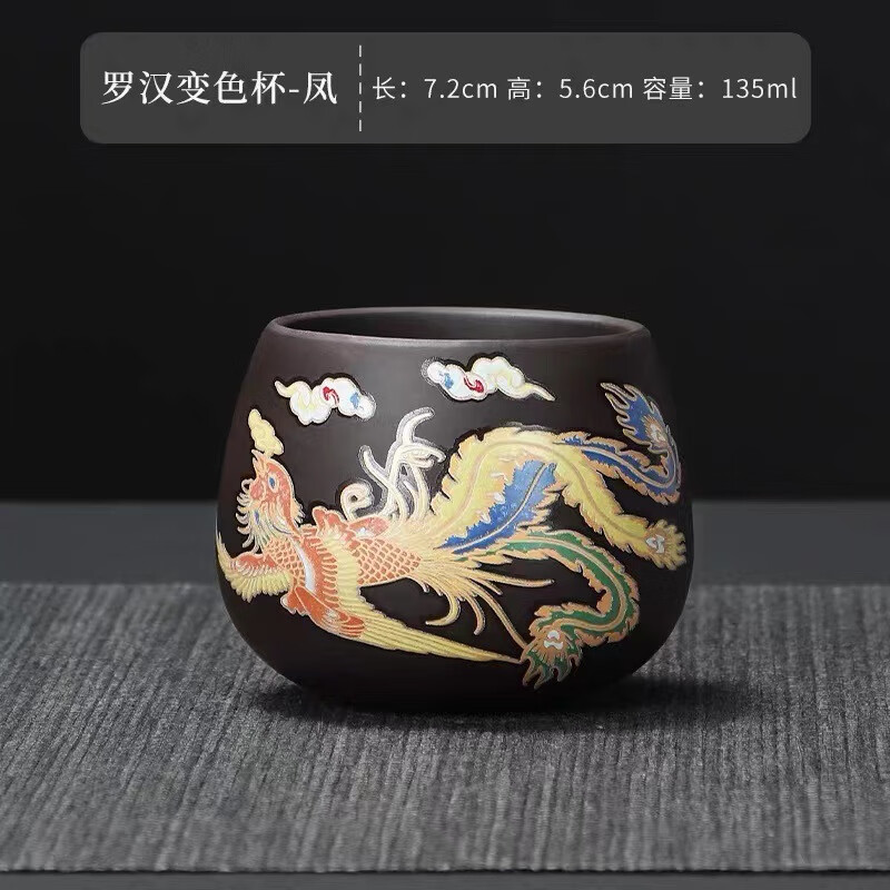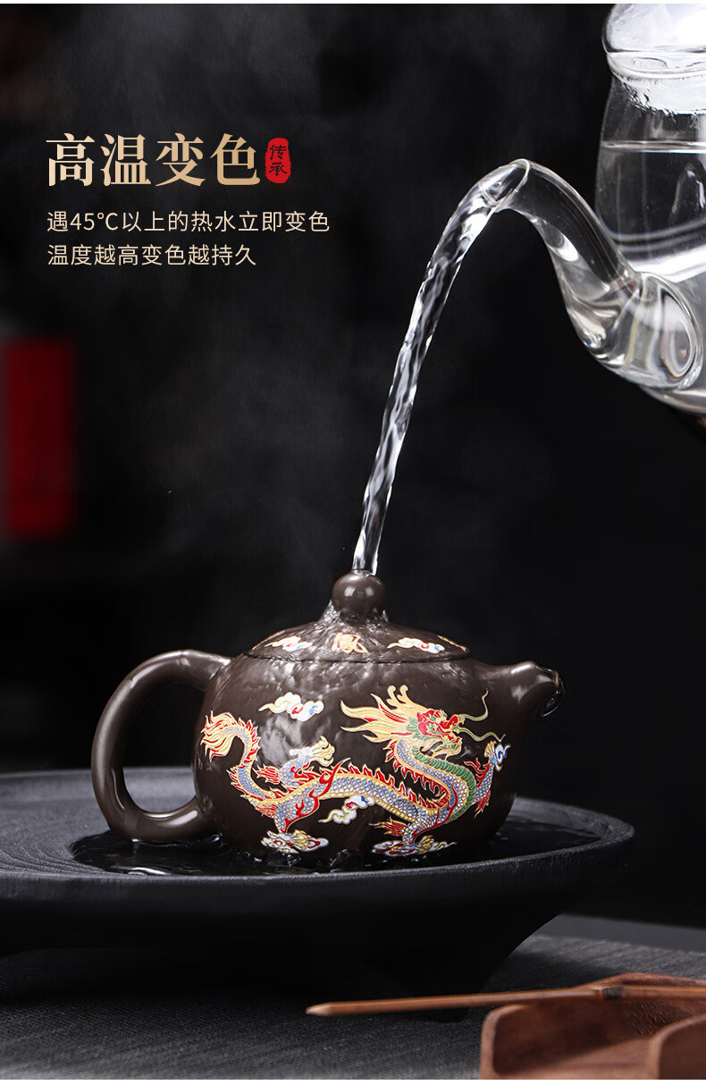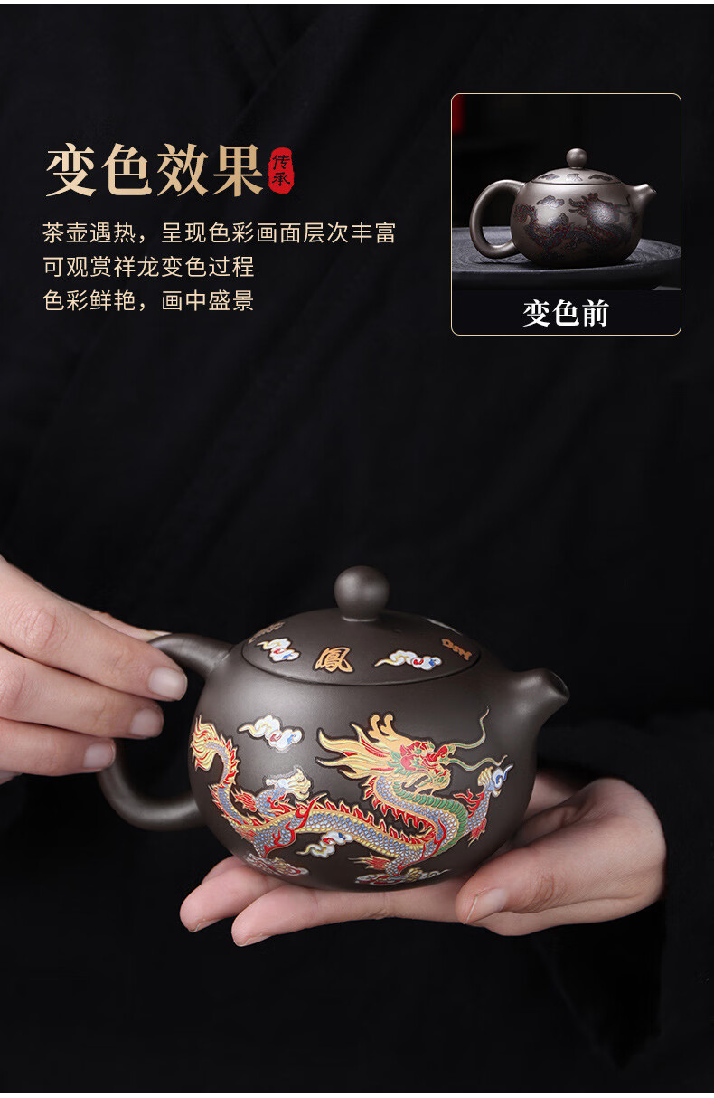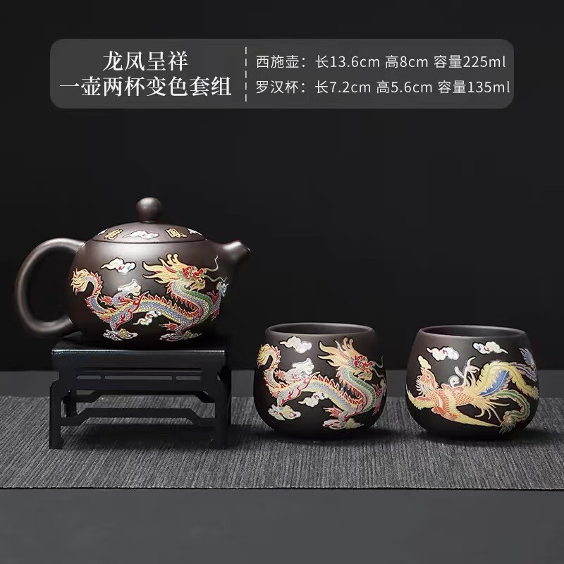 青天问月龙凤壶紫砂茶壶中式热水变色功夫茶具套装冲茶壶泡茶器龙壶不烫手 罗汉变色龙凤主人杯