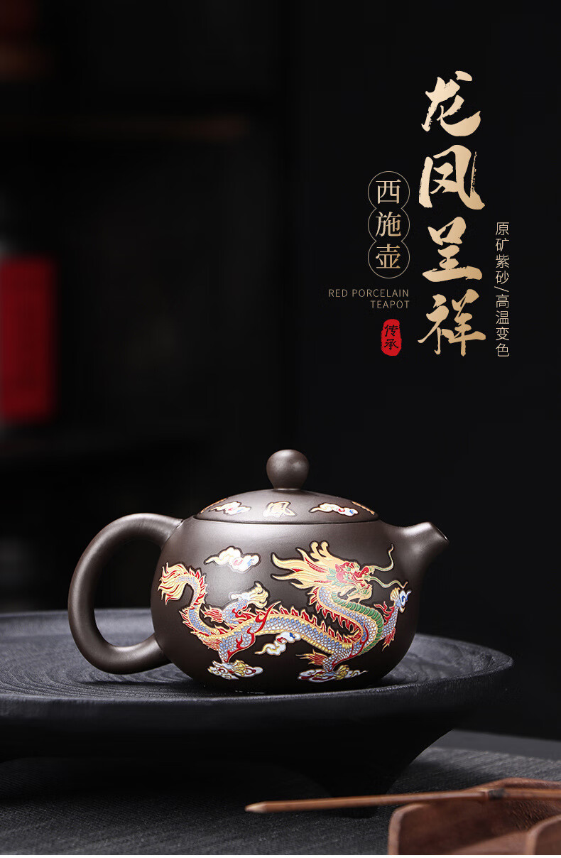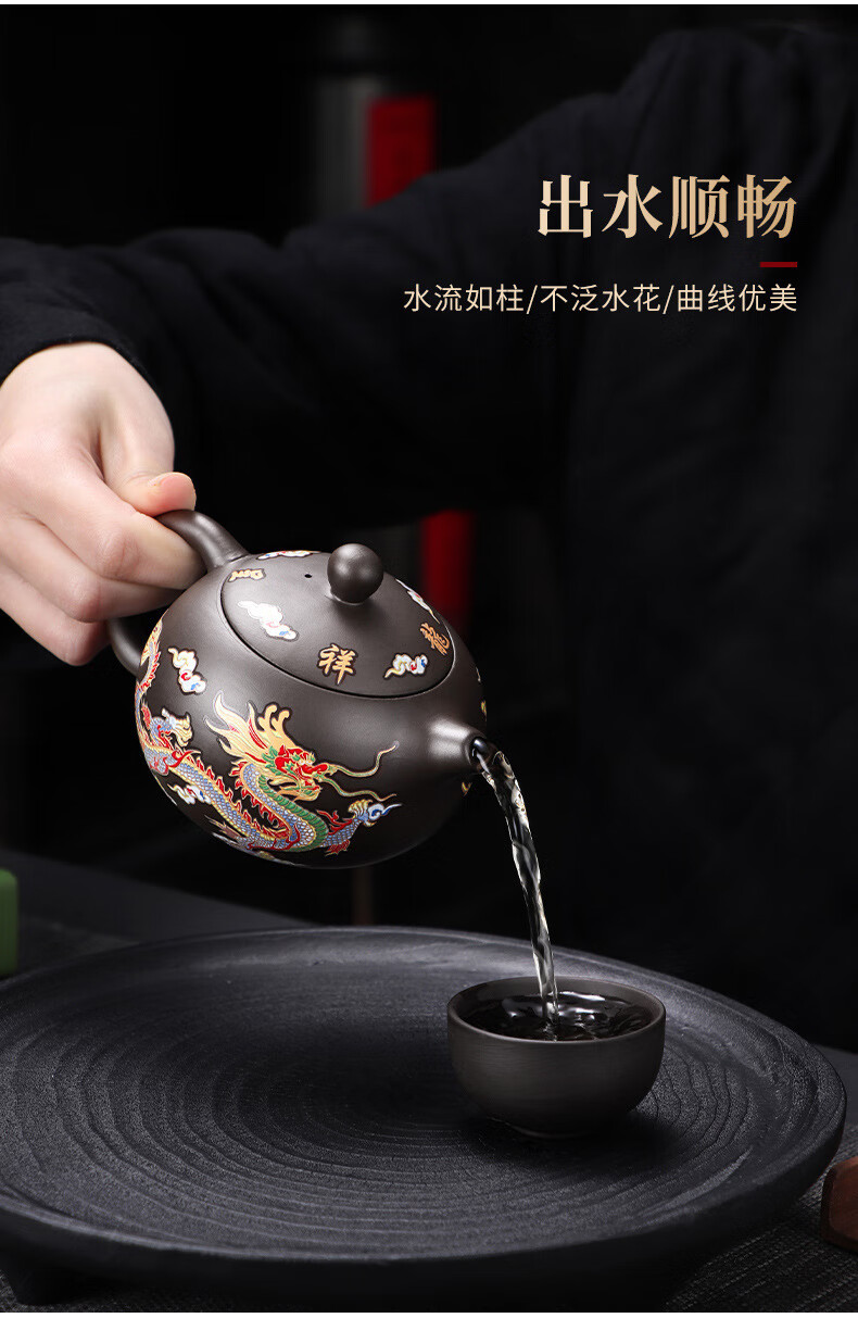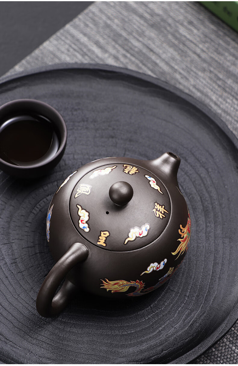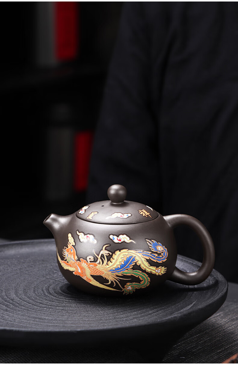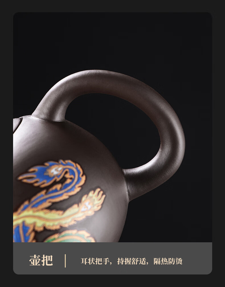 青天问月龙凤壶紫砂茶壶中式热水变色功夫茶具套装冲茶壶泡茶器龙壶不烫手 罗汉变色龙凤主人杯