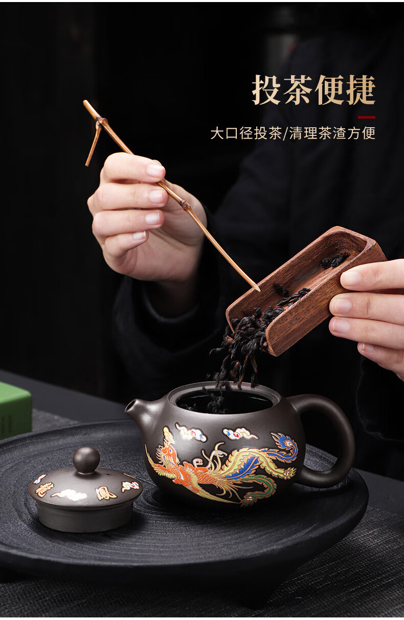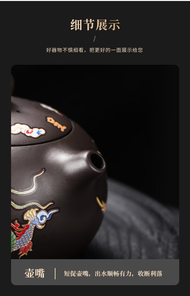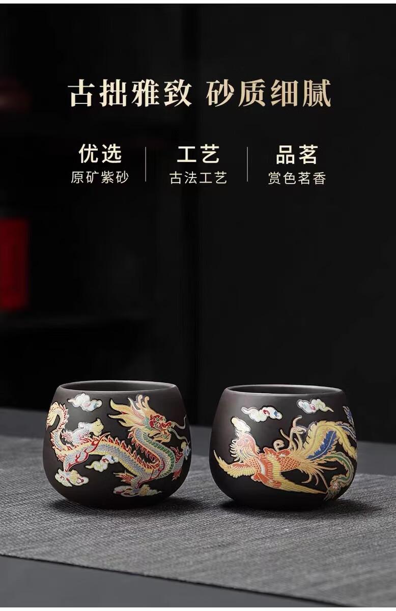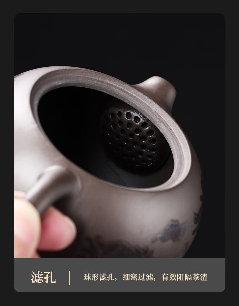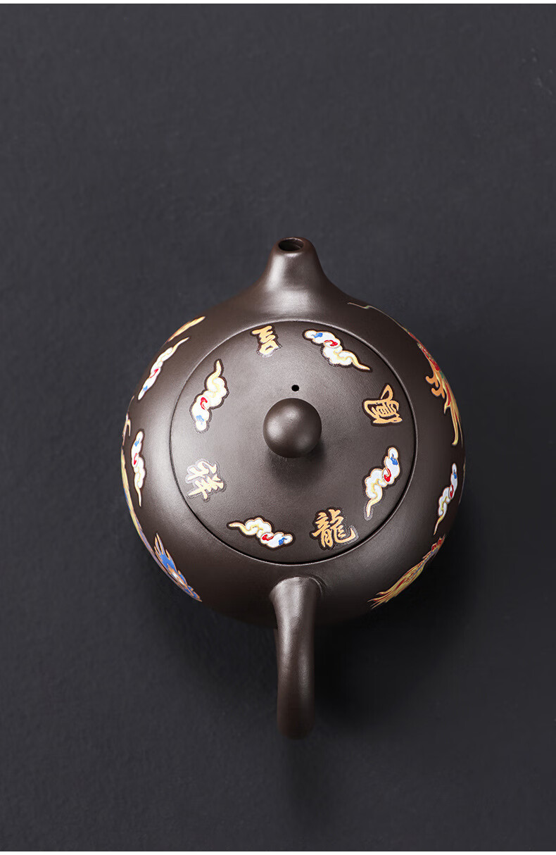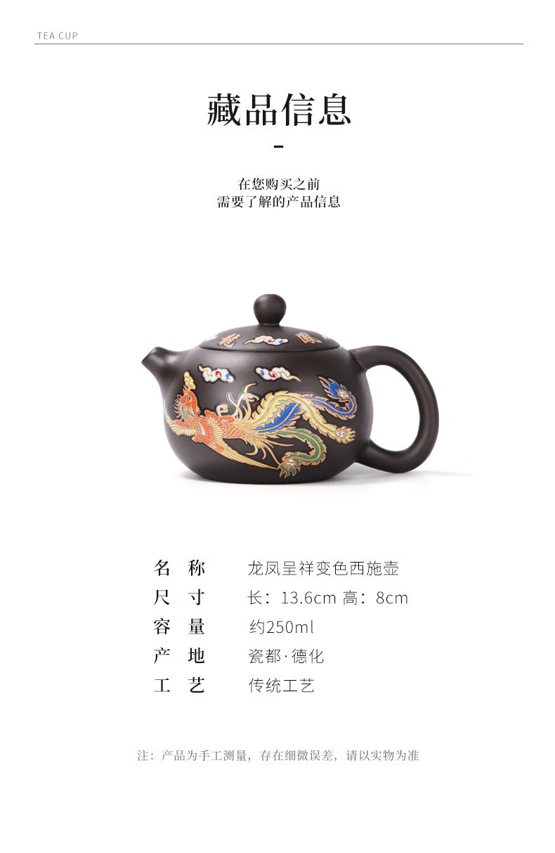 青天问月龙凤壶紫砂茶壶中式热水变色功夫茶具套装冲茶壶泡茶器龙壶不烫手 罗汉变色龙凤主人杯
