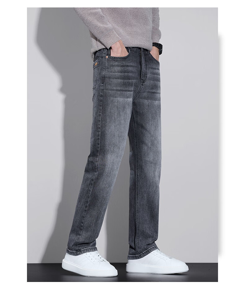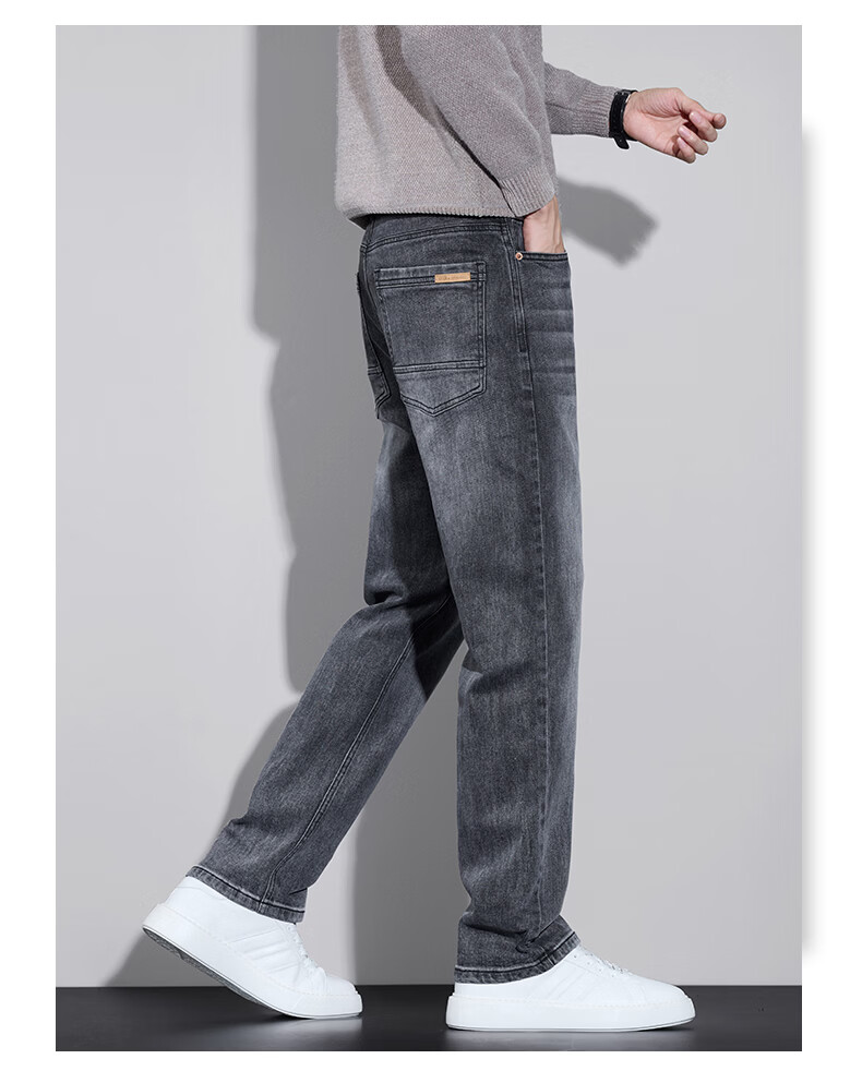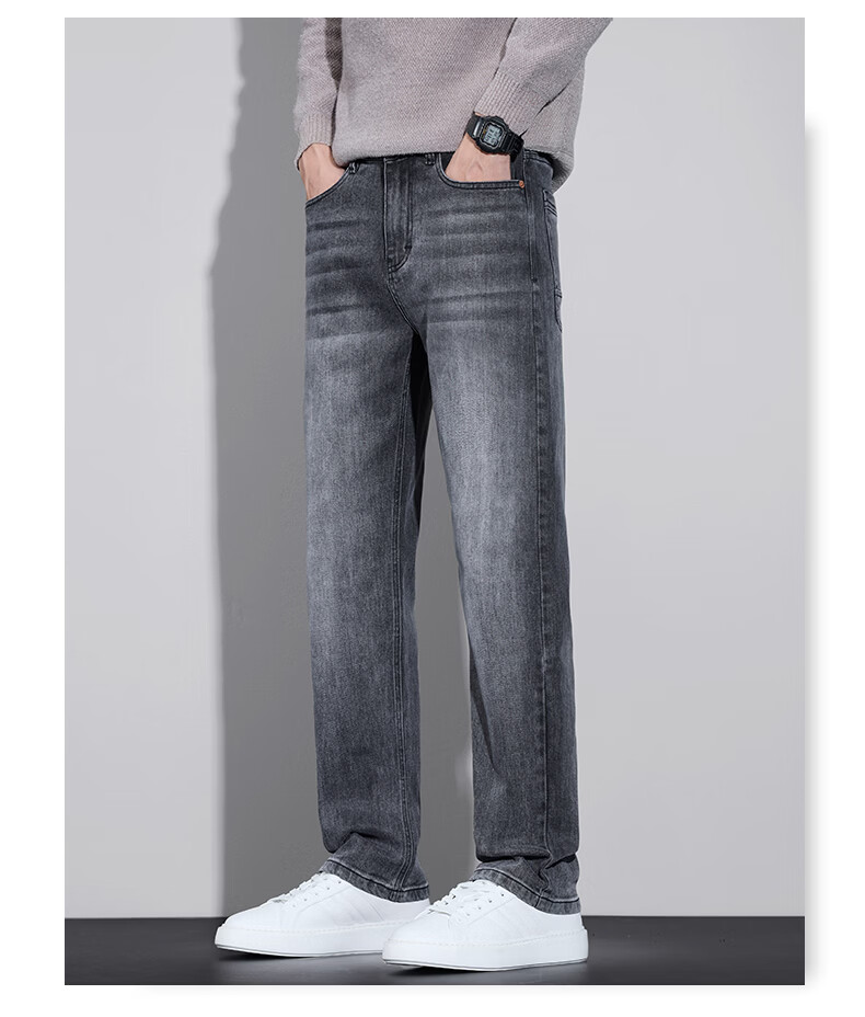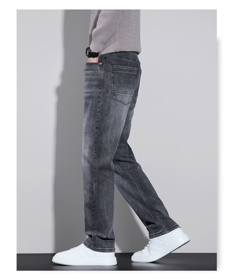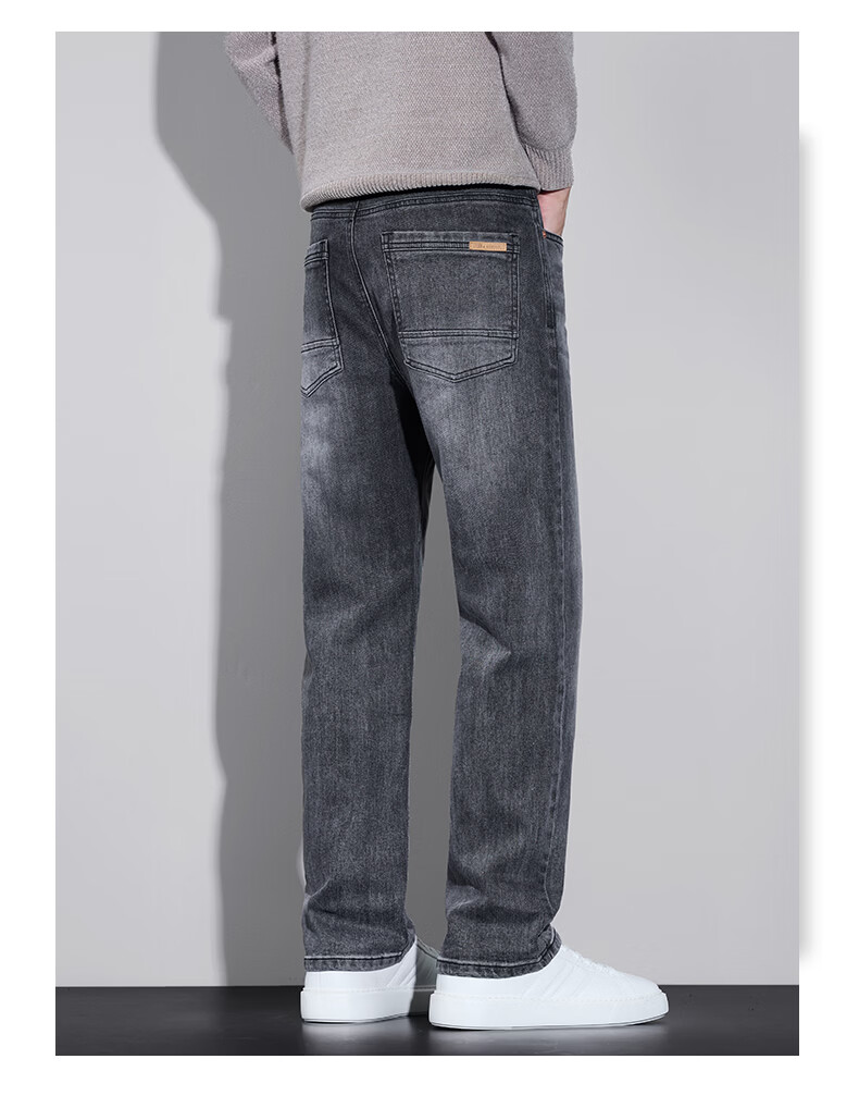 真维斯牛仔裤男春秋季2026新款百搭直筒弹力水洗潮牌休闲男款长裤 烟灰 28