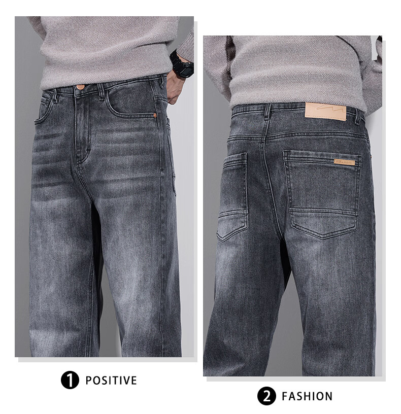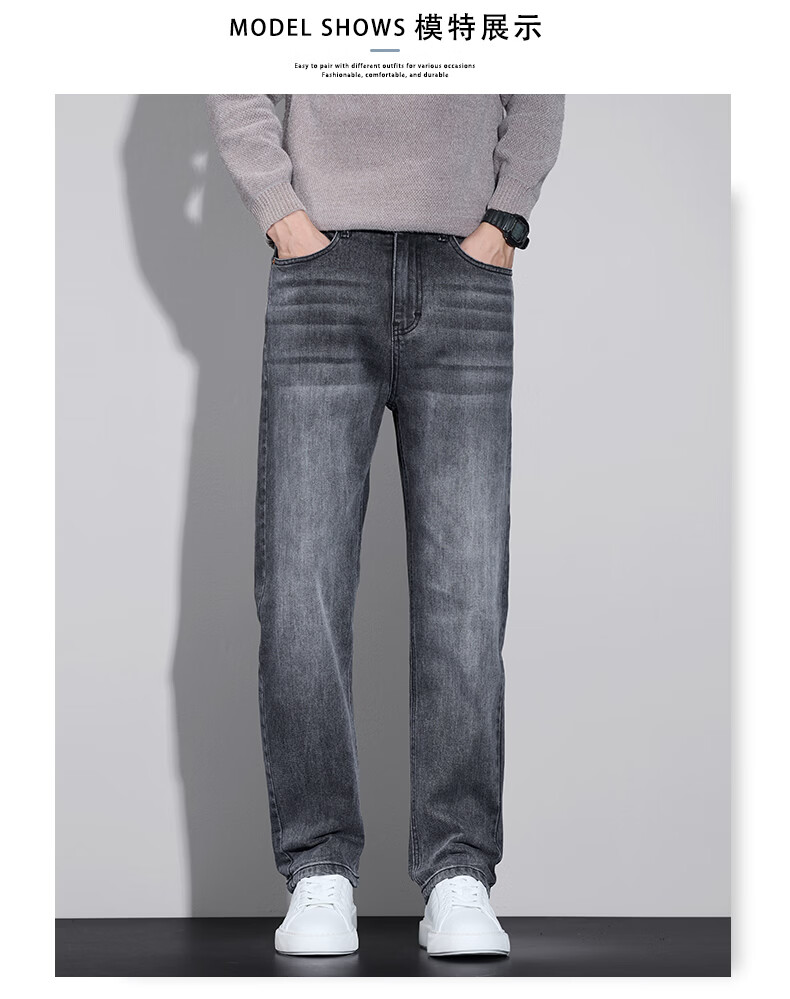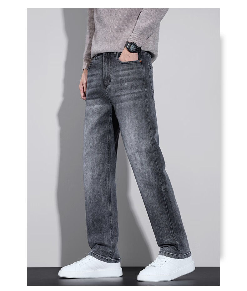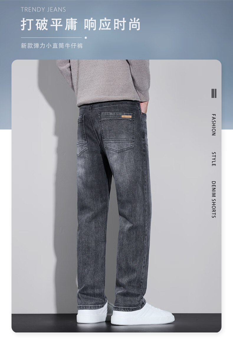 真维斯牛仔裤男春秋季2026新款百搭直筒弹力水洗潮牌休闲男款长裤 烟灰 28