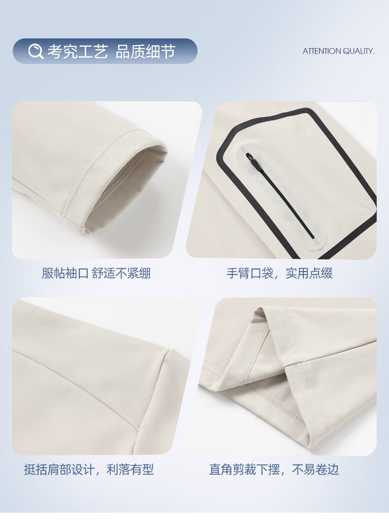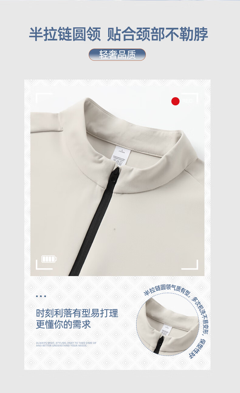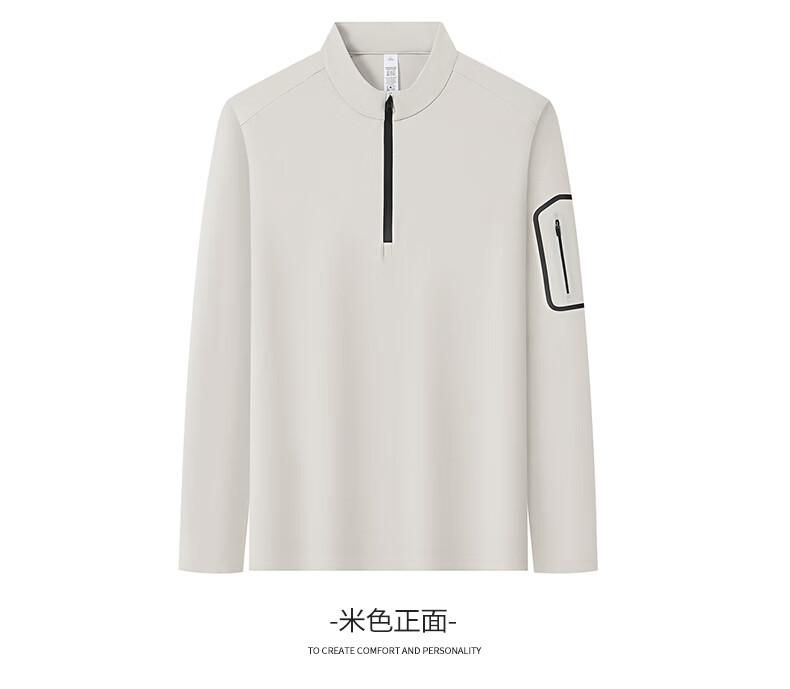 SHANSHAN杉杉【防晒】长袖T恤男拉链立领纯色男士通勤打底衫弹力旅行服男 米色 M /170