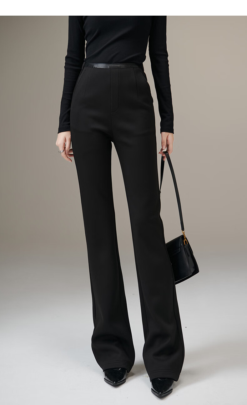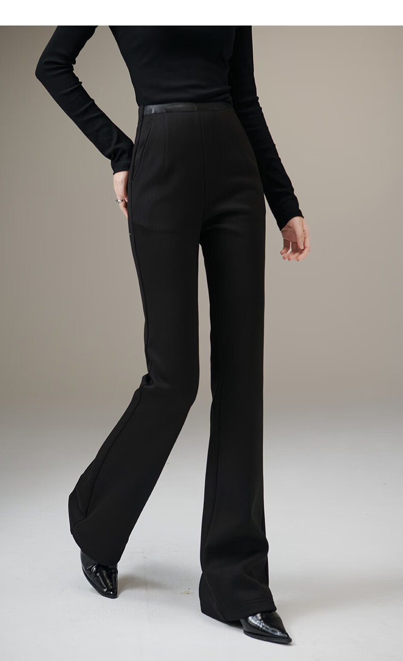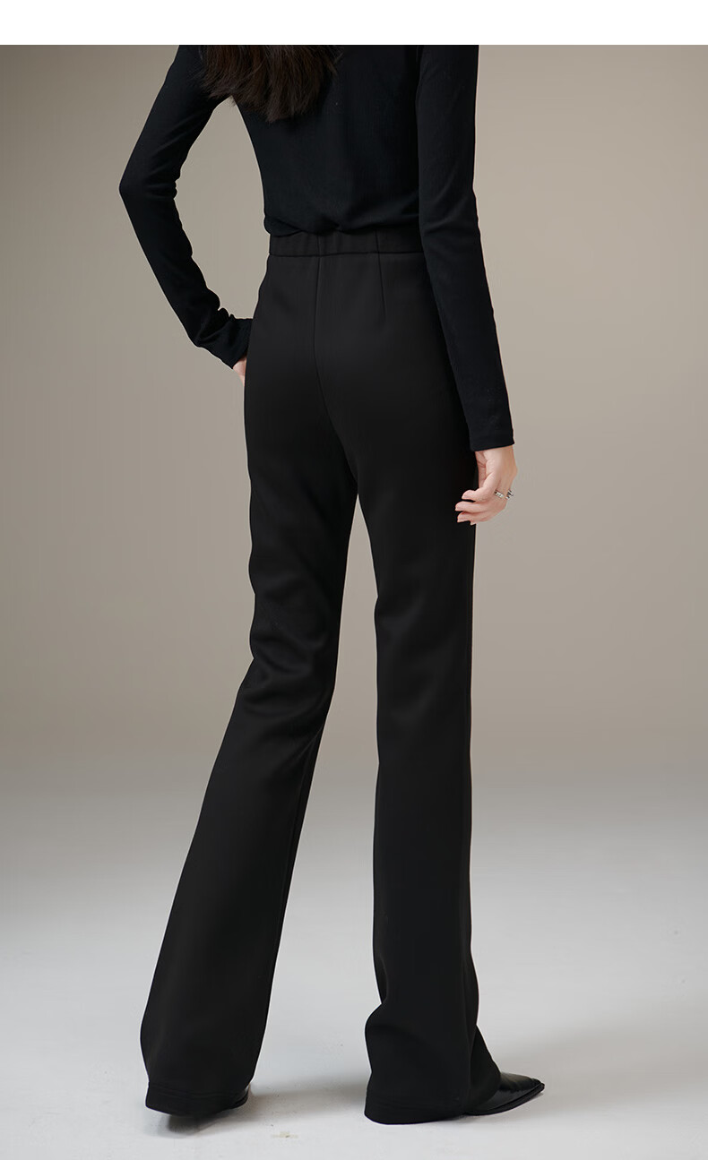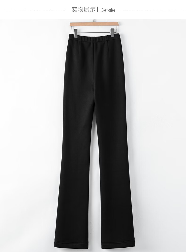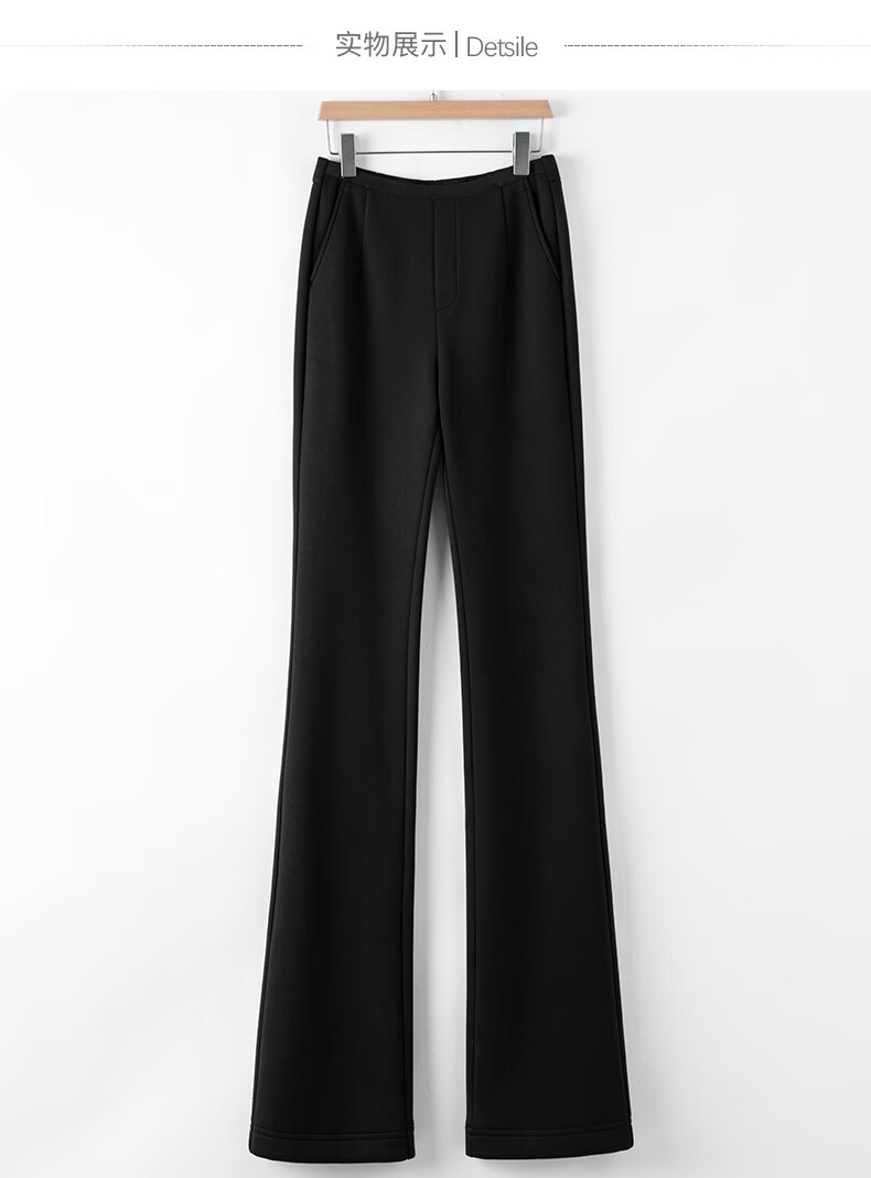 晚白【断码清仓】冬款时尚裤子休闲加绒修身弹力微喇叭裤女 黑色(加长款) 28
