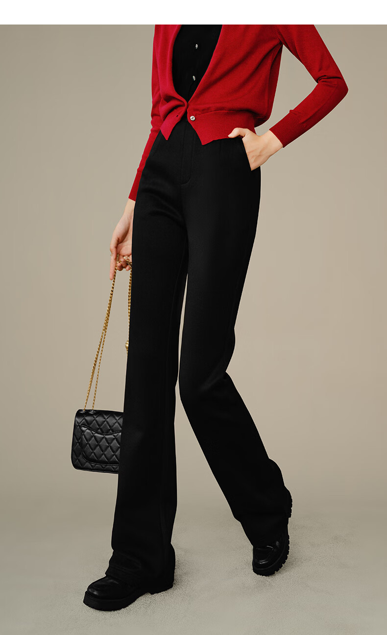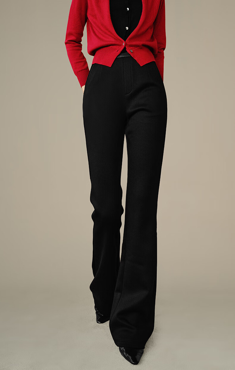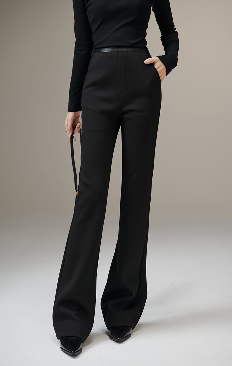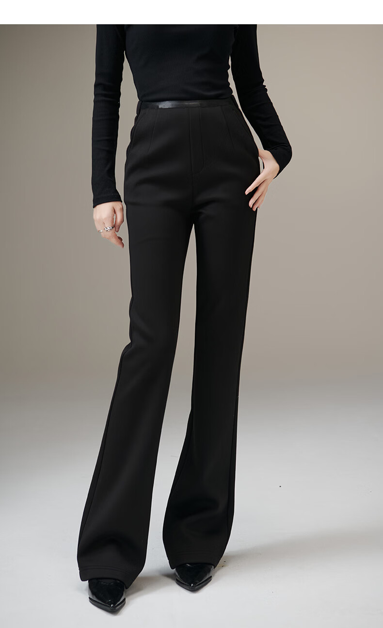 晚白【断码清仓】冬款时尚裤子休闲加绒修身弹力微喇叭裤女 黑色(加长款) 28