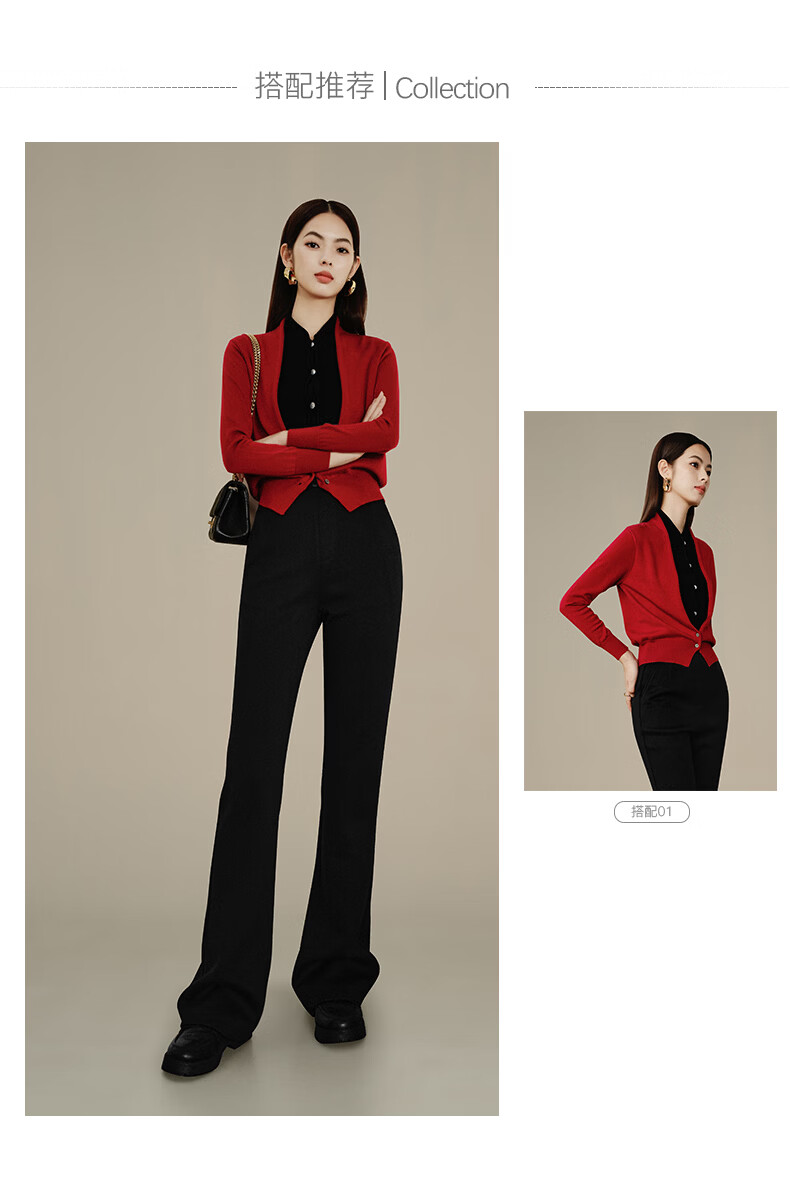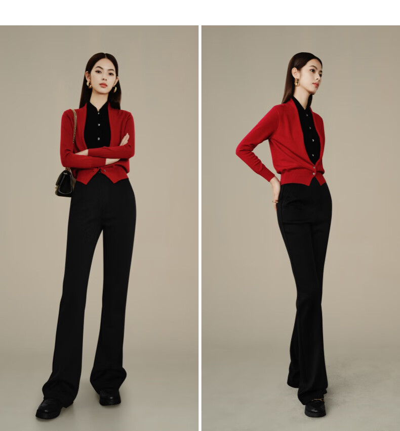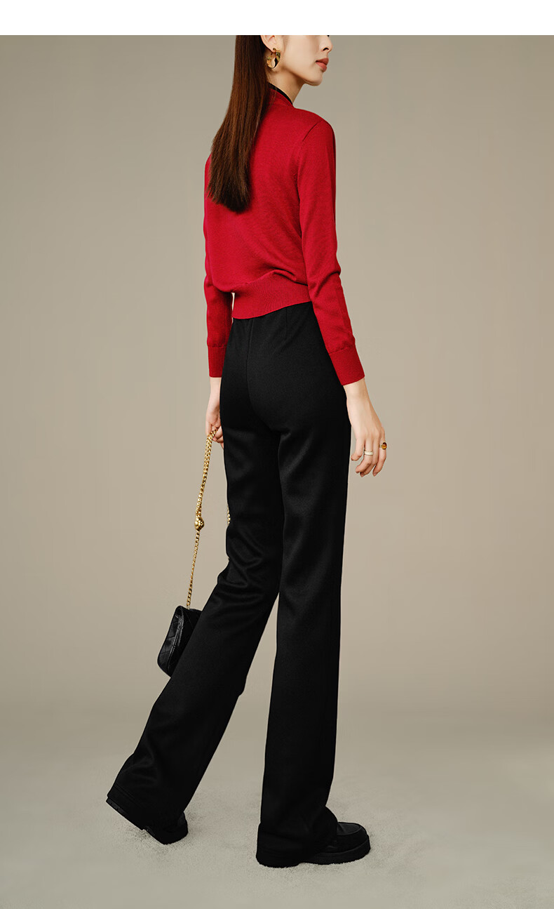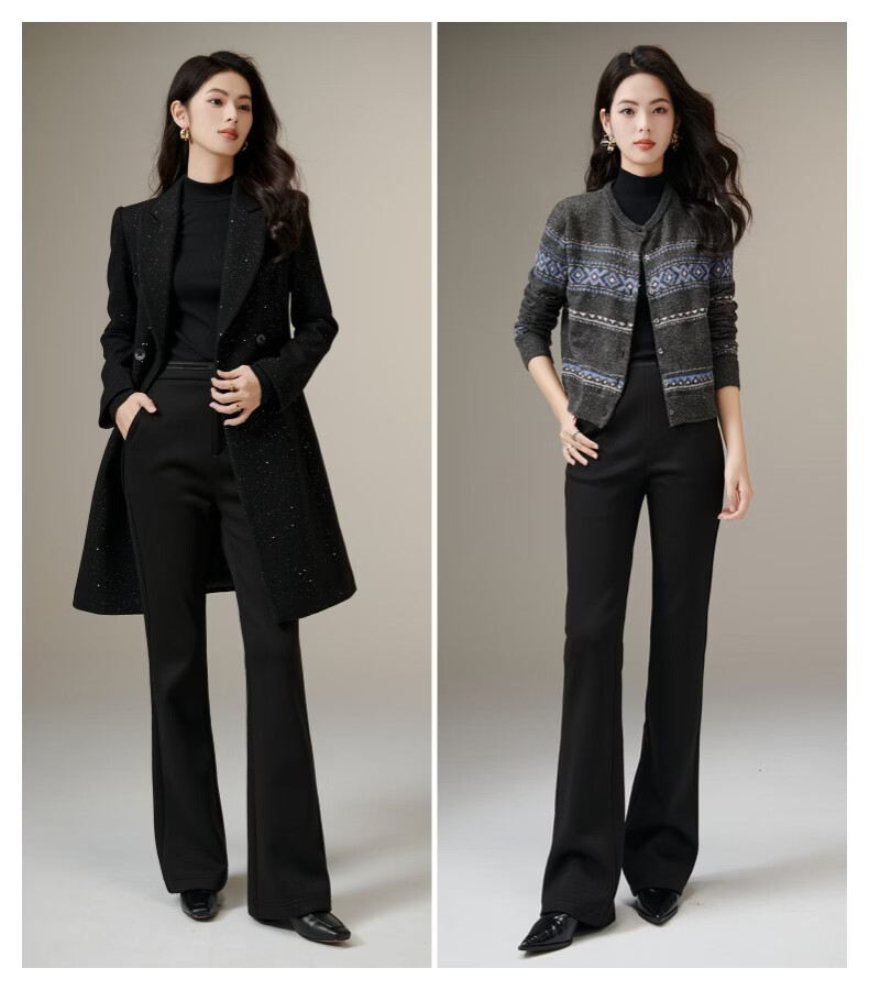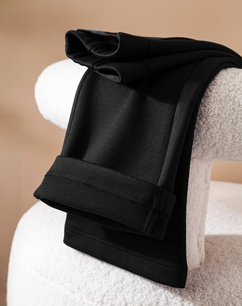 晚白【断码清仓】冬款时尚裤子休闲加绒修身弹力微喇叭裤女 黑色(加长款) 28
