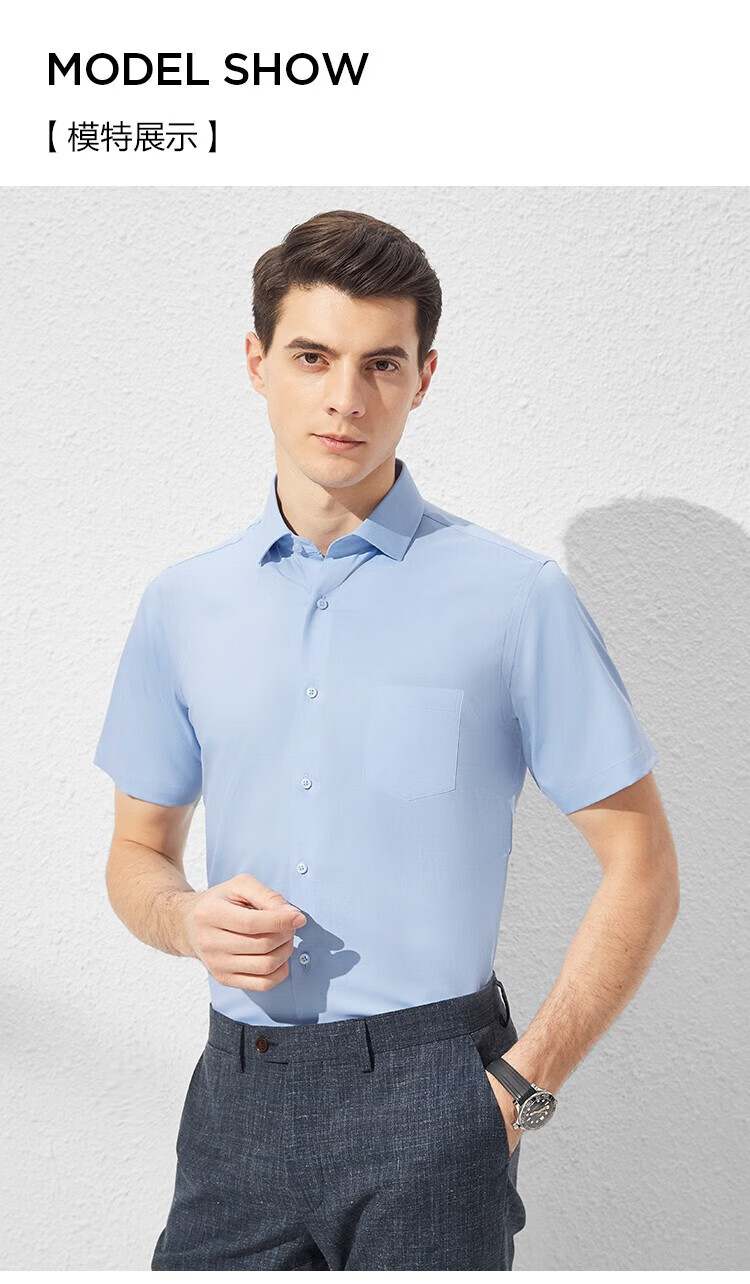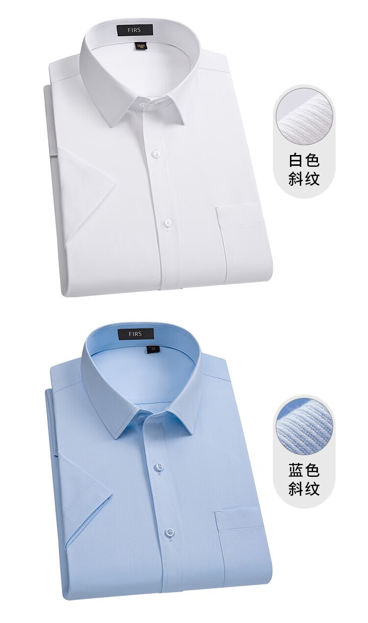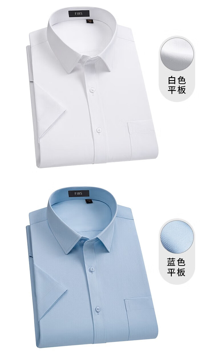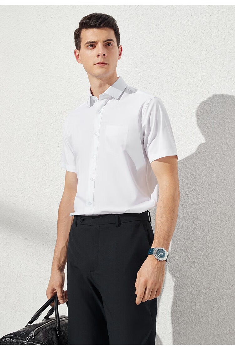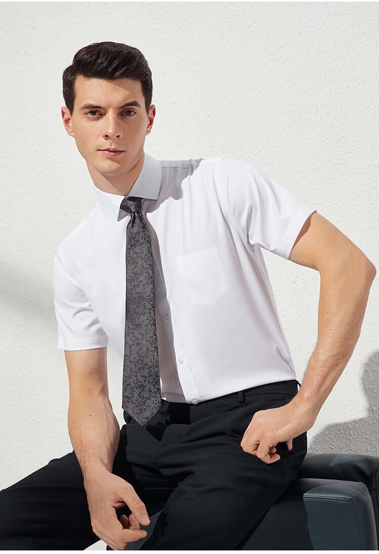 杉杉(FIRS)短袖衬衫男新款轻商务休闲透气半袖上衣翻领纯色上班免烫衬衣男装 白色平板 39 (170) 88A