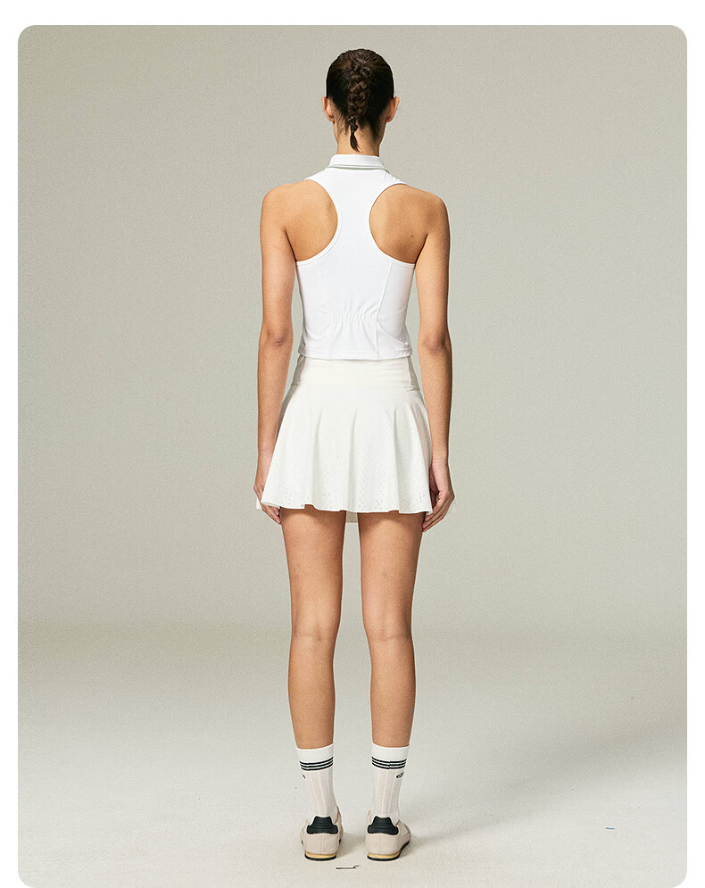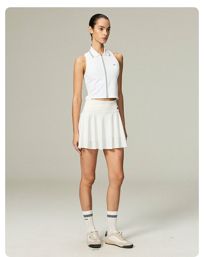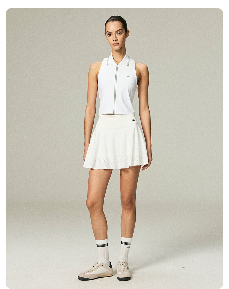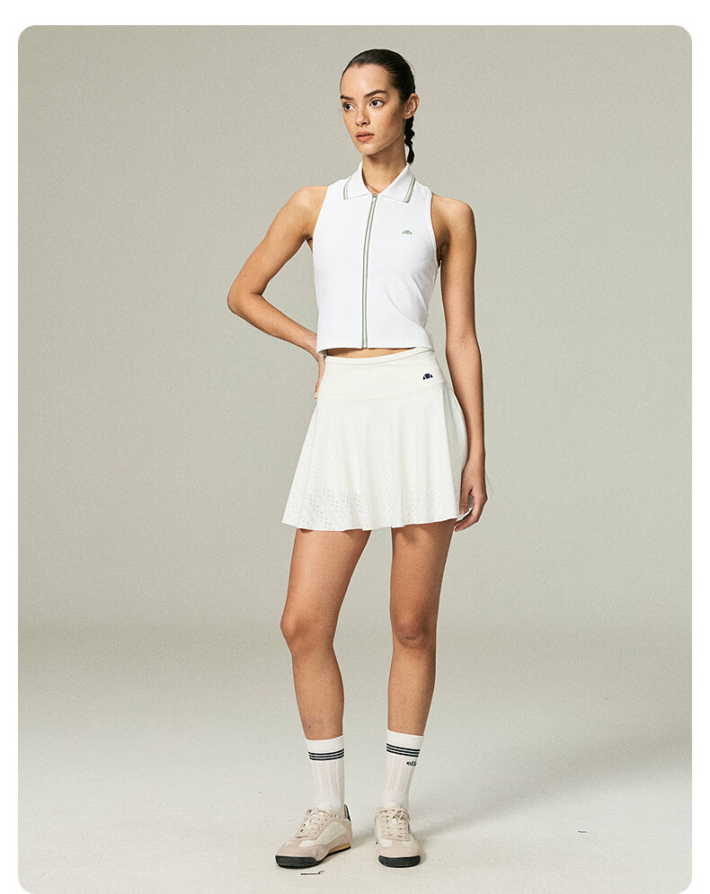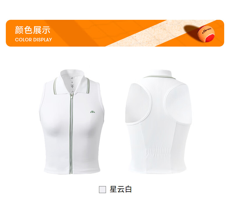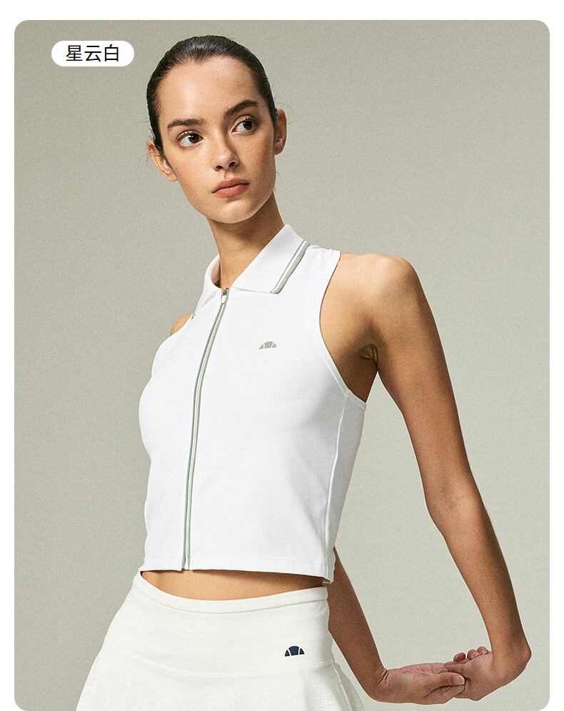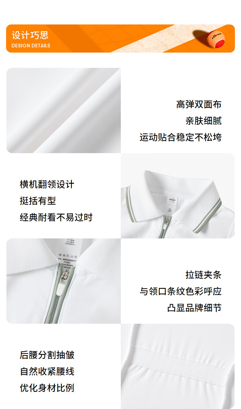 ellesse小贝壳26春夏新品网球服弹力修身运动拉链上衣polo背心女 星云白 S