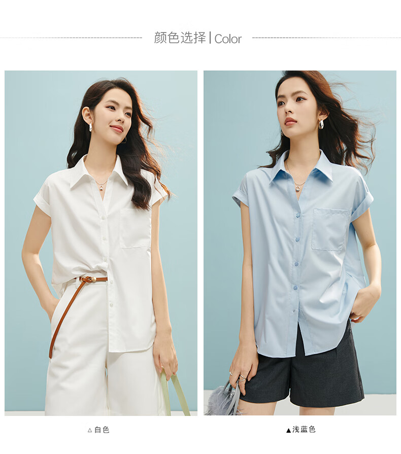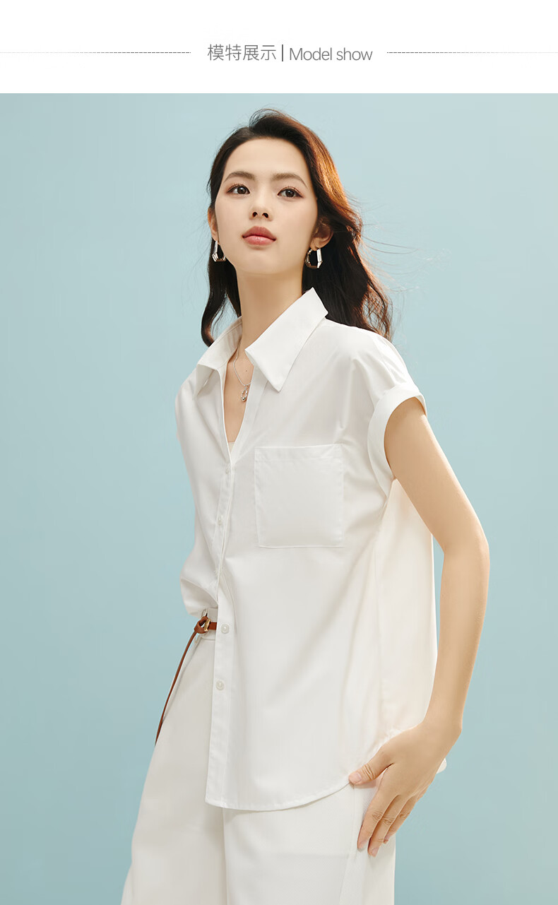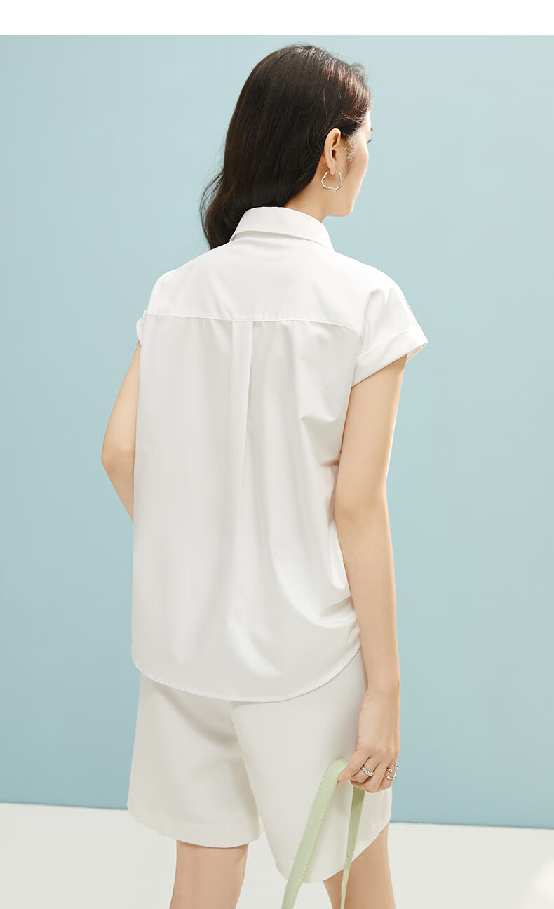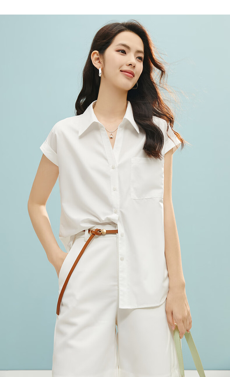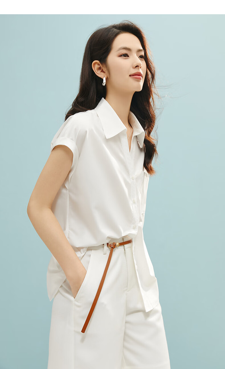 晚白【断码清仓】2026年春款时尚气质上衣短袖休闲纯色翻领衬衫女 白色 S