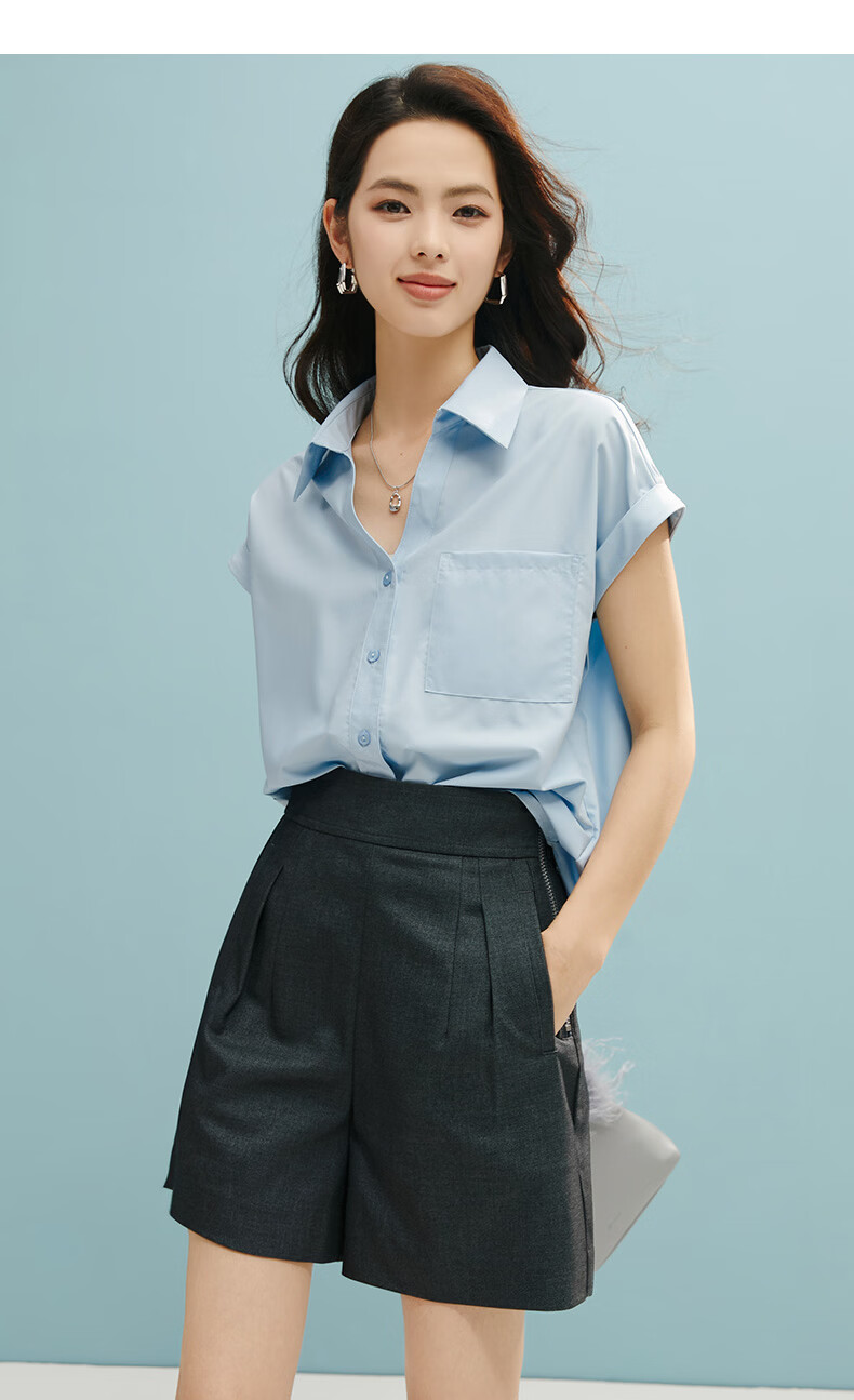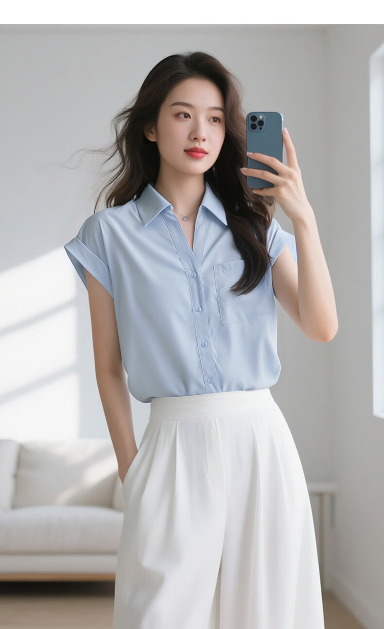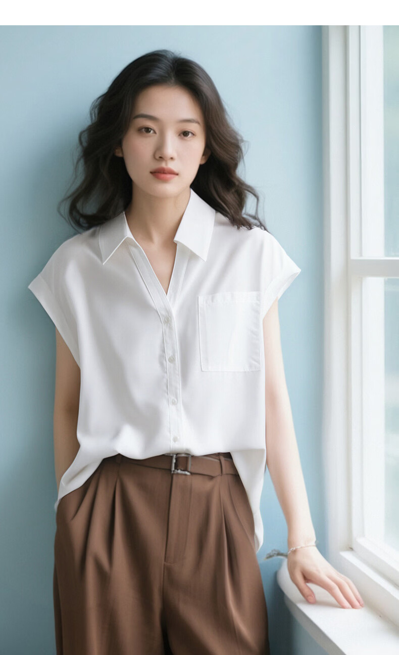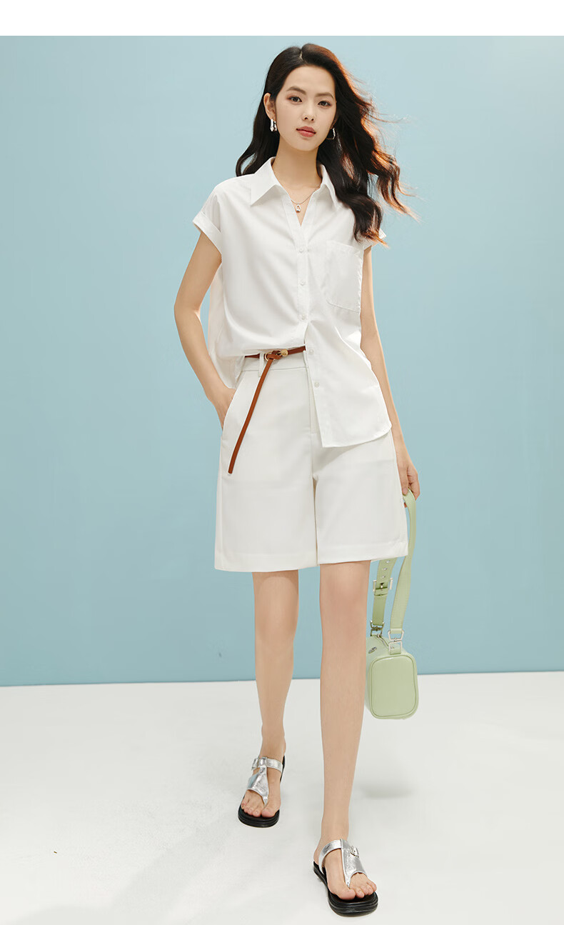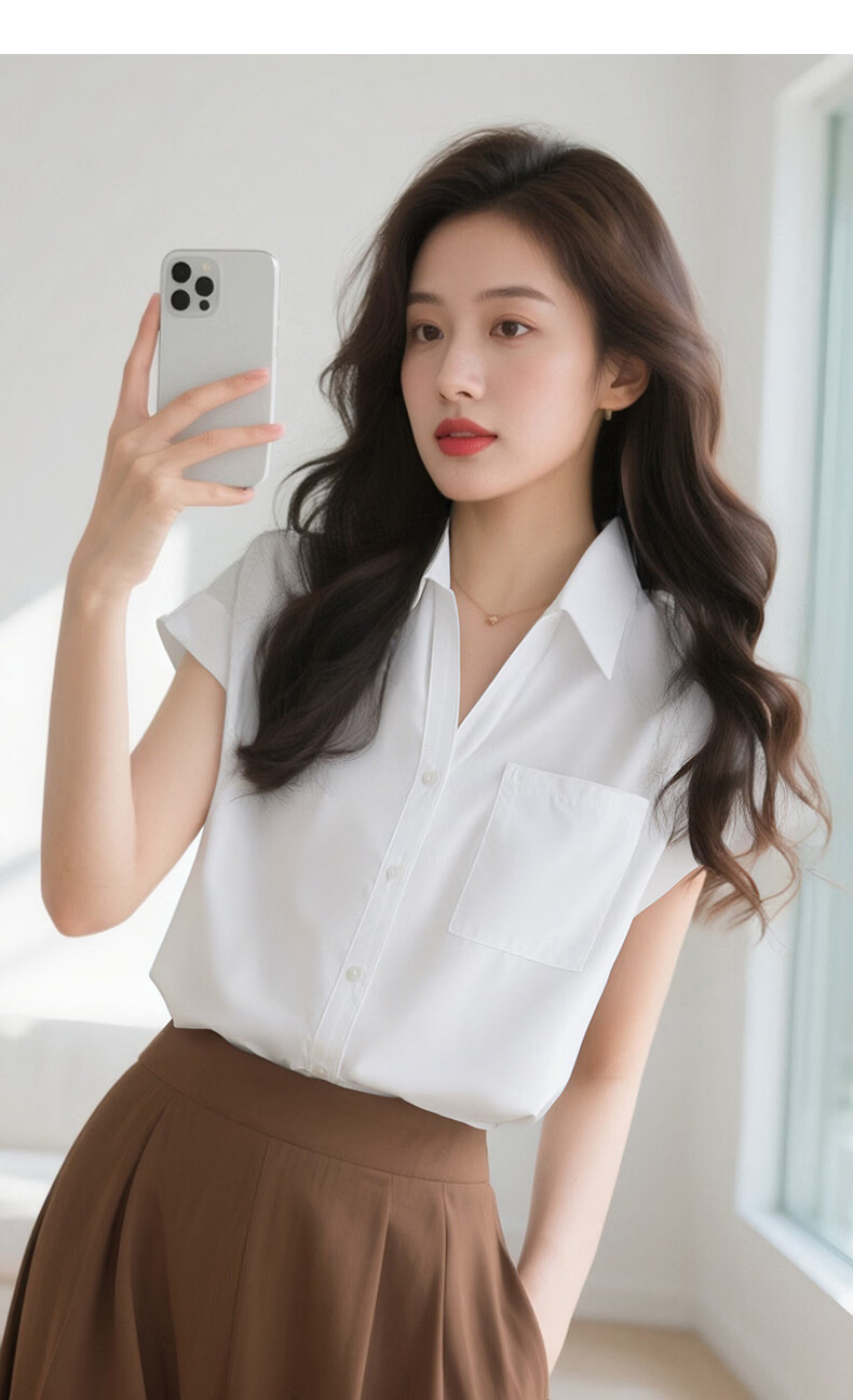 晚白【断码清仓】2026年春款时尚气质上衣短袖休闲纯色翻领衬衫女 白色 S