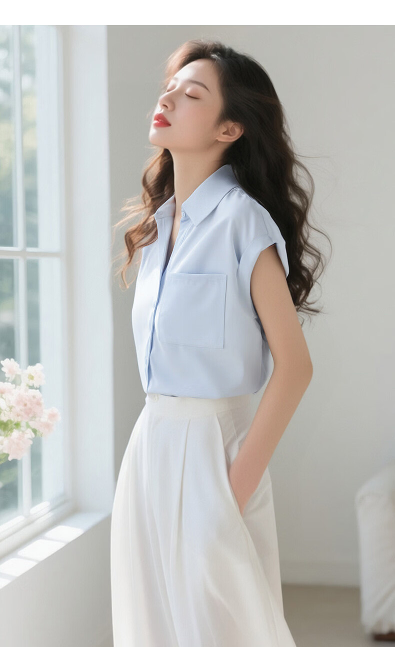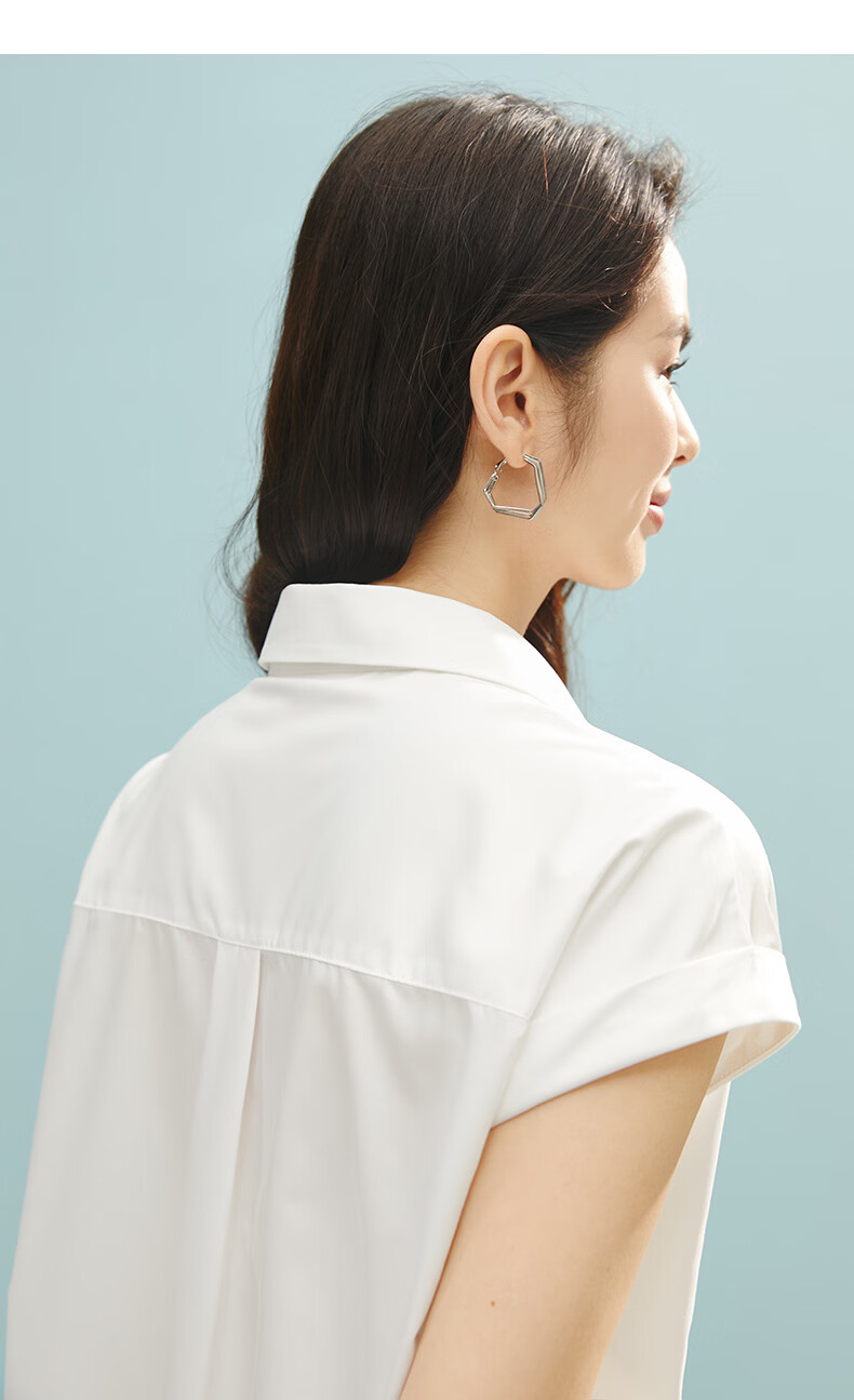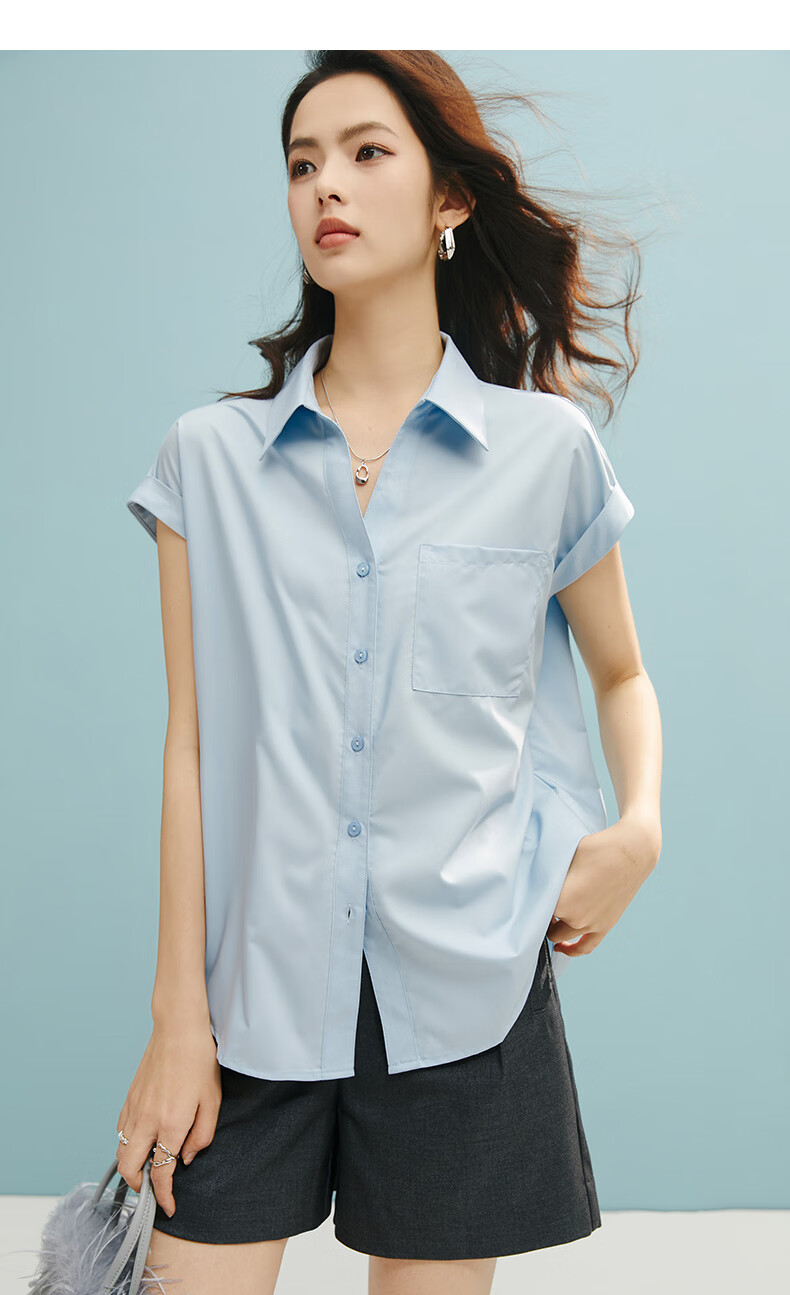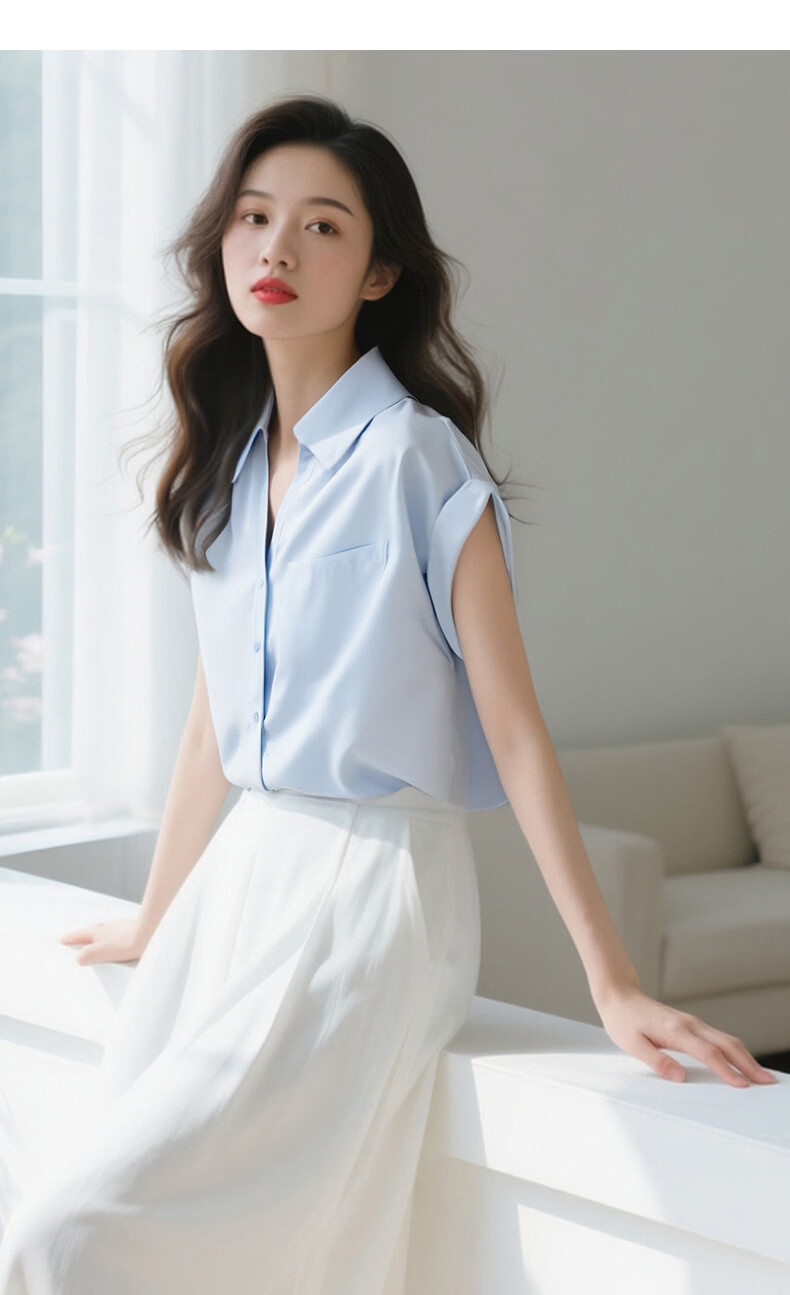 晚白【断码清仓】2026年春款时尚气质上衣短袖休闲纯色翻领衬衫女 白色 S