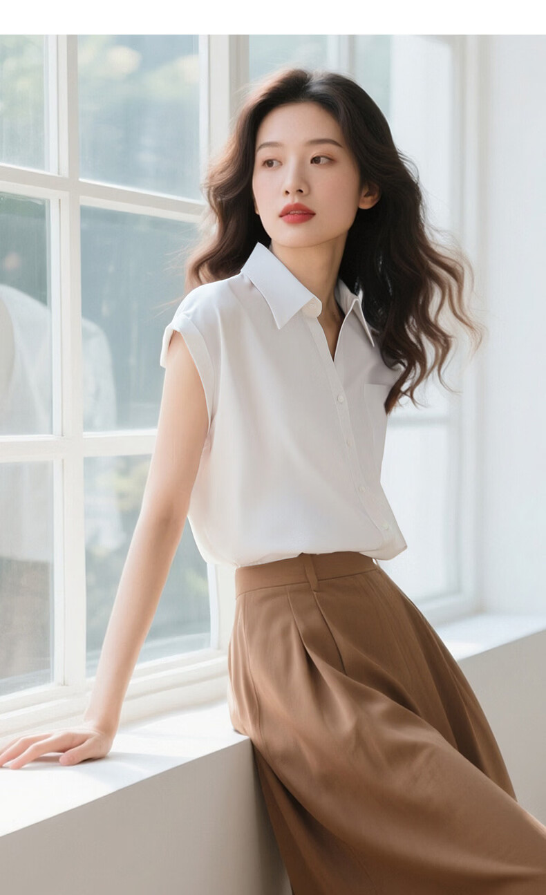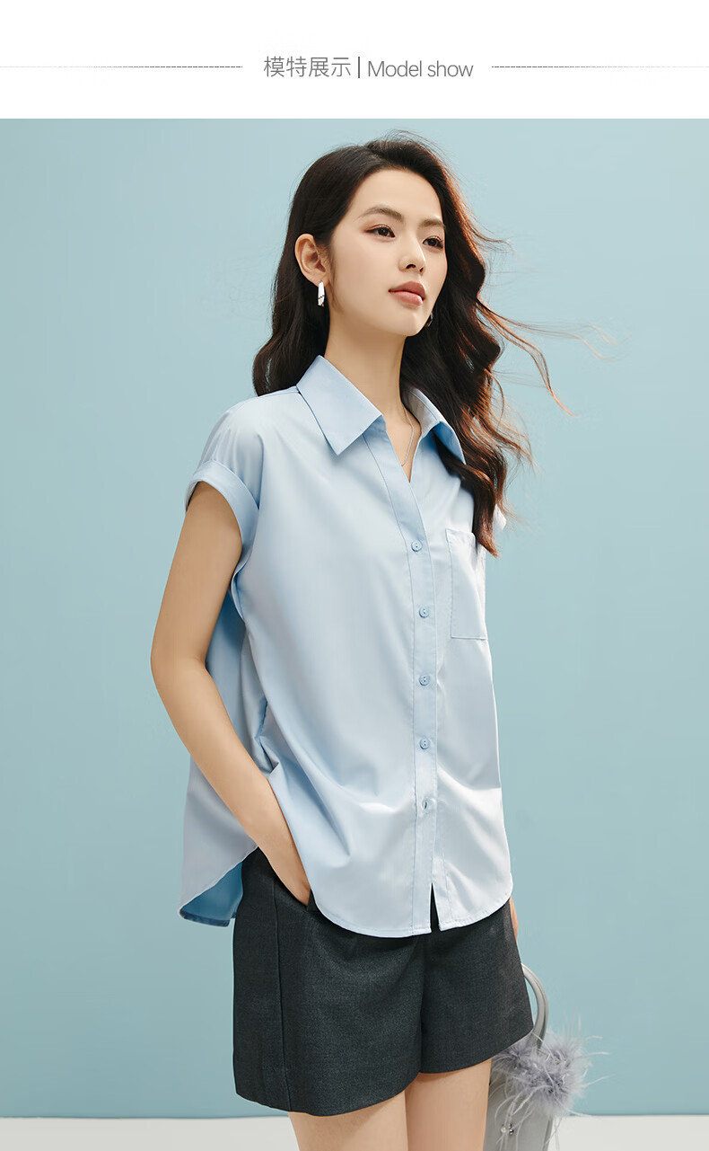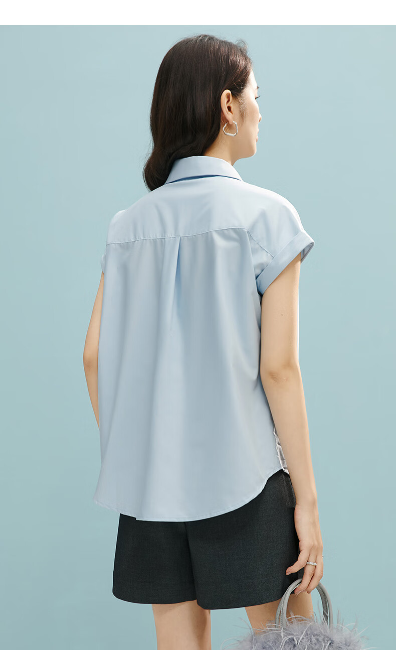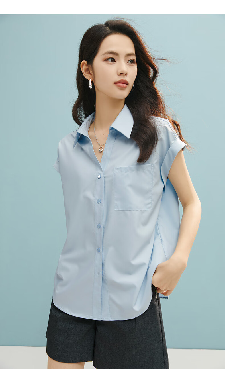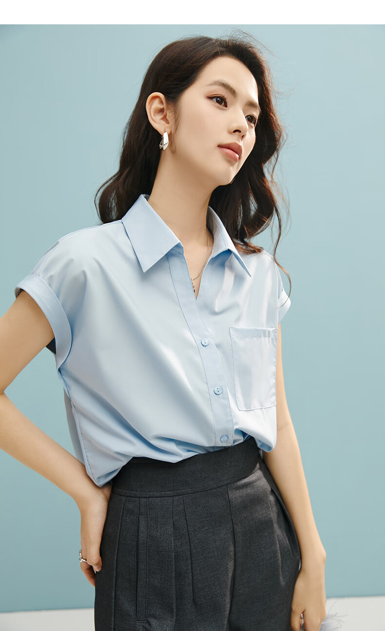 晚白【断码清仓】2026年春款时尚气质上衣短袖休闲纯色翻领衬衫女 白色 S