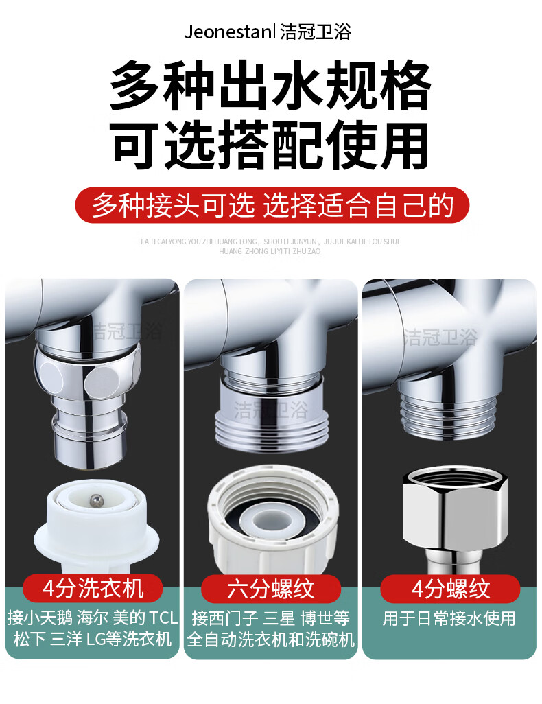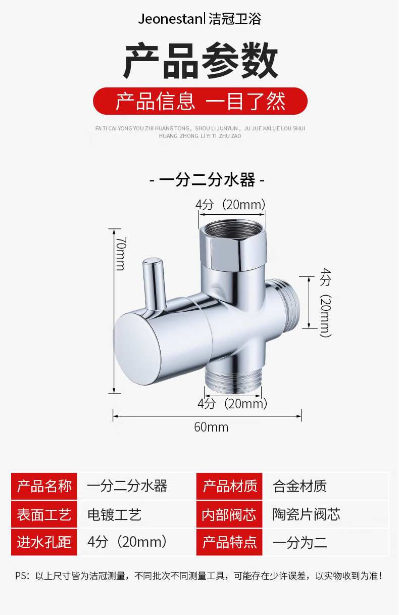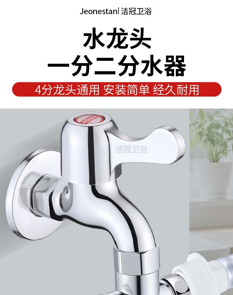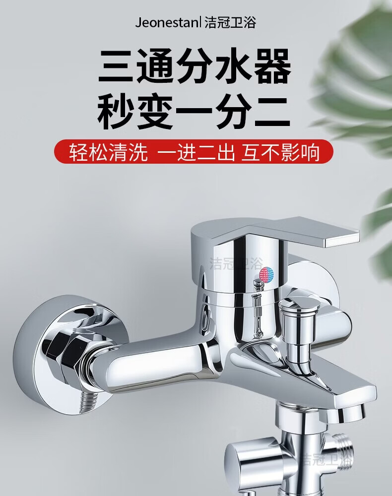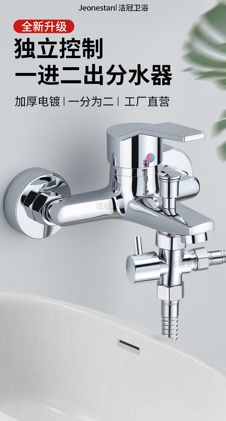 Jeonestan【德国】花洒分水器一进二出热水器水龙头分水阀4分接转换接头 【电镀款】4分螺纹+4分螺纹