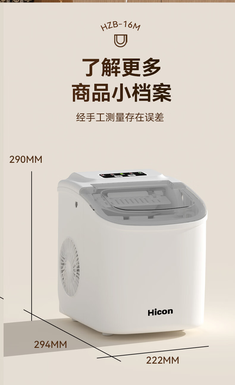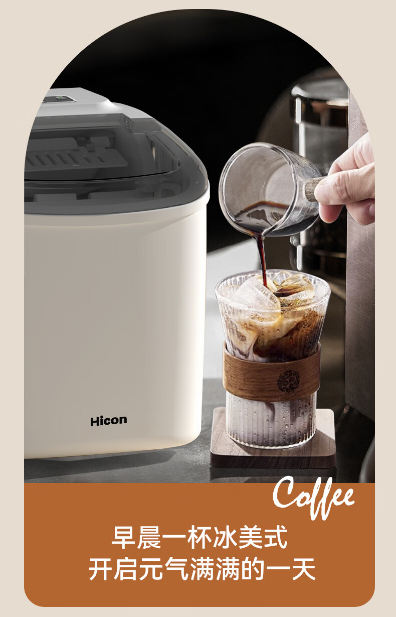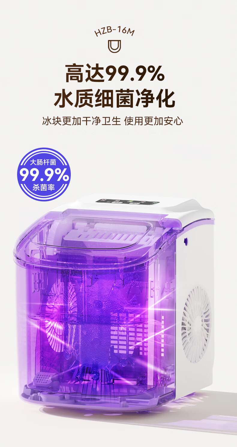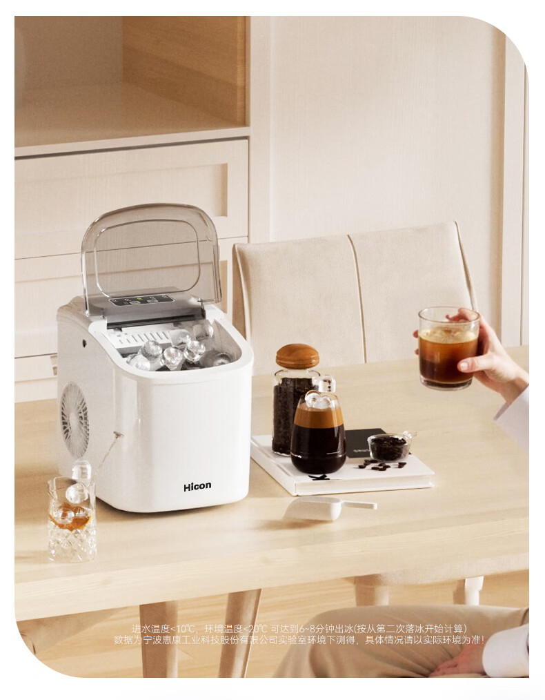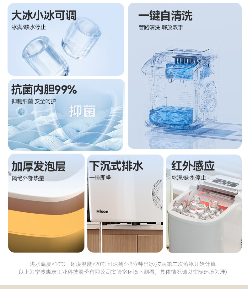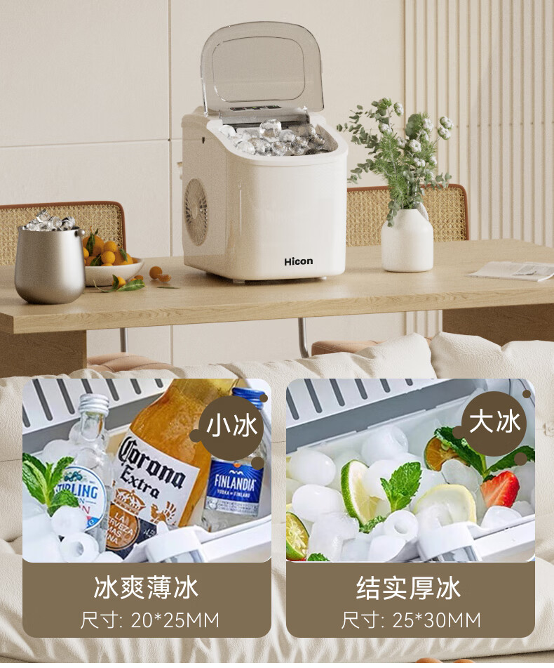 惠康【新品双层抗菌】Hicon惠康制冰机家用小型迷你宿舍全自动15KG小功率uv抗菌冰块机