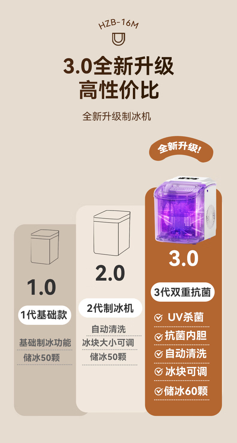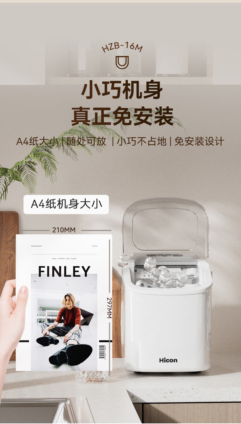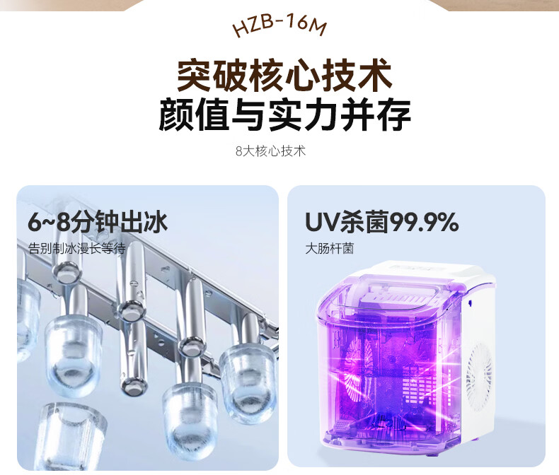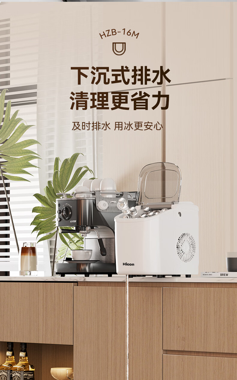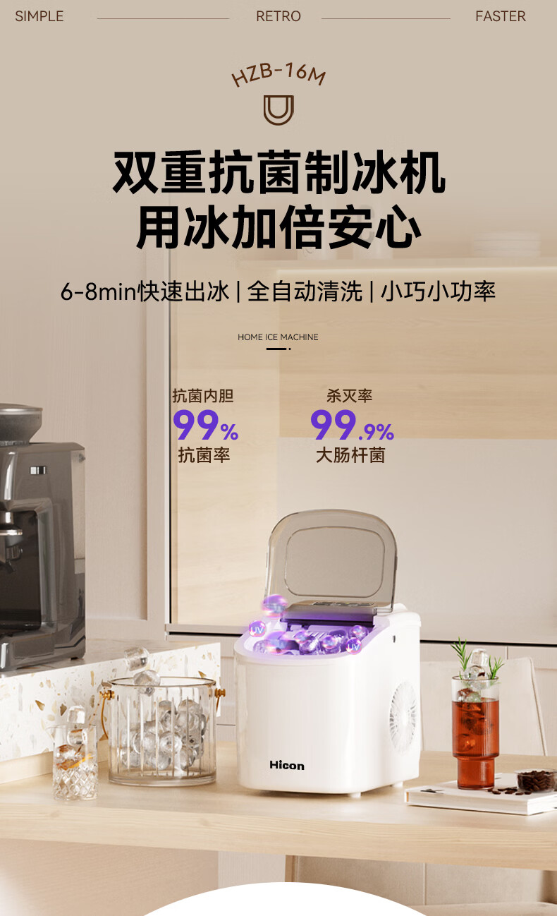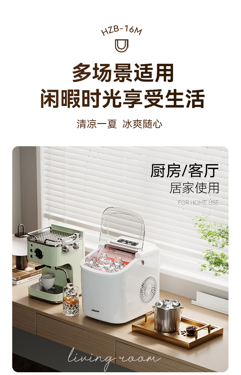惠康【新品双层抗菌】Hicon惠康制冰机家用小型迷你宿舍全自动15KG小功率uv抗菌冰块机