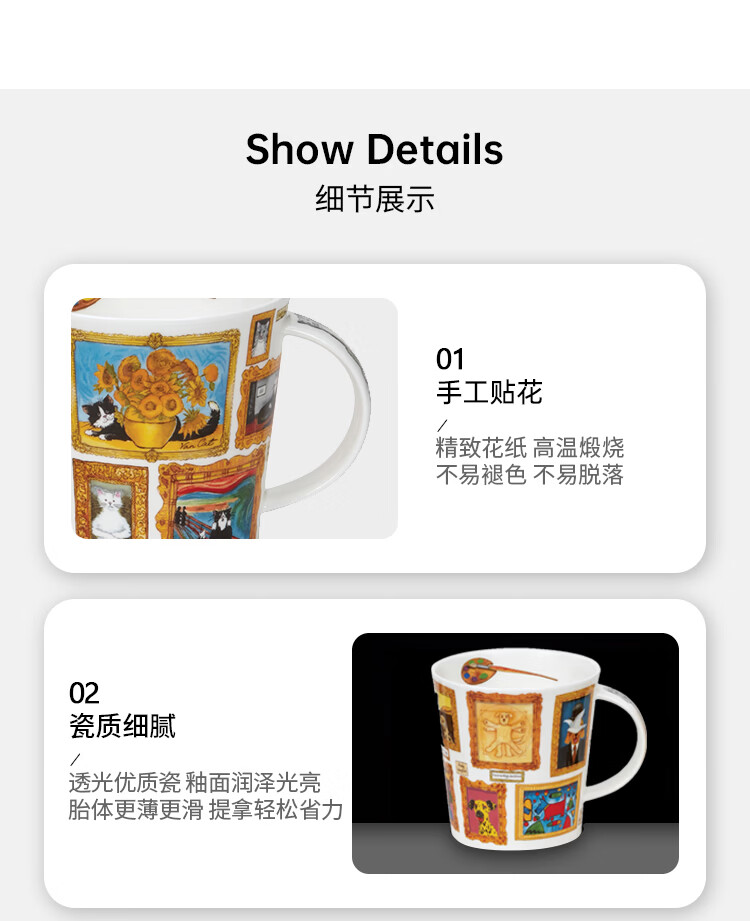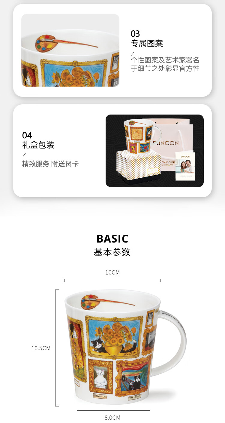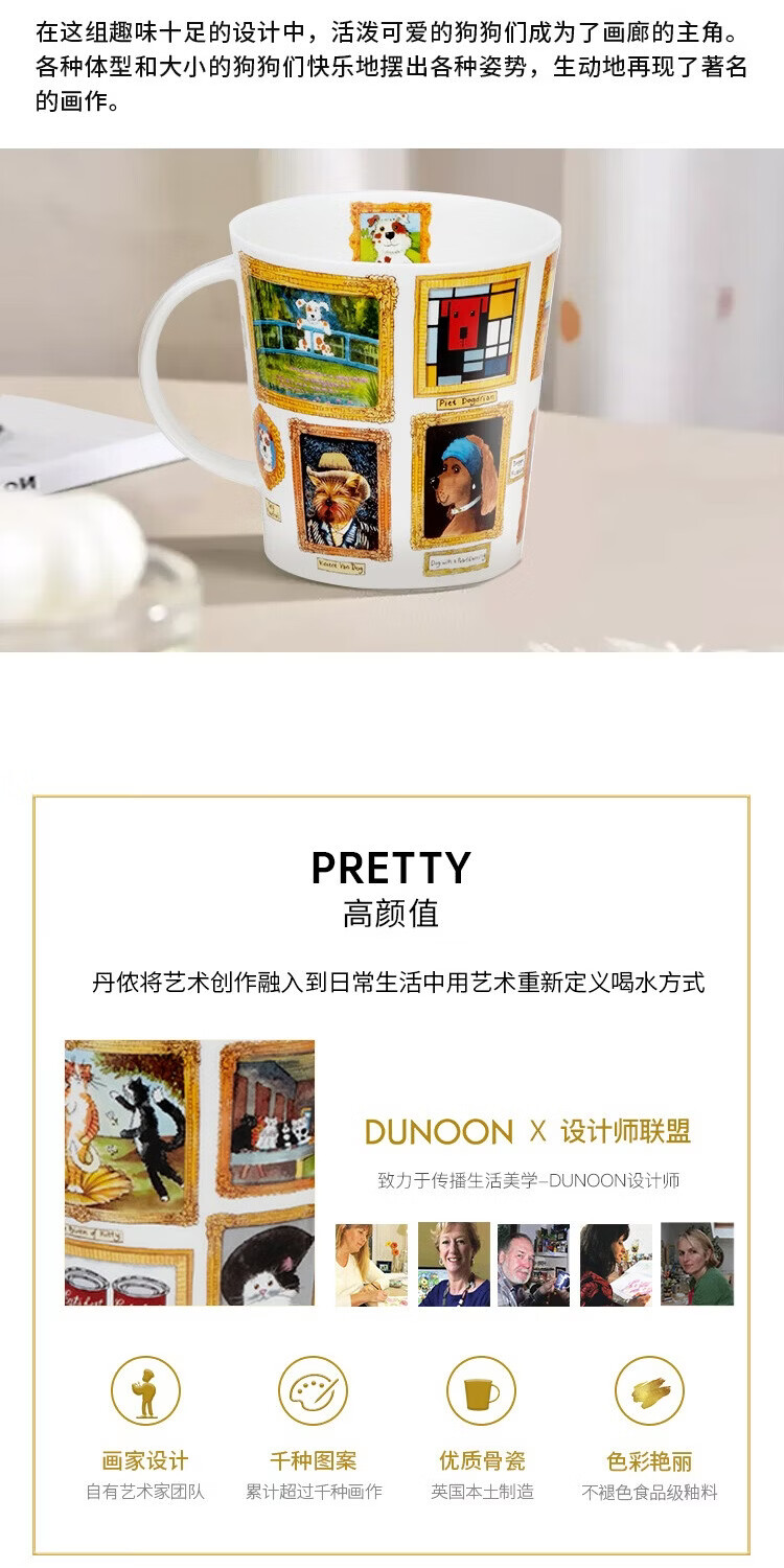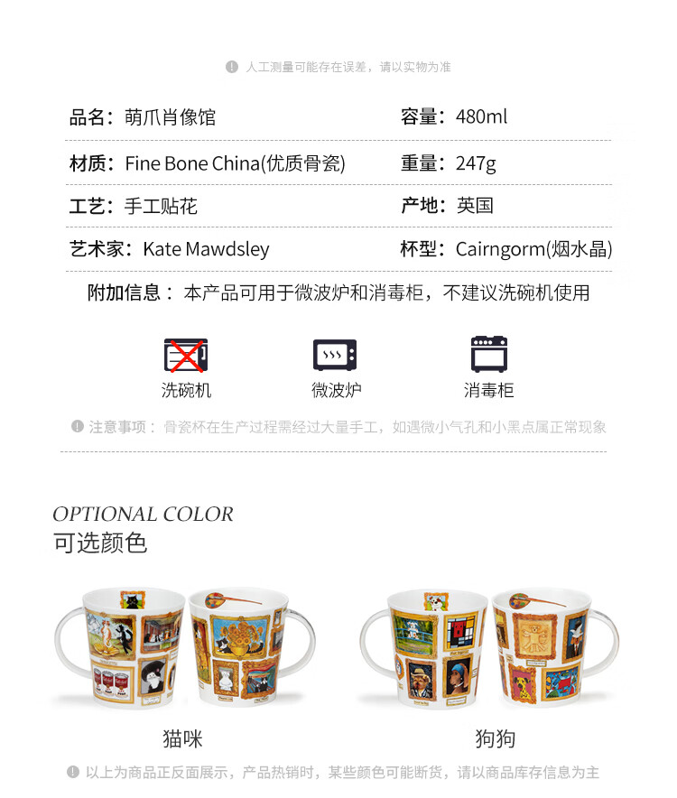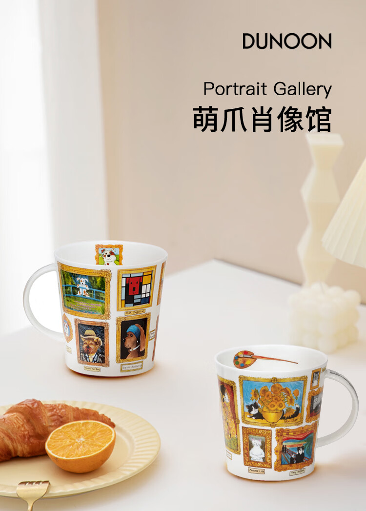 丹侬(DUNOON)英国骨瓷马克杯大容量咖啡杯陶瓷水杯情侣杯猫狗肖像馆可爱杯子 萌爪肖像馆-猫咪(480ml)