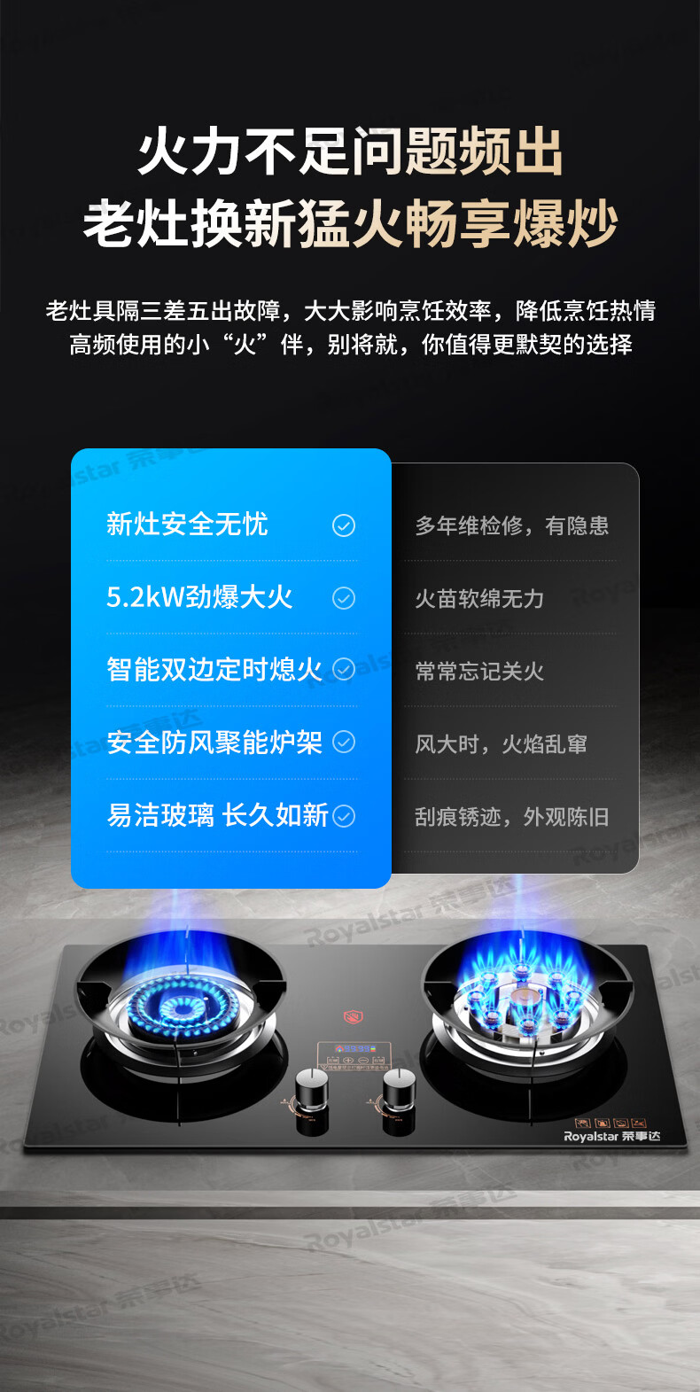 万家乐燃气灶【双高火AY8G·全红婵推荐】5.2kW大火力不锈钢猛火灶台燃气灶具家用台嵌两用双灶天然气灶