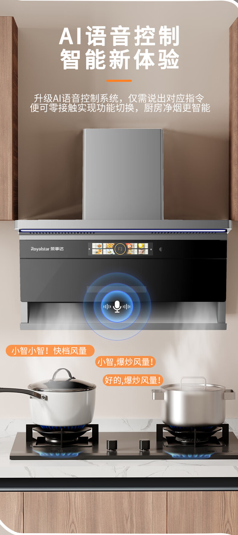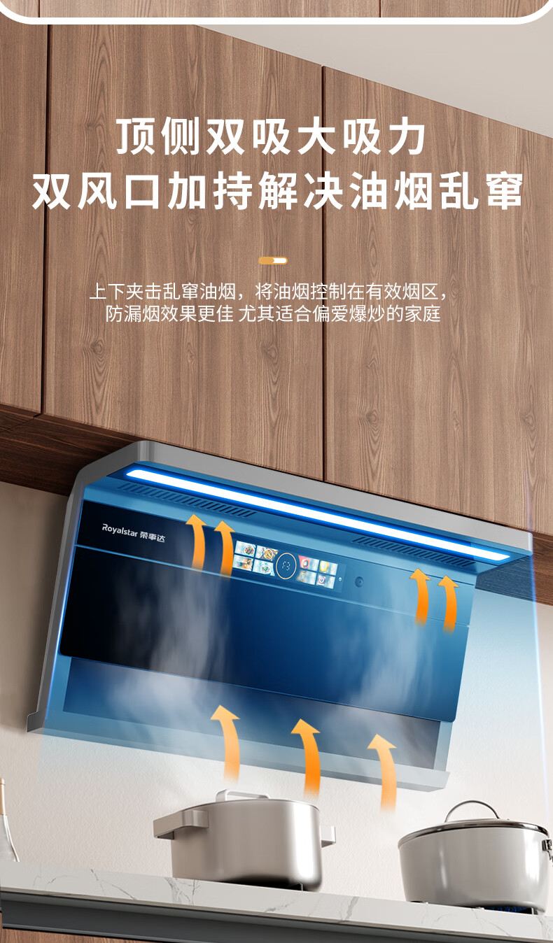 荣事达油烟机29m³【免费安装+拆旧】顶侧双吸抽油烟机家用厨房大吸力一级能效吸油烟机脱排抽烟机二件套 【纤薄变频29m³】AI语音声控+漏气感应+自清洗