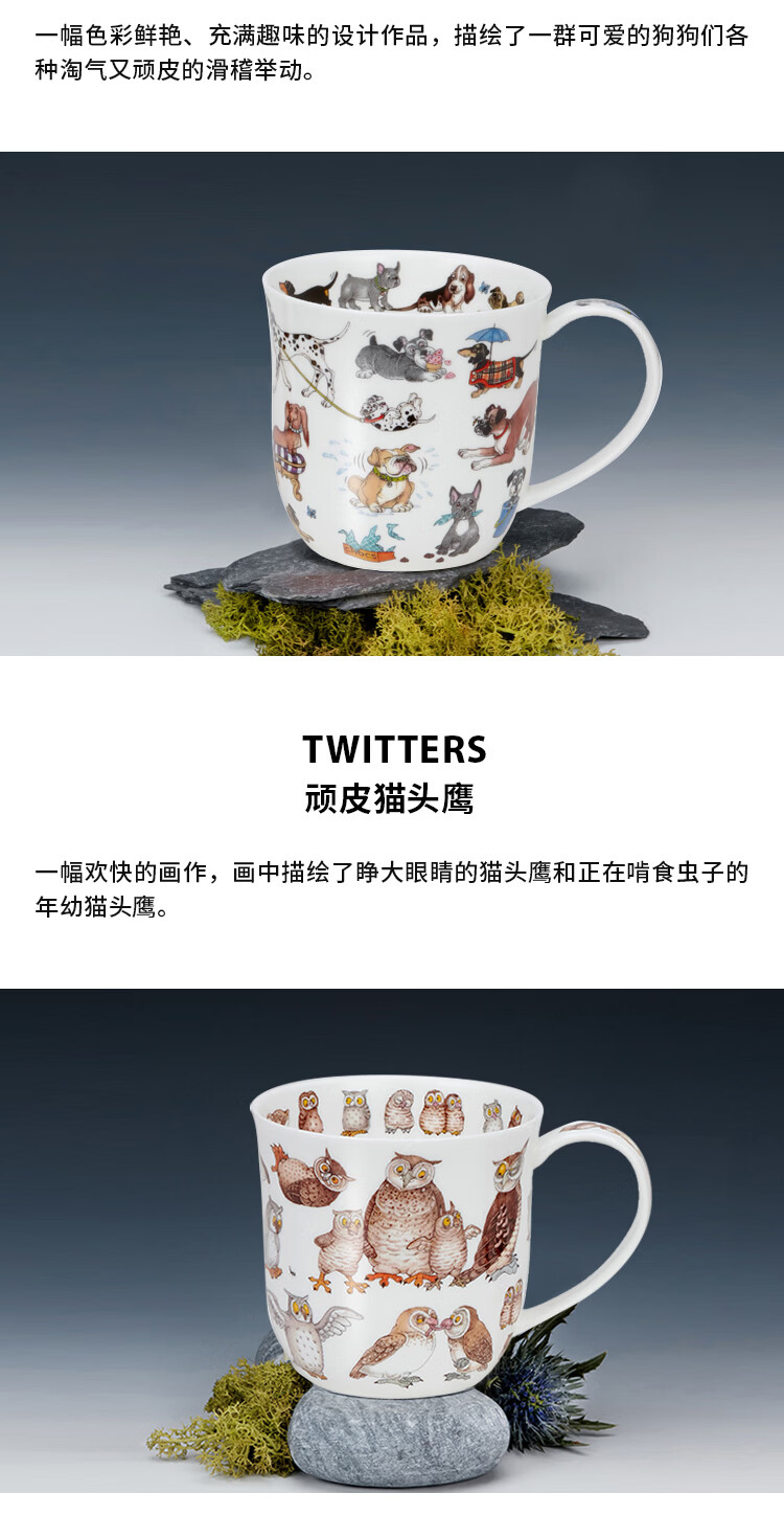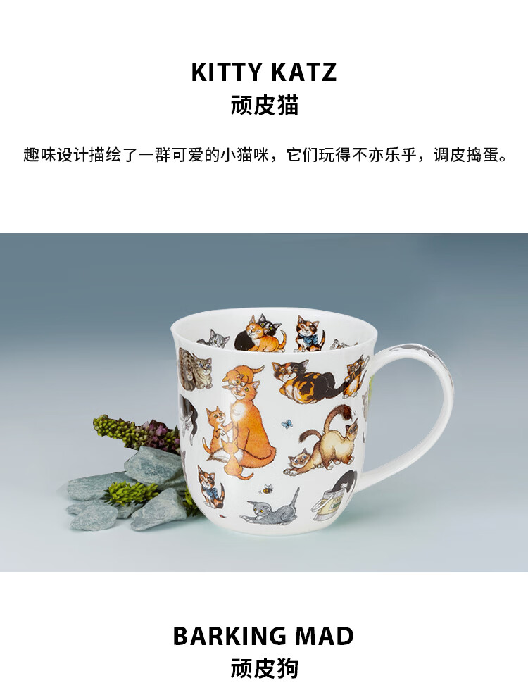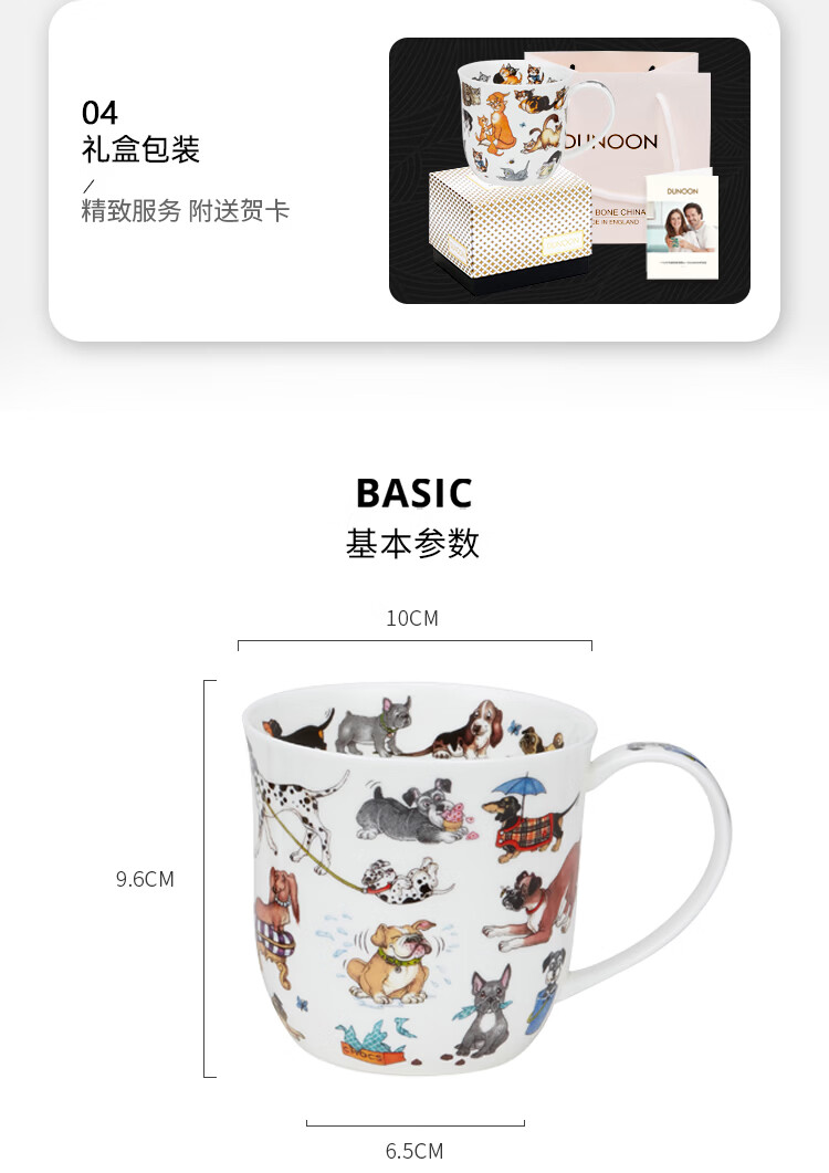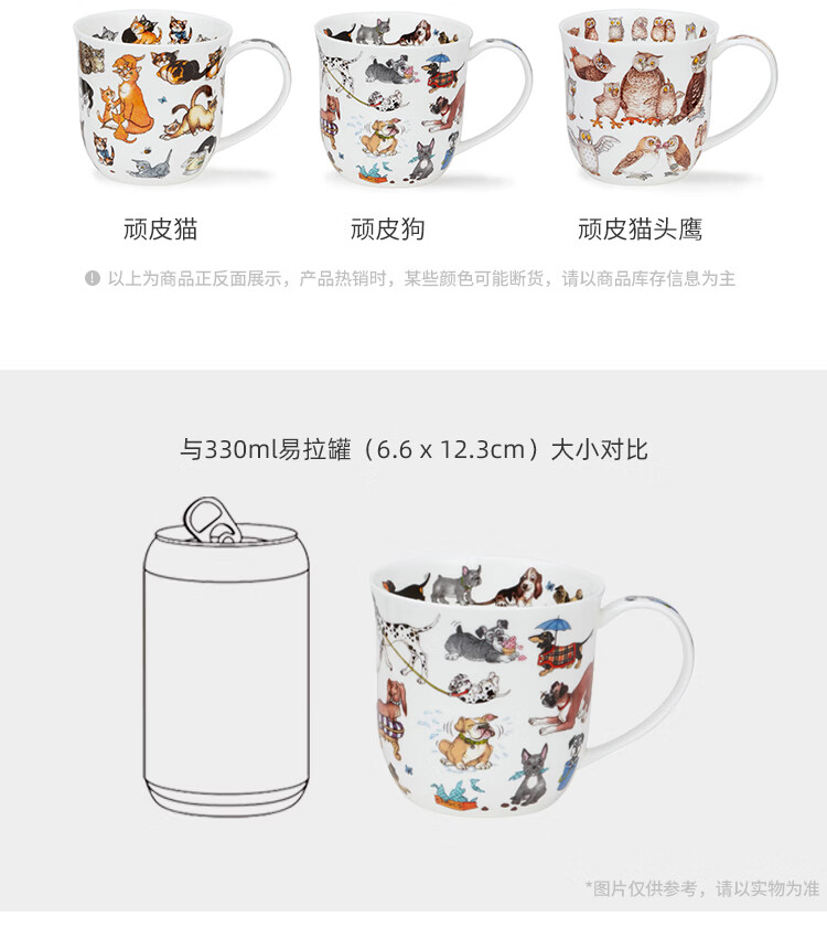 丹侬(DUNOON)骨瓷马克杯大容量咖啡杯顽皮猫狗系列情侣杯陶瓷水杯创意猫咪杯子 顽皮狗 450ml
