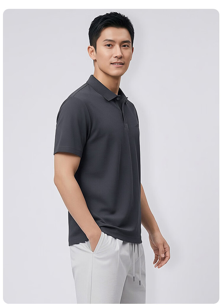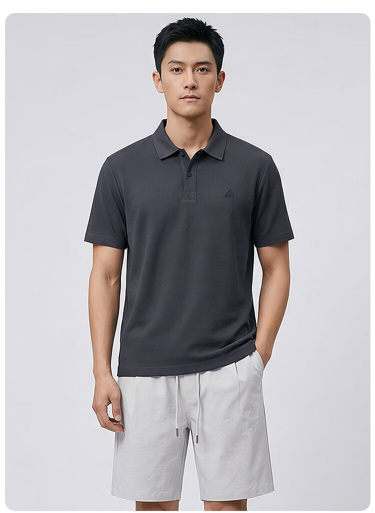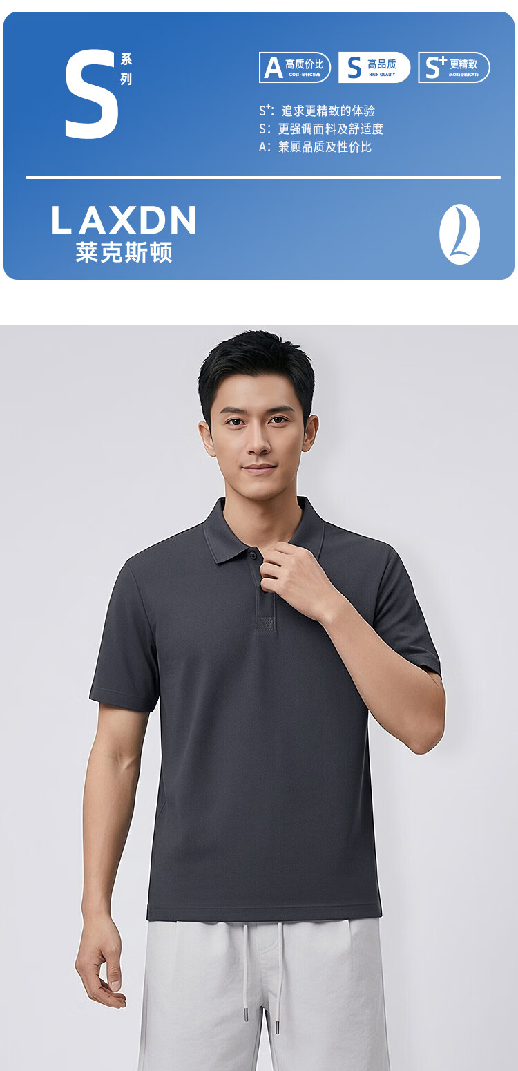 莱克斯顿(laxdn)polo衫男夏季翻领轻奢亲肤透气硅胶工艺商务休闲短袖t恤男 深灰 S