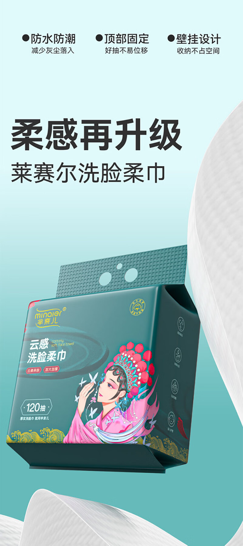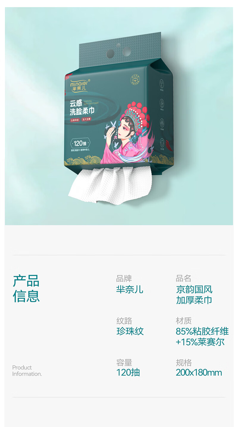 芈奈儿一次性加厚悬挂式棉柔巾洗脸巾干湿两用洗面巾擦脸巾加大 国潮洗脸巾120抽*1提