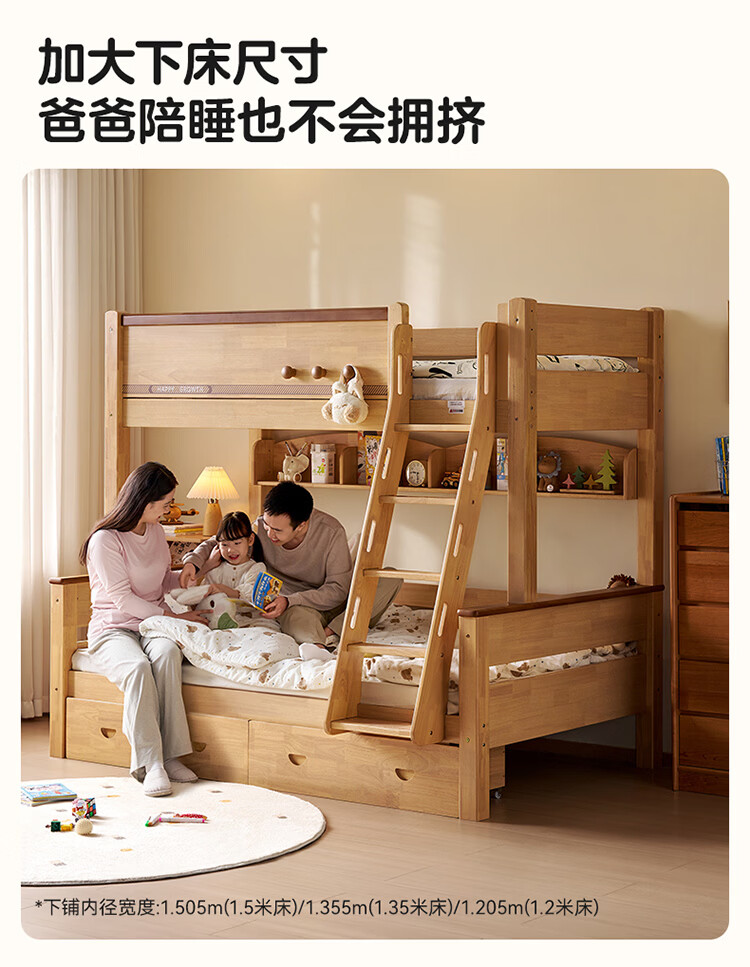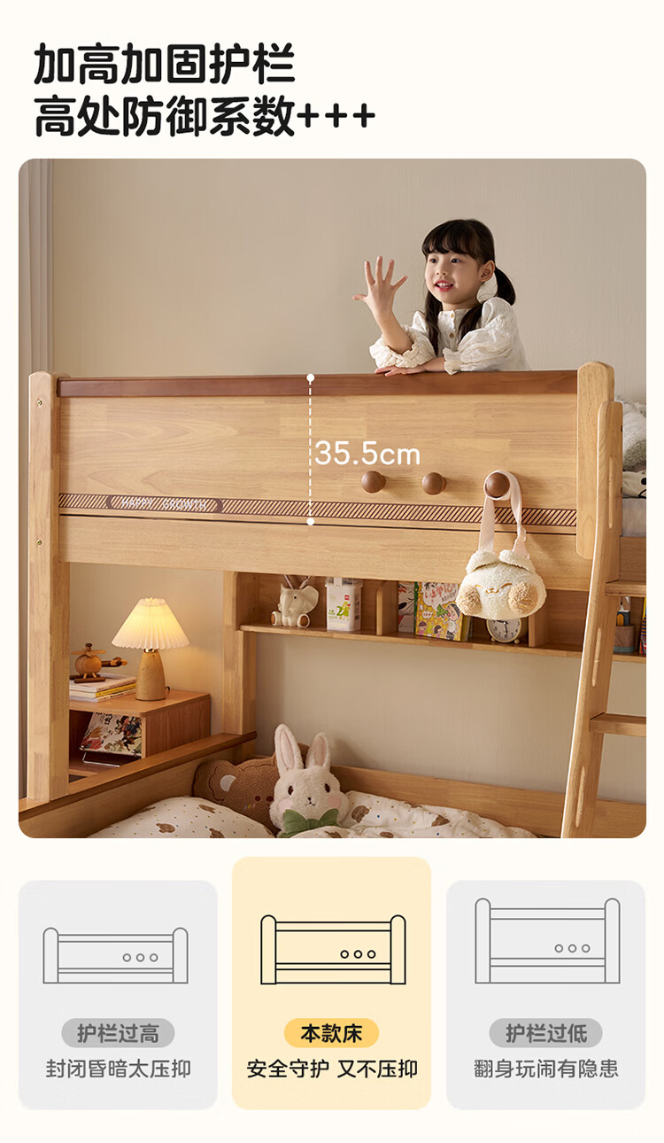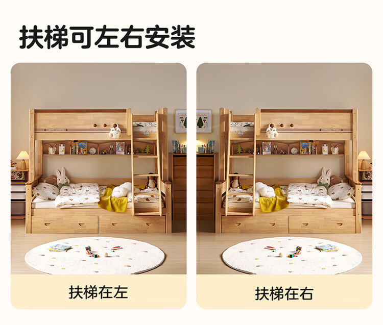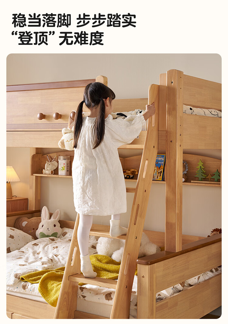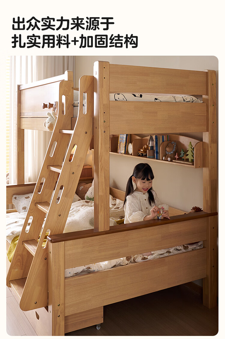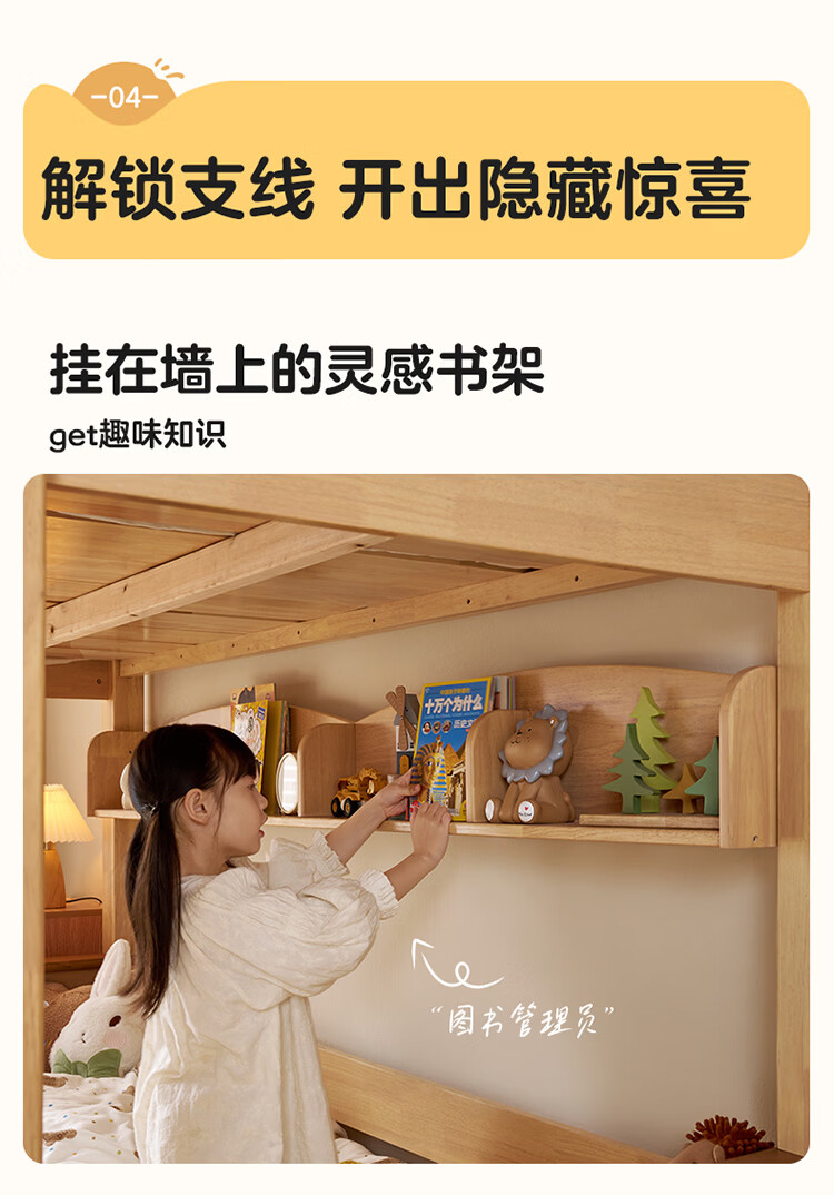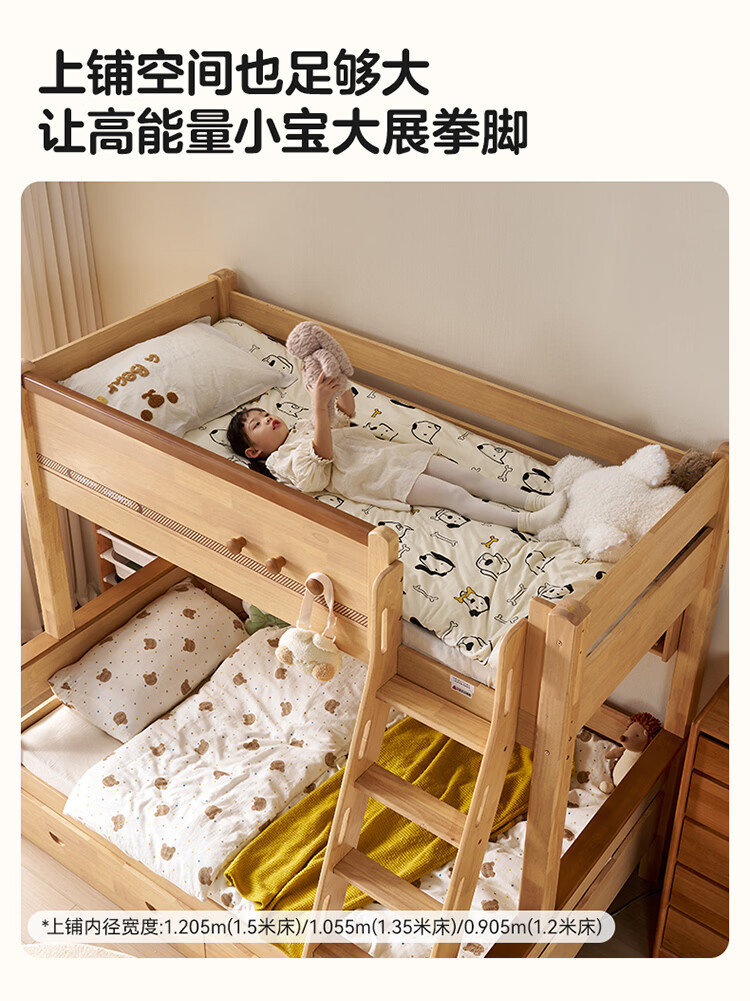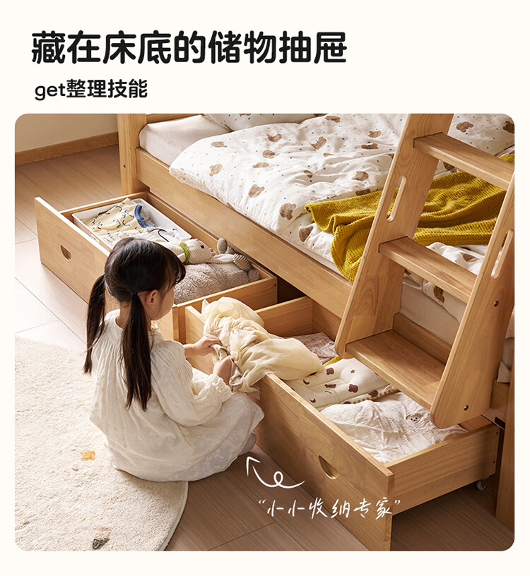 全友家居儿童上下铺双人床全实木双层高低床带护栏男孩女孩储物收纳床 上下床+书架+底抽+床垫 1.2米x1.9米