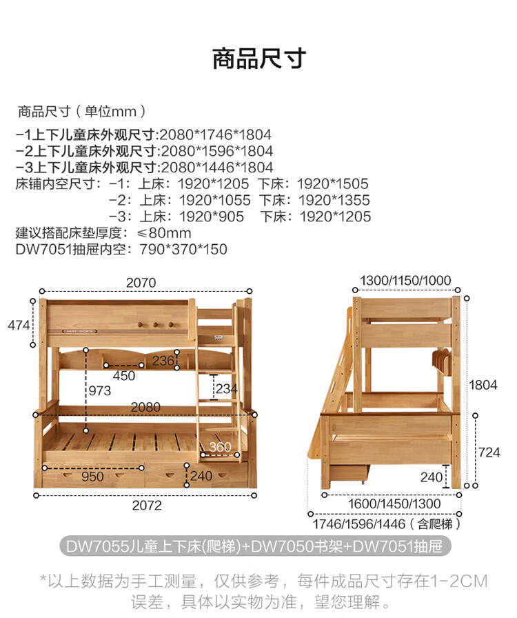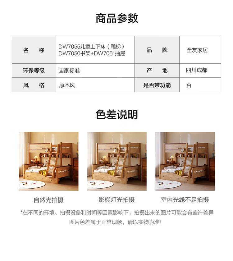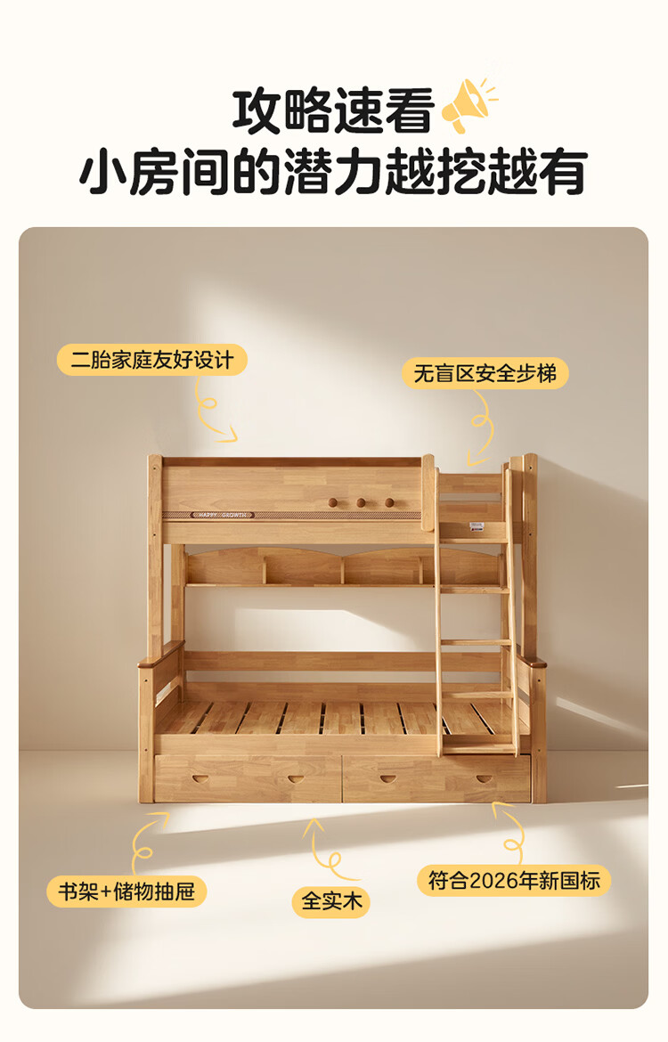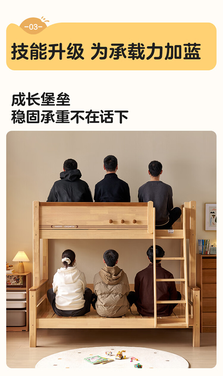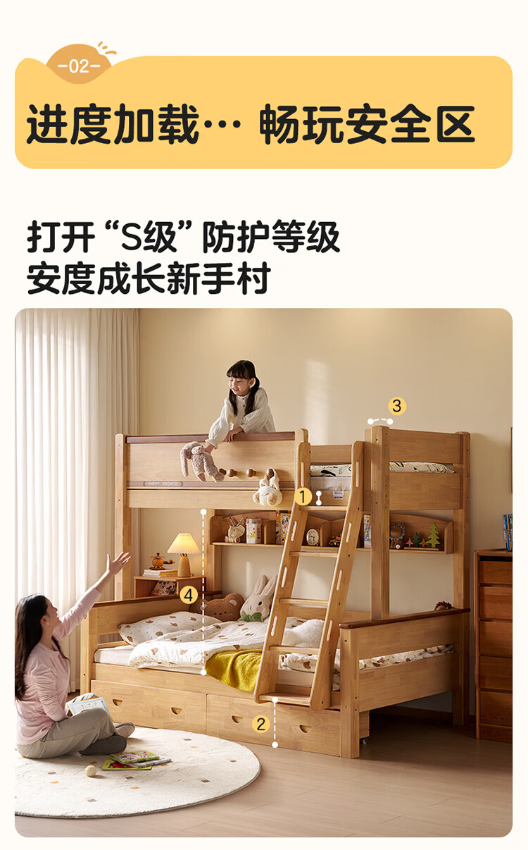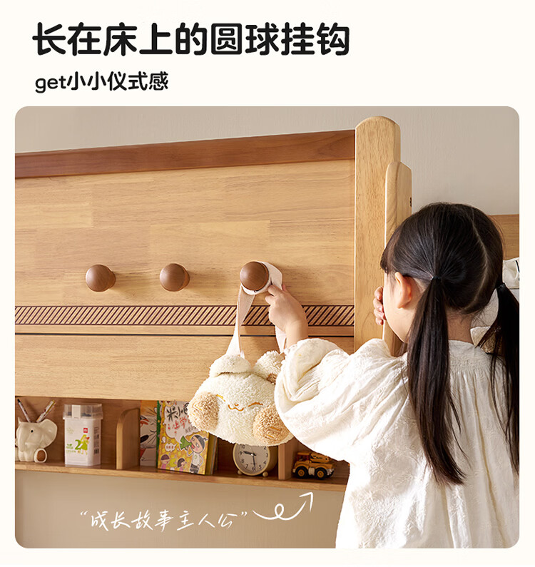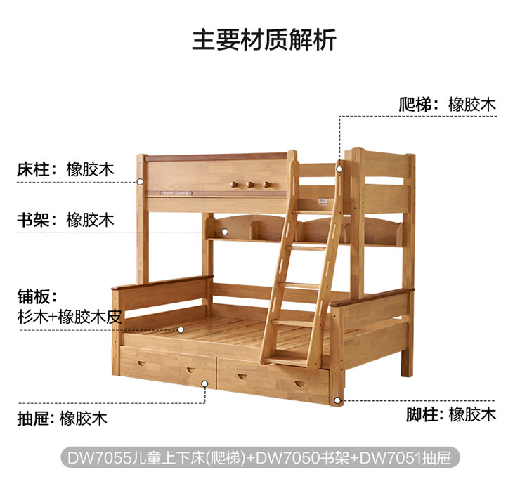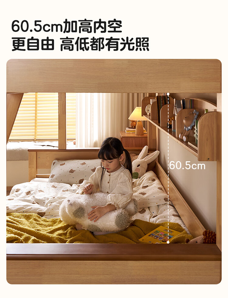 全友家居儿童上下铺双人床全实木双层高低床带护栏男孩女孩储物收纳床 上下床+书架+底抽+床垫 1.2米x1.9米