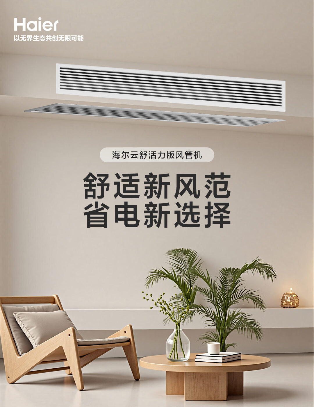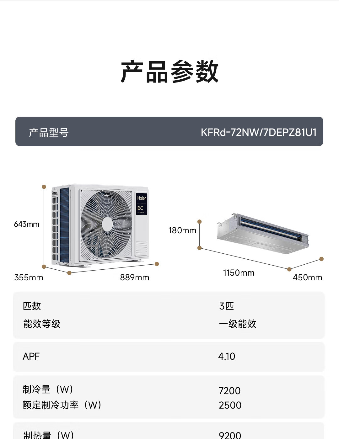 海尔(Haier)中央空调风管机一拖一客厅3匹超高性价比 纯铜管 一级能效 一价全包KFRd-72NW/7DEPZ81U1 云舒活力3匹 行业超薄 除菌自清洁 【一价全包】