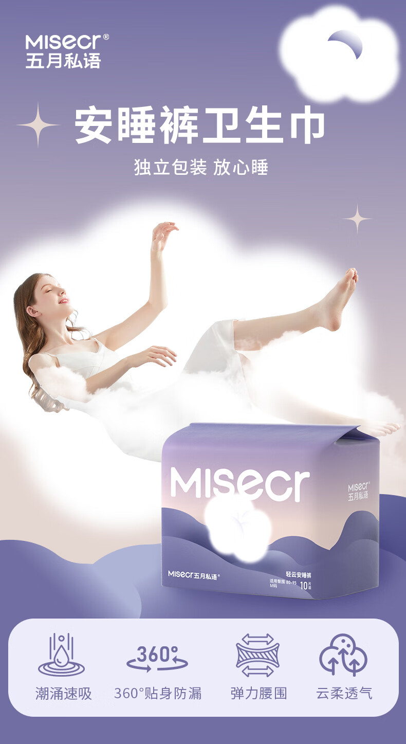 五月私语【关晓彤代言】轻云安睡裤卫生巾安心裤女经期卫生裤超薄裸感30条 L 30条 110-140斤