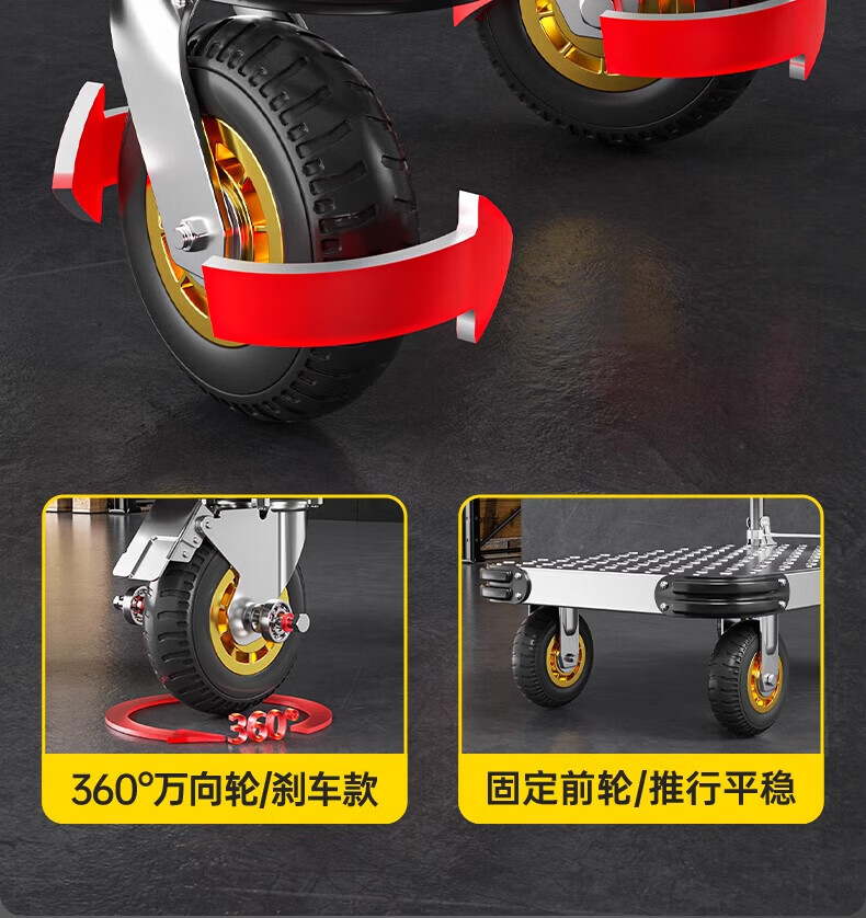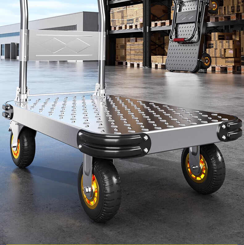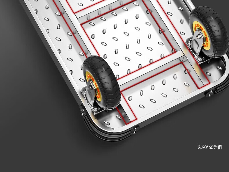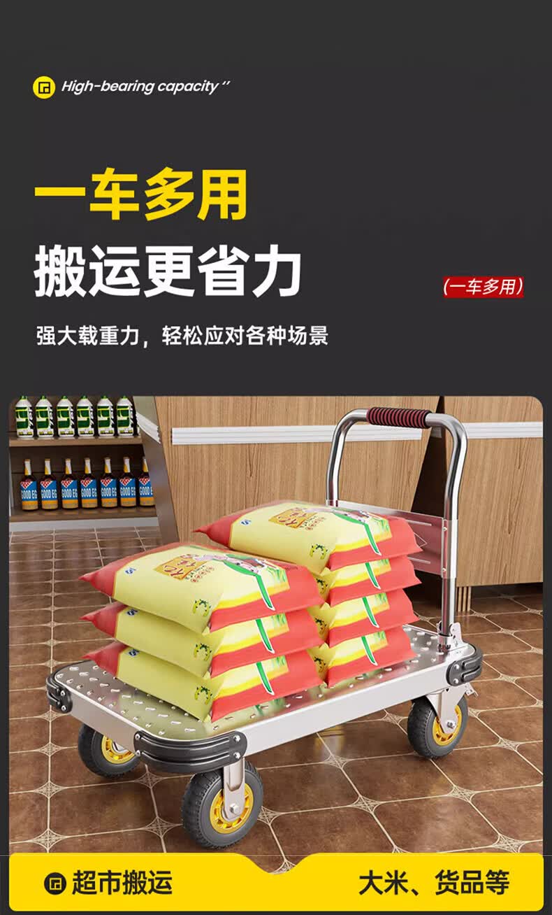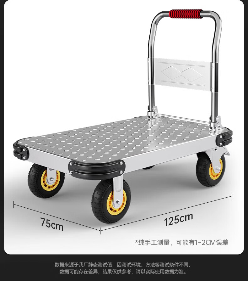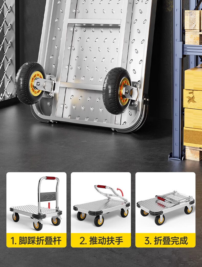 亚伦大力士小手推车平板车家用拉货搬运车拉车仓库商用折叠拖车快递搬运工具 加厚30%【银色90*60】5寸烽火轮+承重1850斤