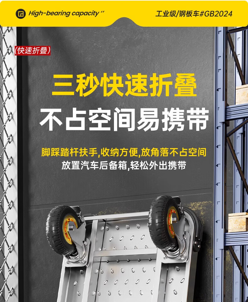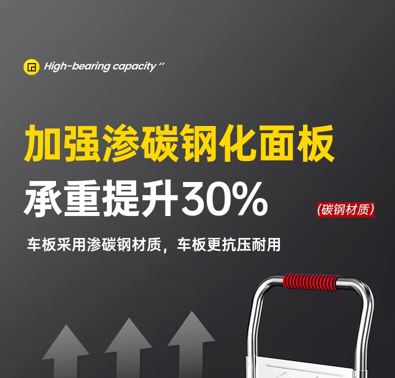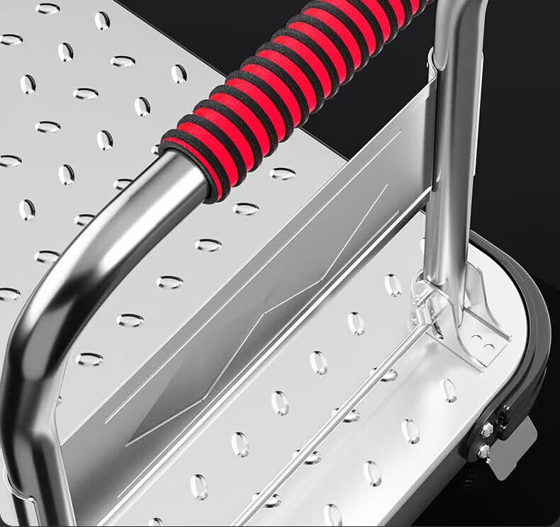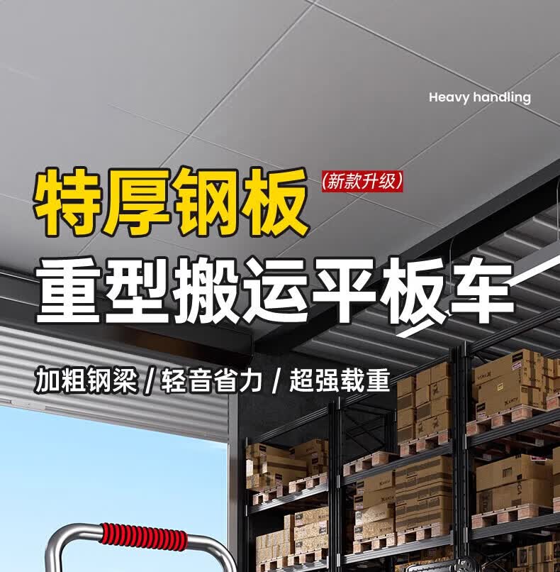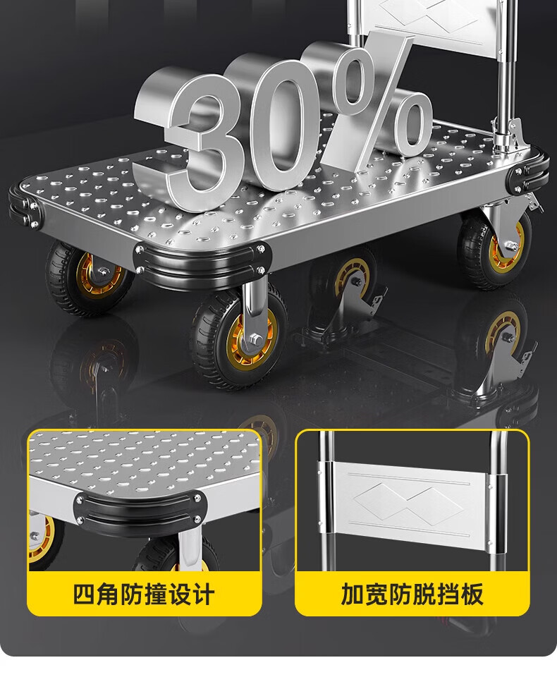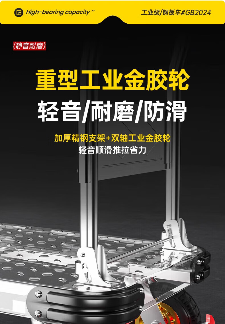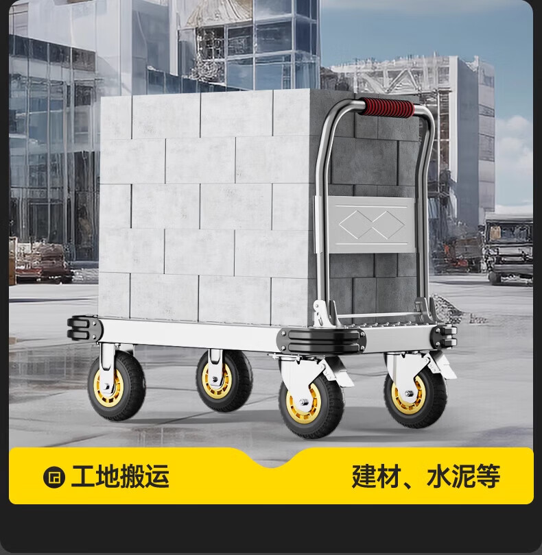 亚伦大力士小手推车平板车家用拉货搬运车拉车仓库商用折叠拖车快递搬运工具 加厚30%【银色90*60】5寸烽火轮+承重1850斤