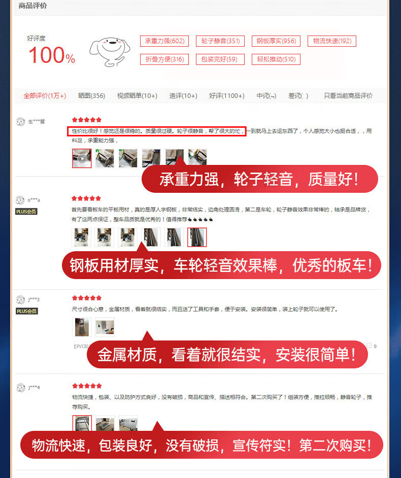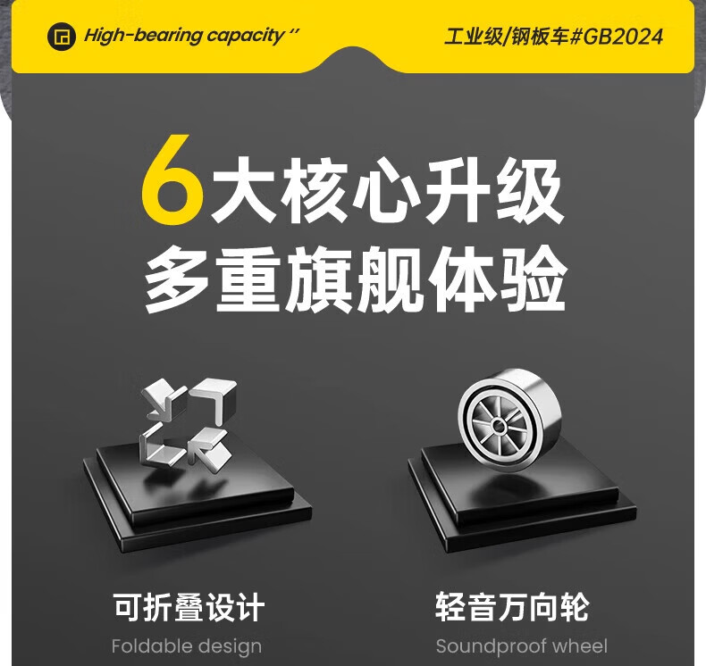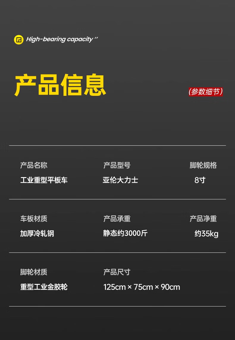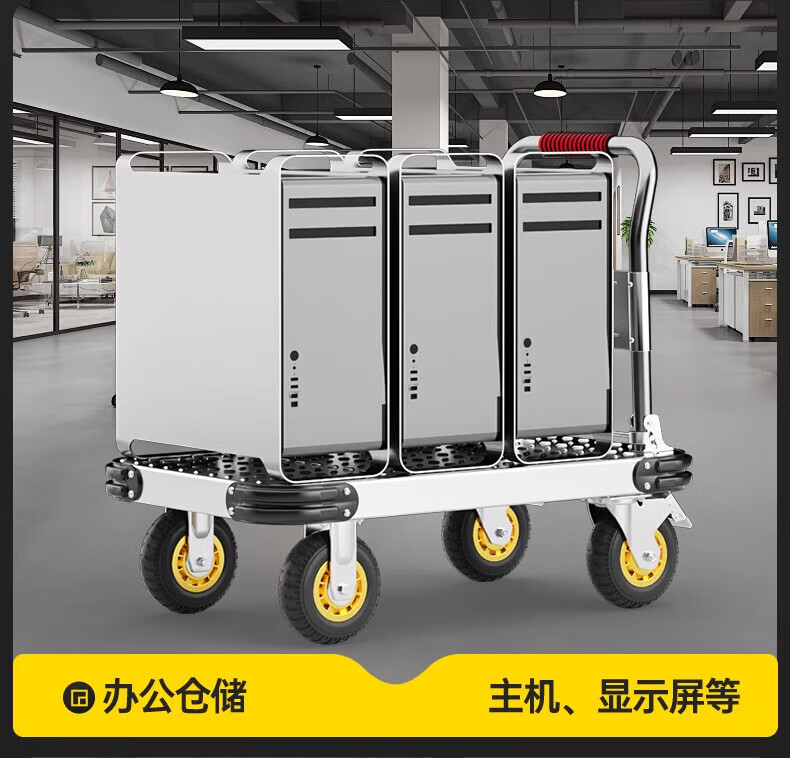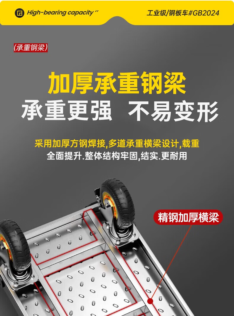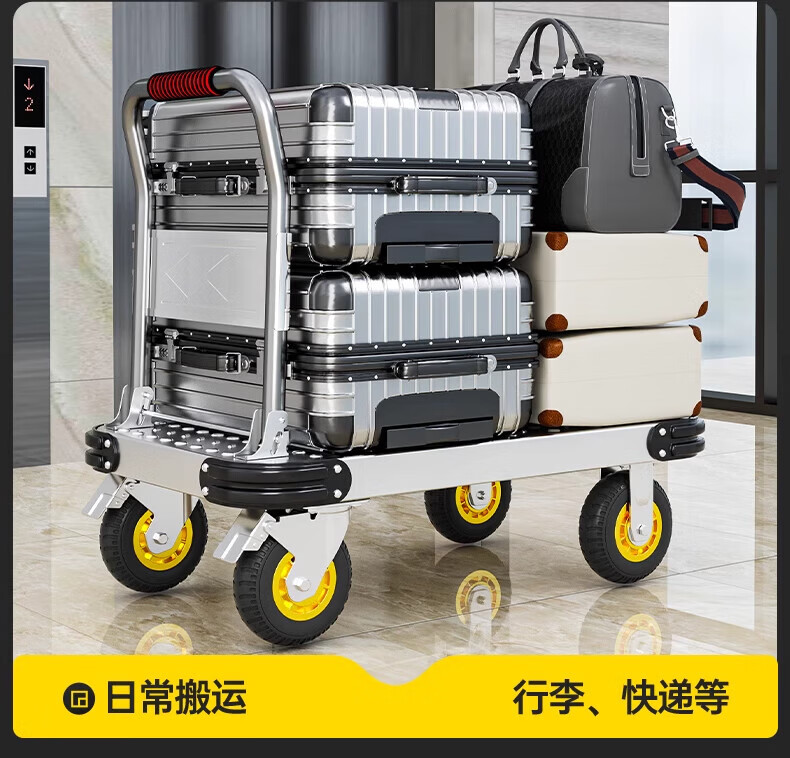 亚伦大力士小手推车平板车家用拉货搬运车拉车仓库商用折叠拖车快递搬运工具 加厚30%【银色90*60】5寸烽火轮+承重1850斤