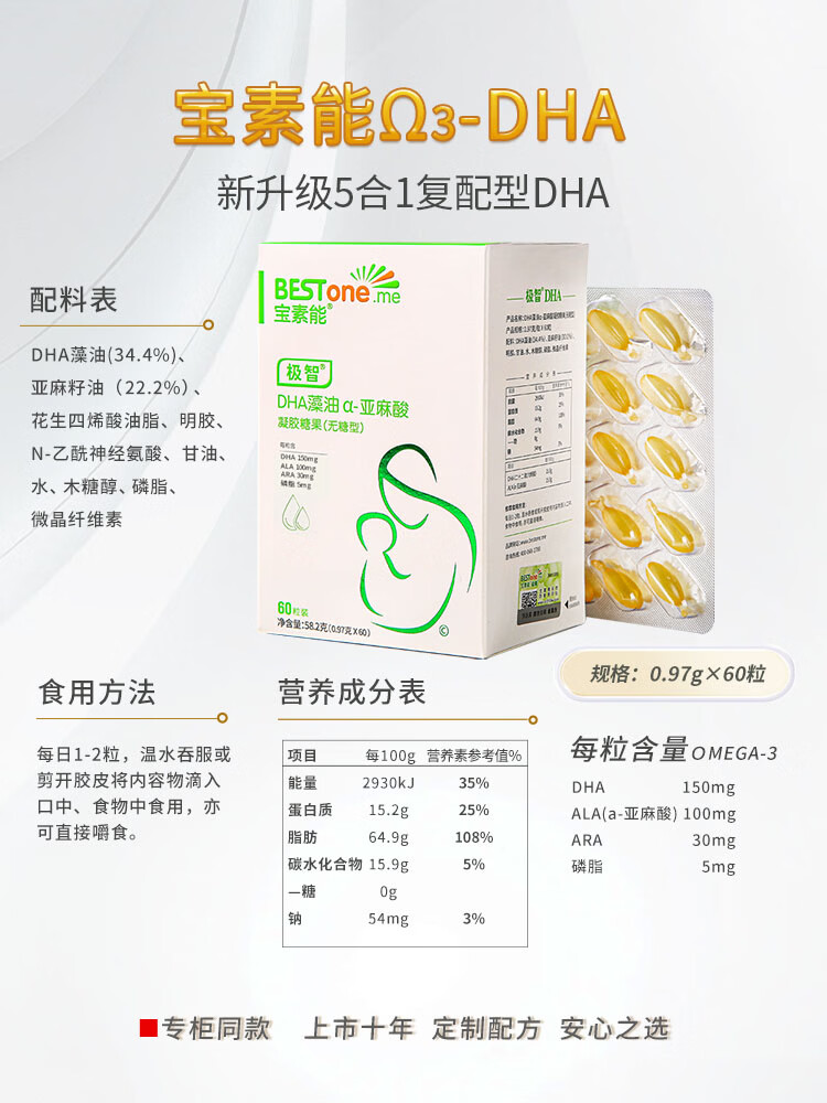 宝素能2026磷脂型DHA150mg藻油亚麻酸孕妇儿童宝宝专属定制款上市十年 铂金DHA6盒装(赠4盒叶饮+2盒铁) 5合1铂金配方:DHA+ALA+ARA+SA+PA