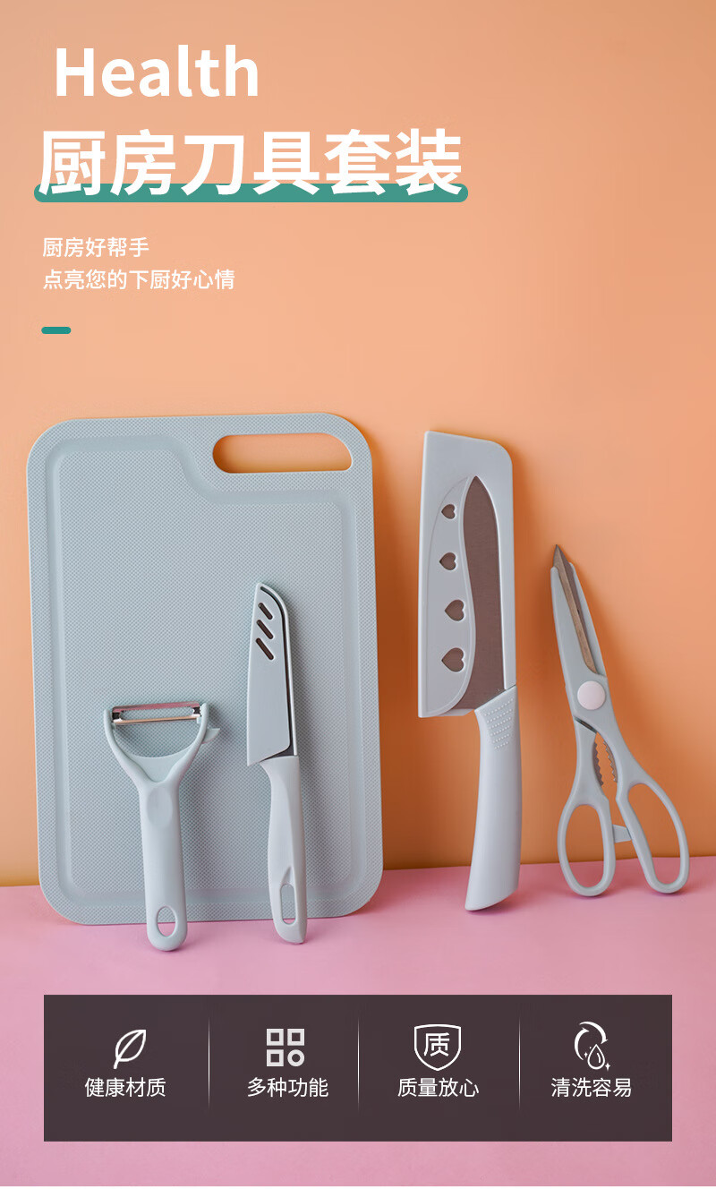 家用菜板切片刀厨房刀具套装 蓝色三件套