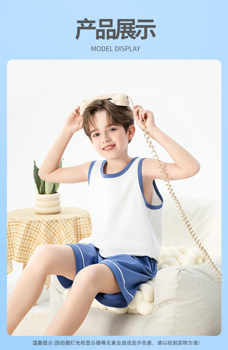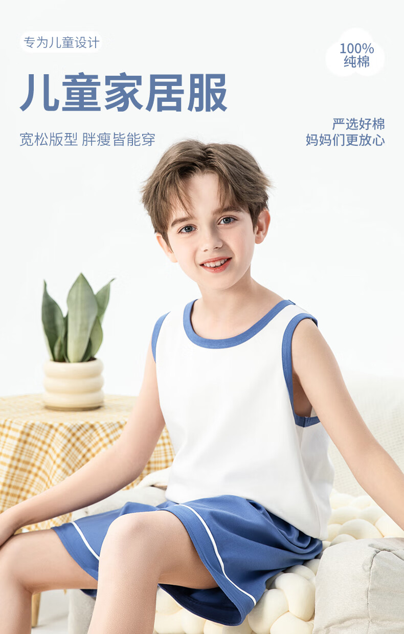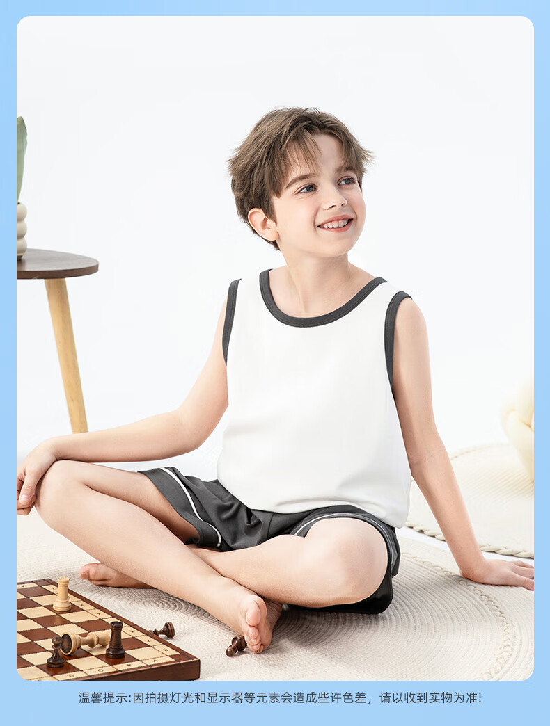 真维斯男童睡衣套装夏季儿童纯棉背心短裤家居服中大童a类童装柔软衣服 【100%棉亲肤家居服】石墨灰 110
