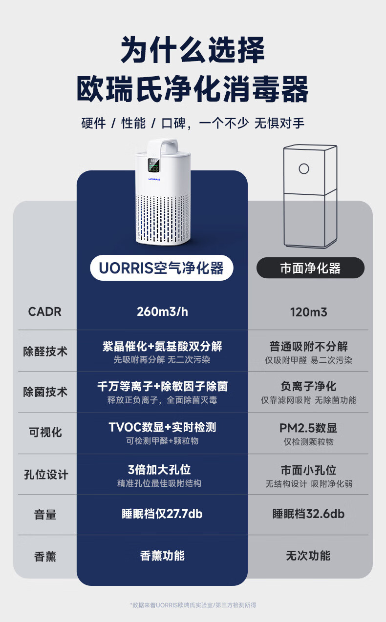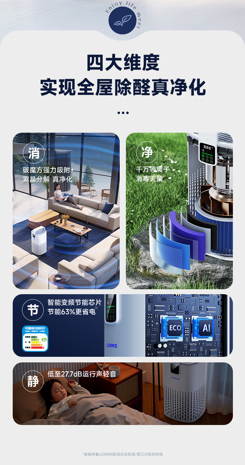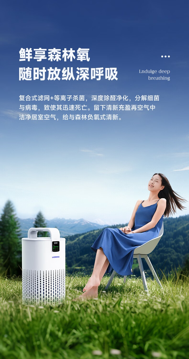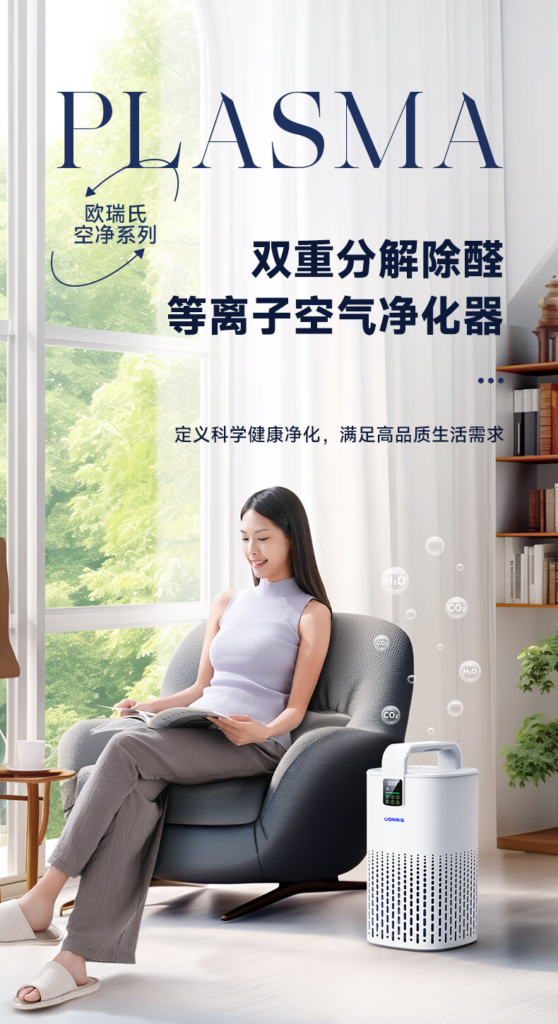 UORRIS欧瑞氏空气净化器 除甲醛分解式去烟除菌除异味 母婴家用卧室新房入住专用等负离子去醛净化器 椰奶白【分解式除甲醛丨高效除烟味异味】 等离子杀菌
