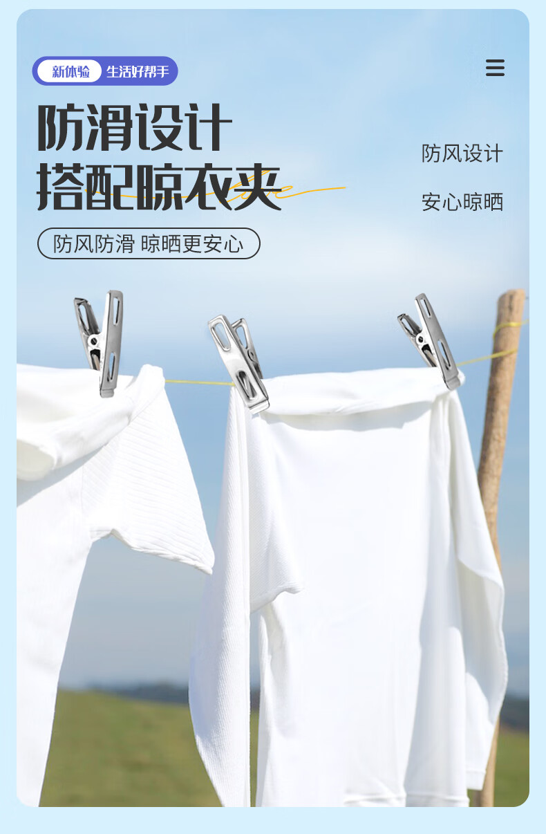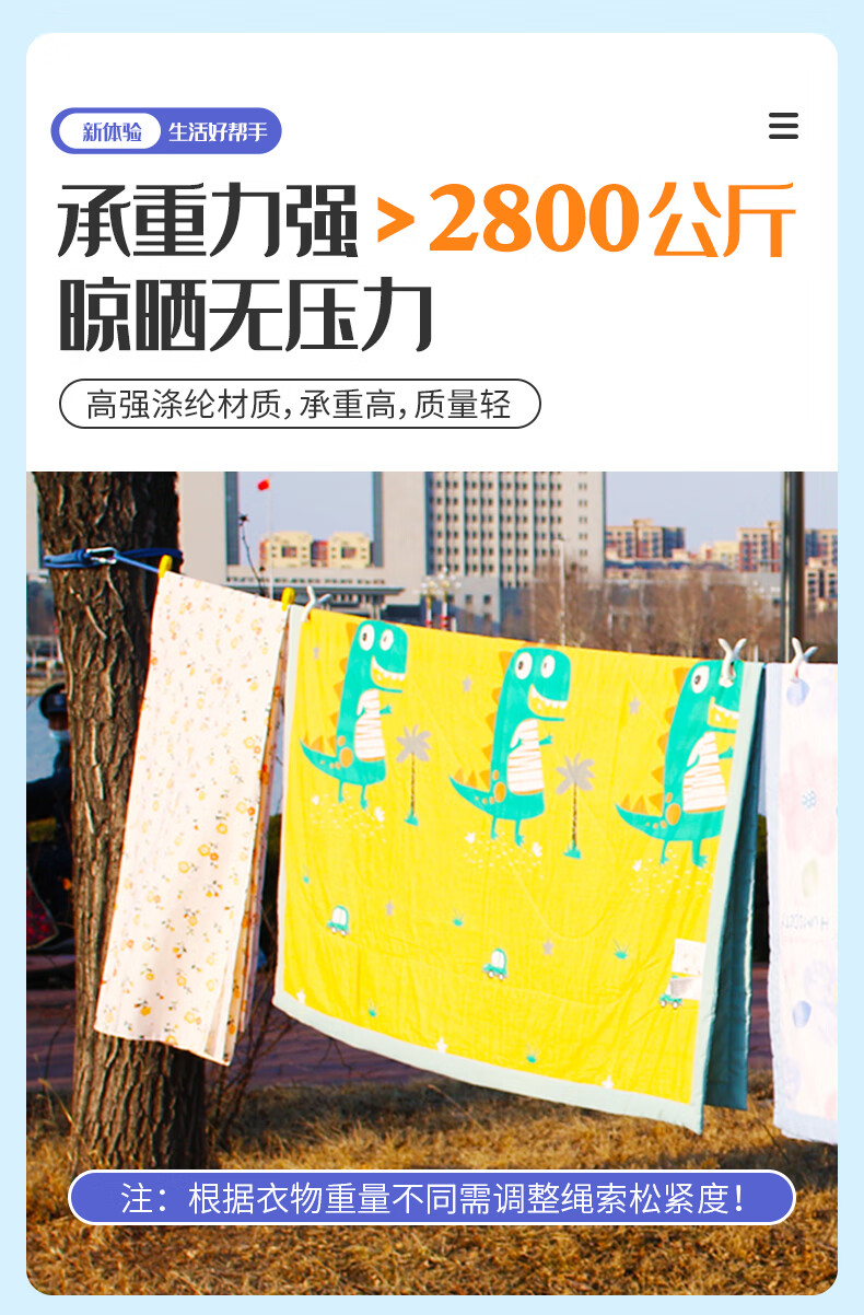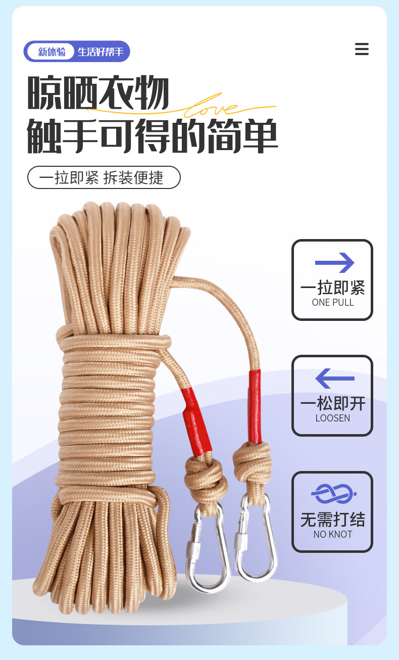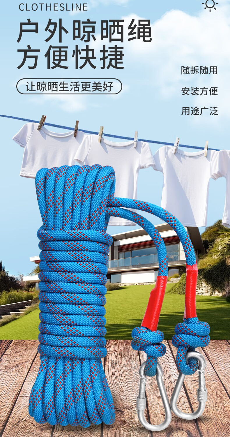 御力士晾衣绳室外晒衣绳户外加粗凉衣服的绳子拉紧扣楼顶天台晒被子神器 珍珠白13毫米【钢丝芯-晒被绳】 长度15米 【赠合金双钩+衣被夹】