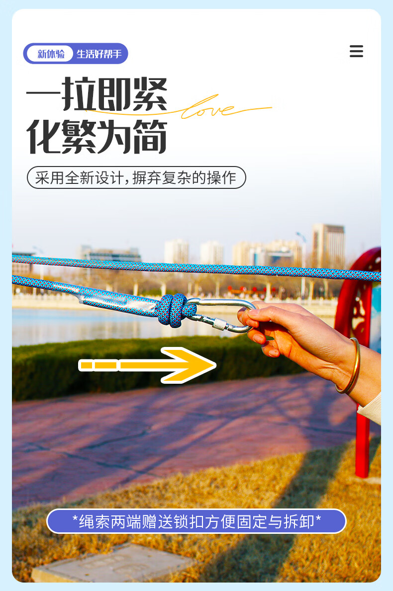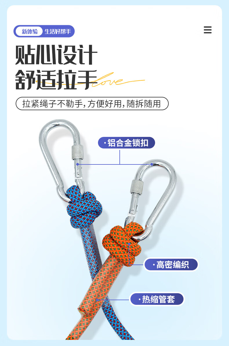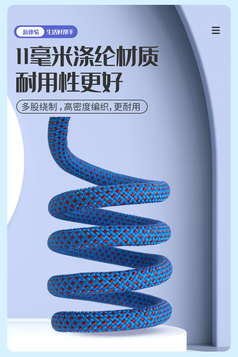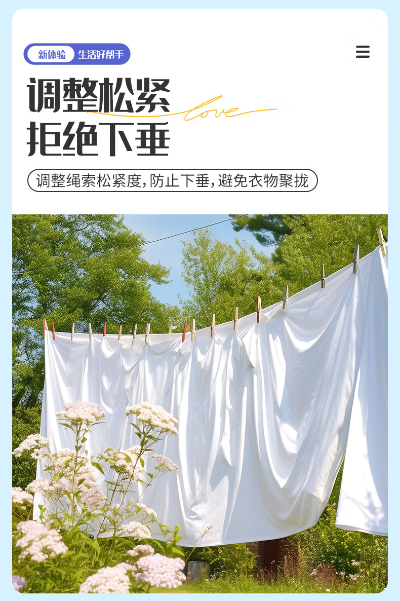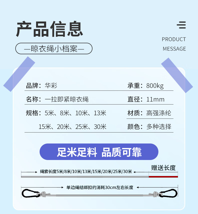 御力士晾衣绳室外晒衣绳户外加粗凉衣服的绳子拉紧扣楼顶天台晒被子神器 珍珠白13毫米【钢丝芯-晒被绳】 长度15米 【赠合金双钩+衣被夹】