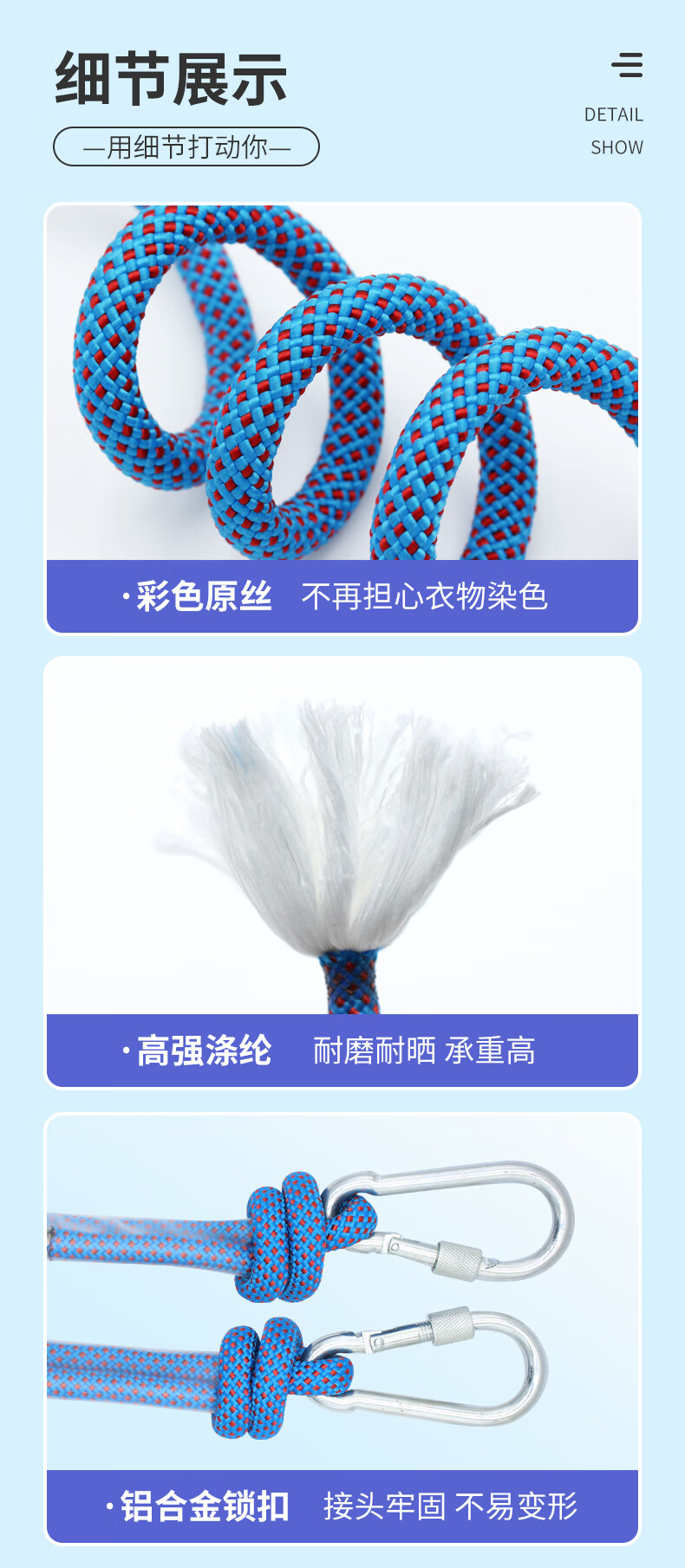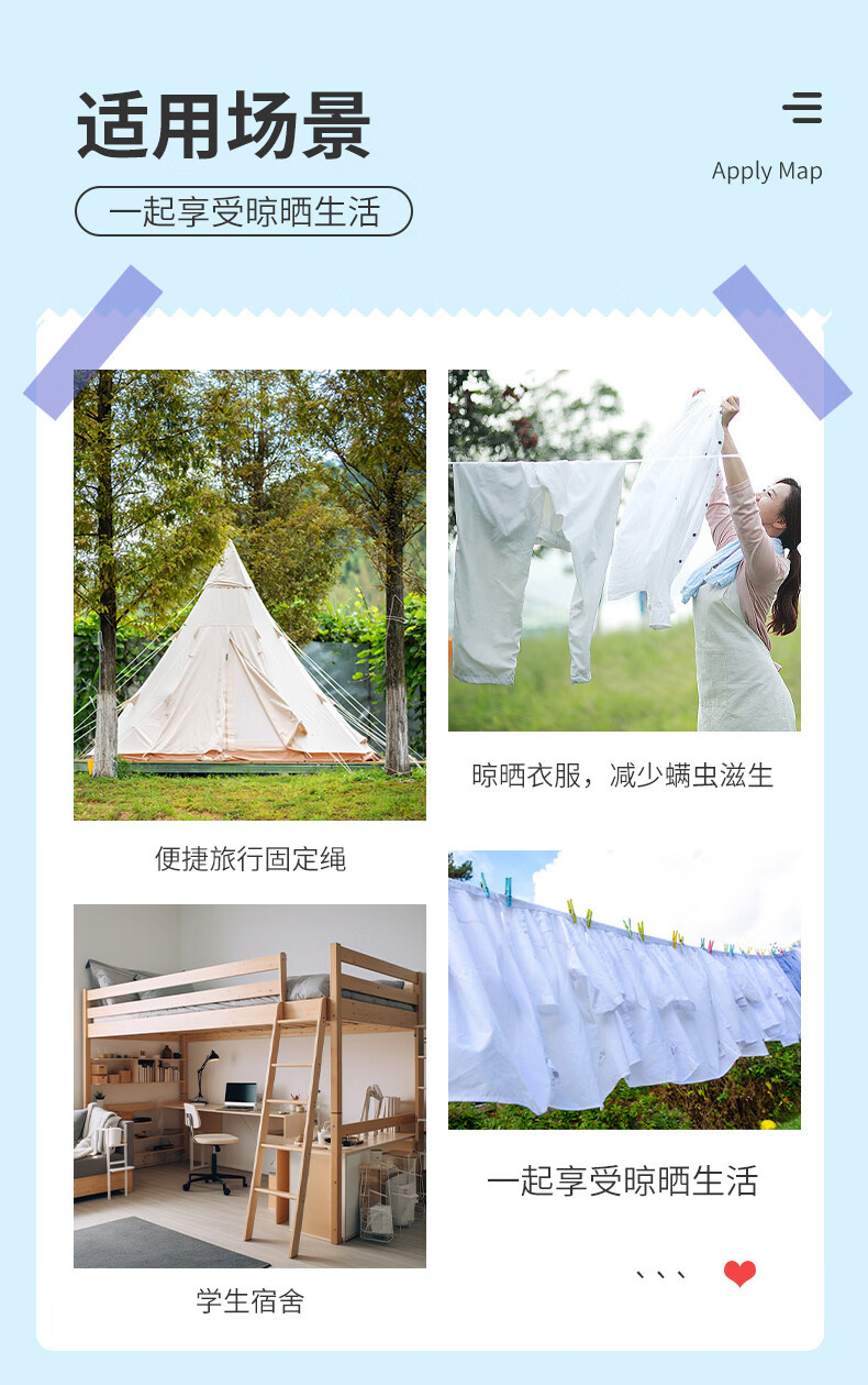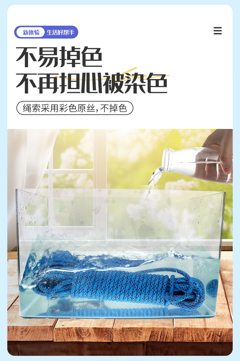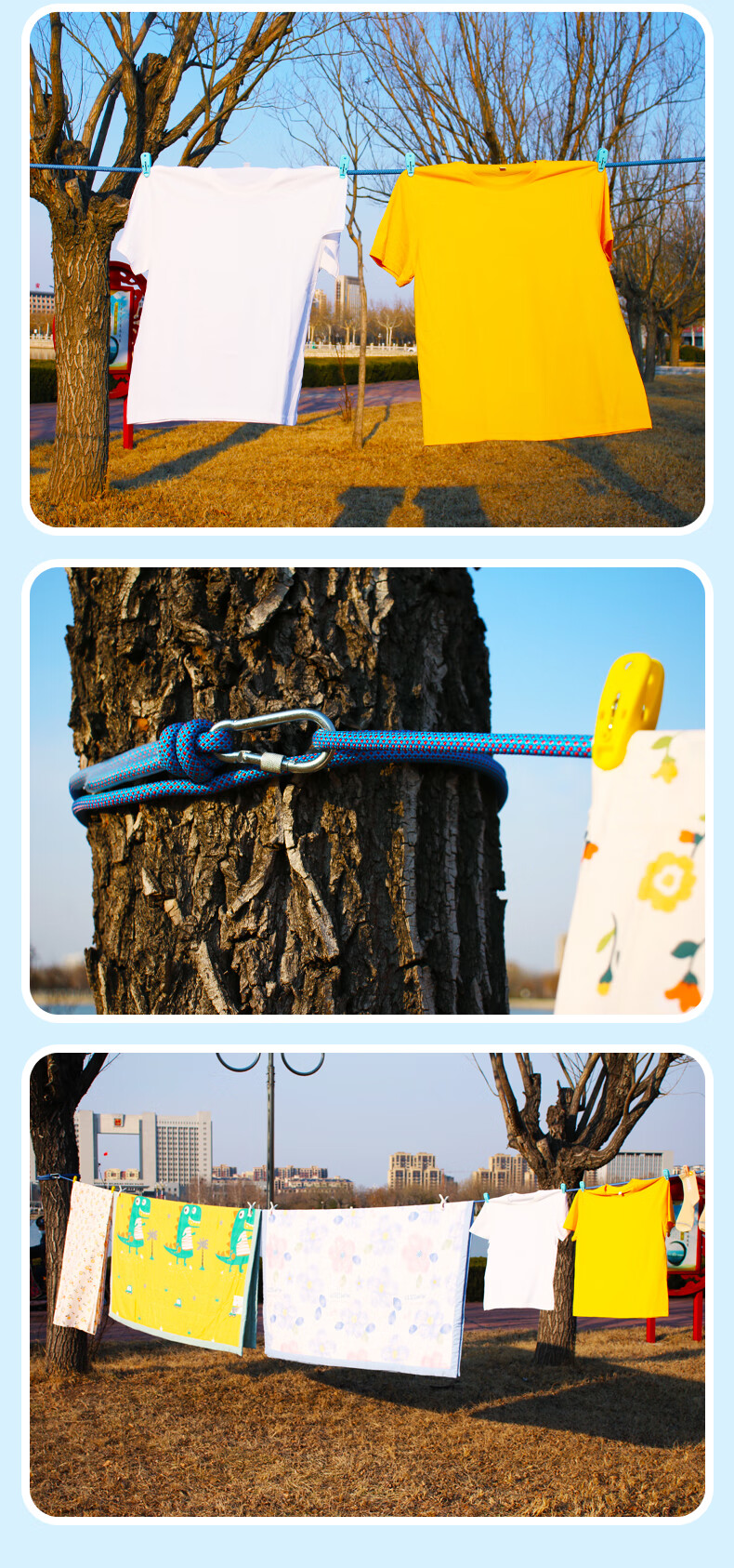 御力士晾衣绳室外晒衣绳户外加粗凉衣服的绳子拉紧扣楼顶天台晒被子神器 珍珠白13毫米【钢丝芯-晒被绳】 长度15米 【赠合金双钩+衣被夹】