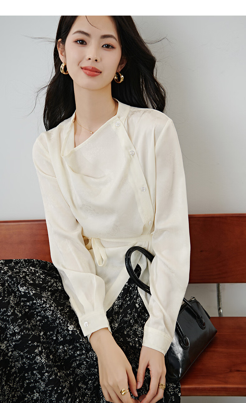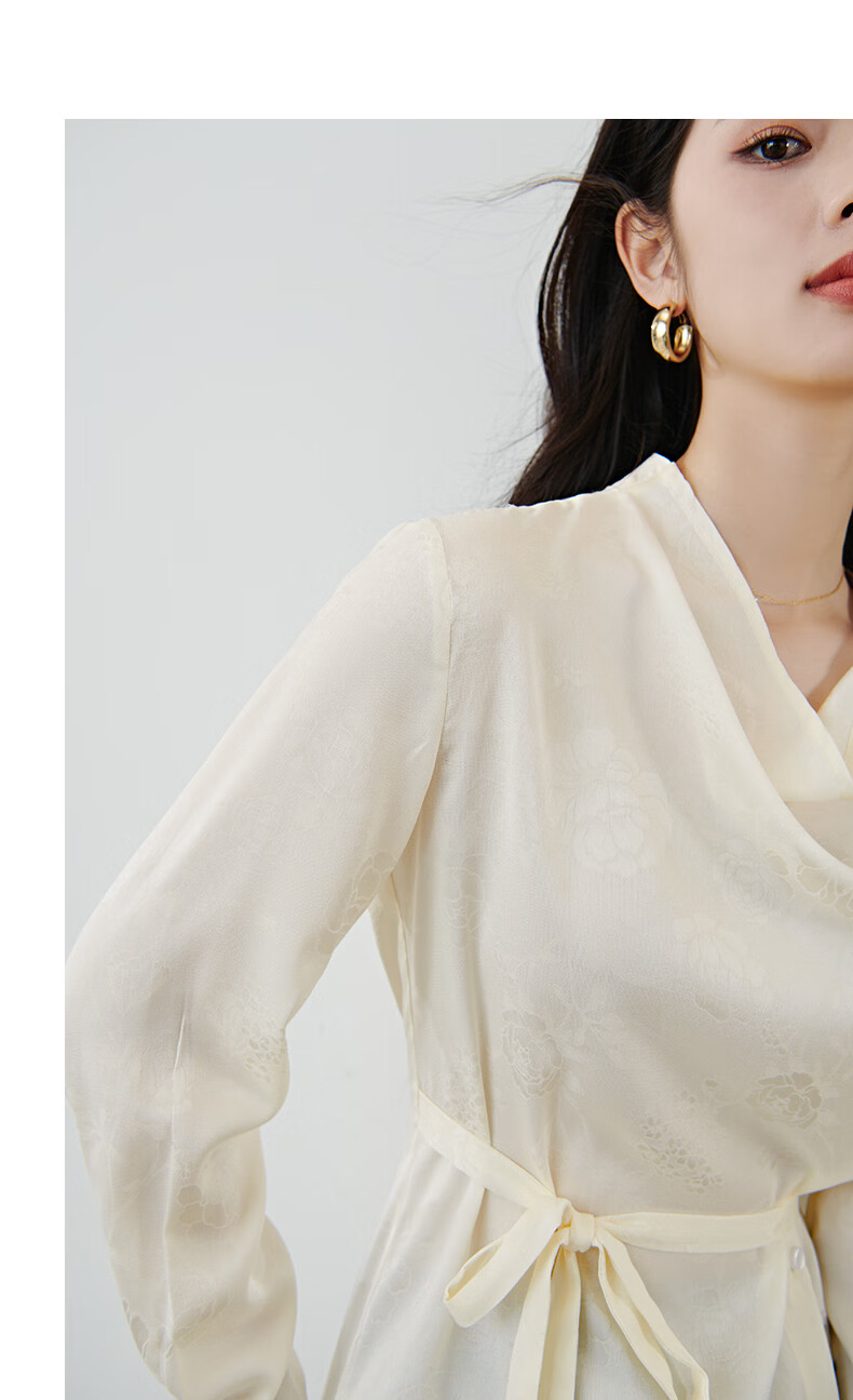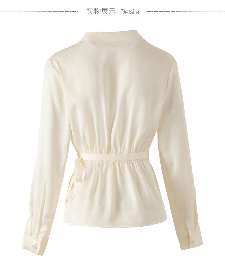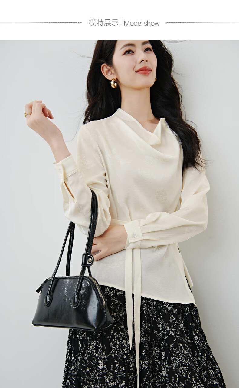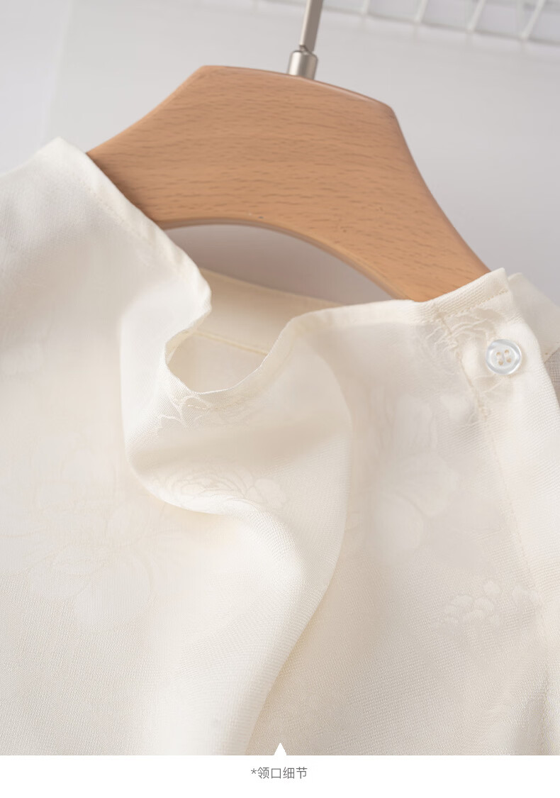 晚白2026春款法式荡领国风暗纹提花上衣系带松紧腰收腰显瘦大码衬衫女 浅杏色 L