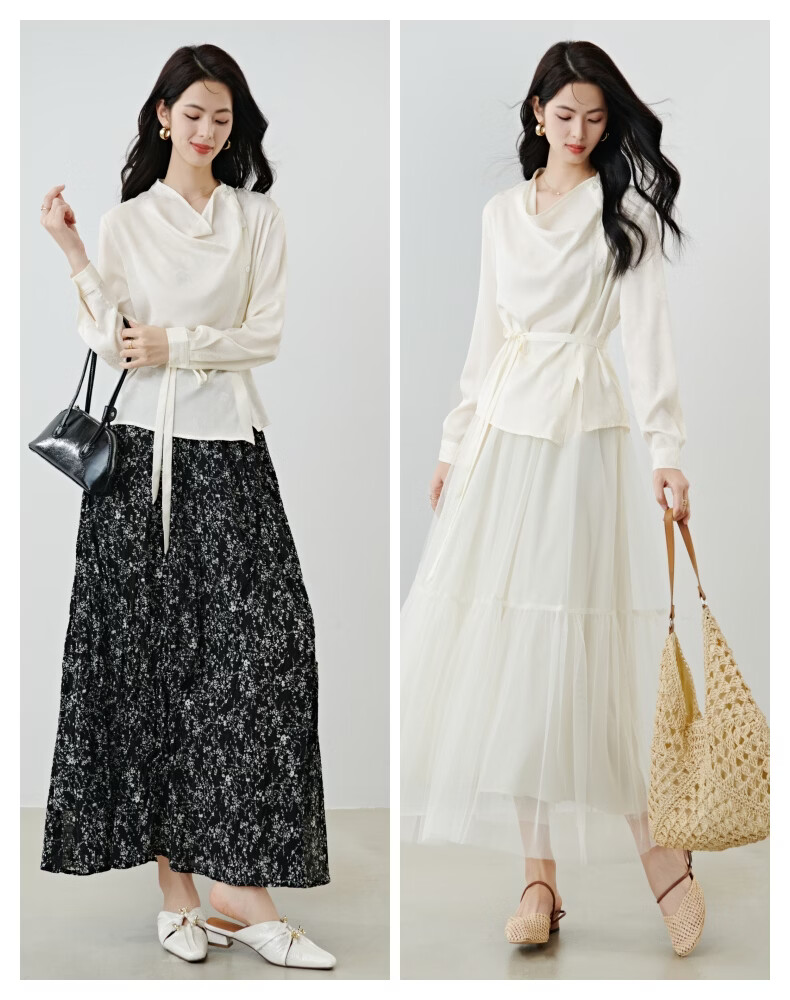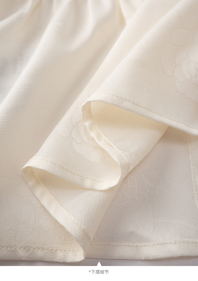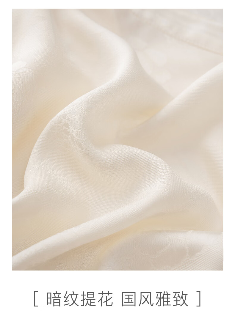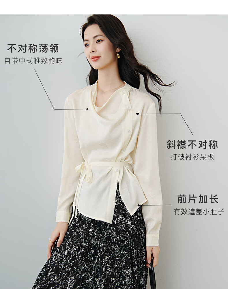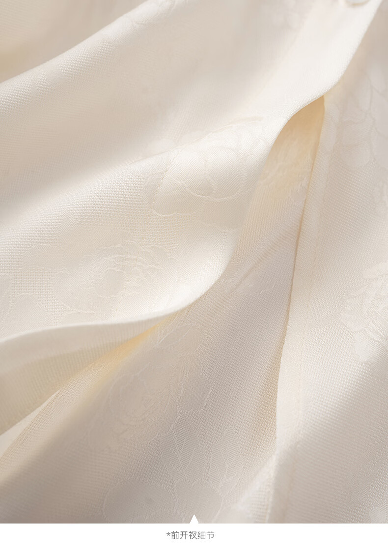晚白2026春款法式荡领国风暗纹提花上衣系带松紧腰收腰显瘦大码衬衫女 浅杏色 L