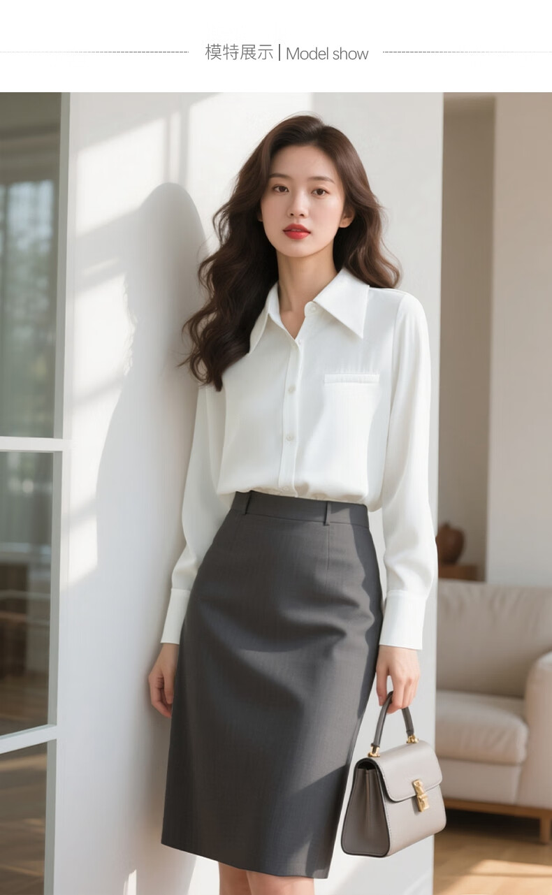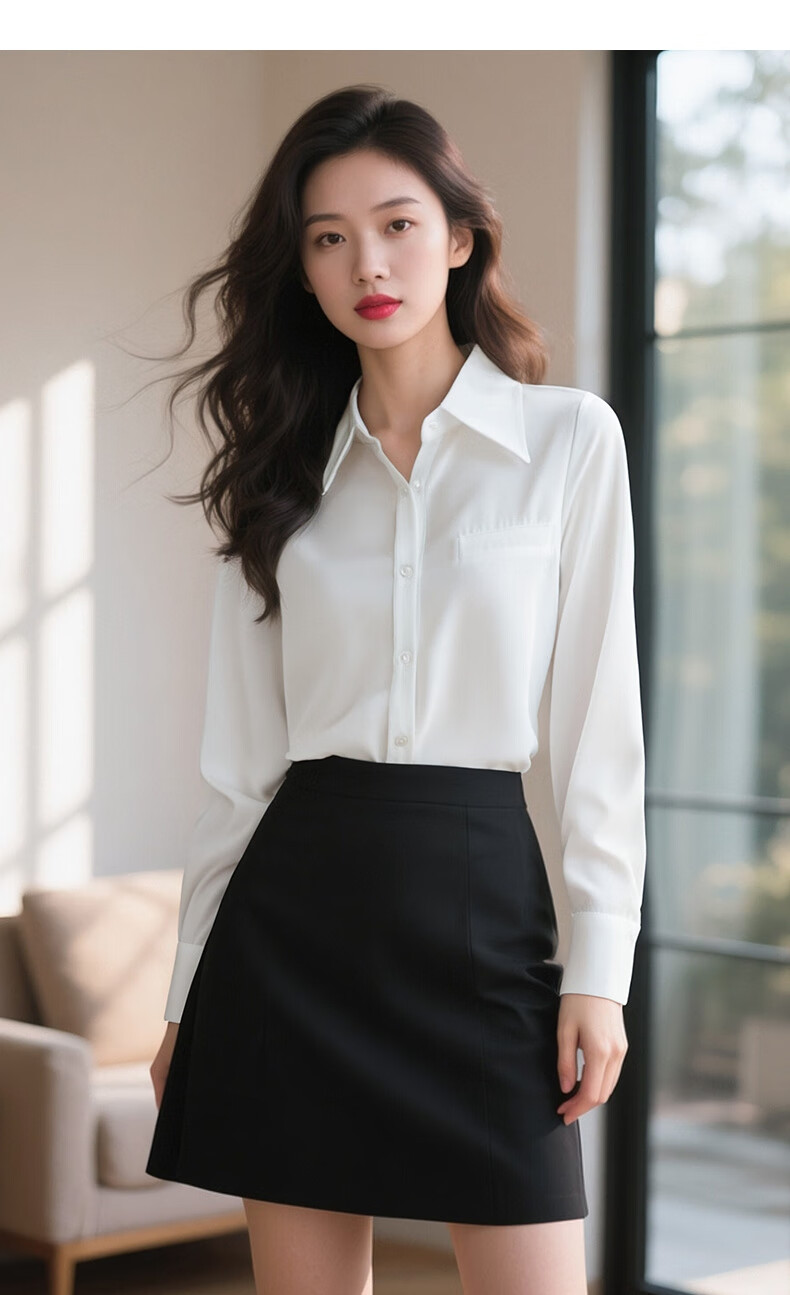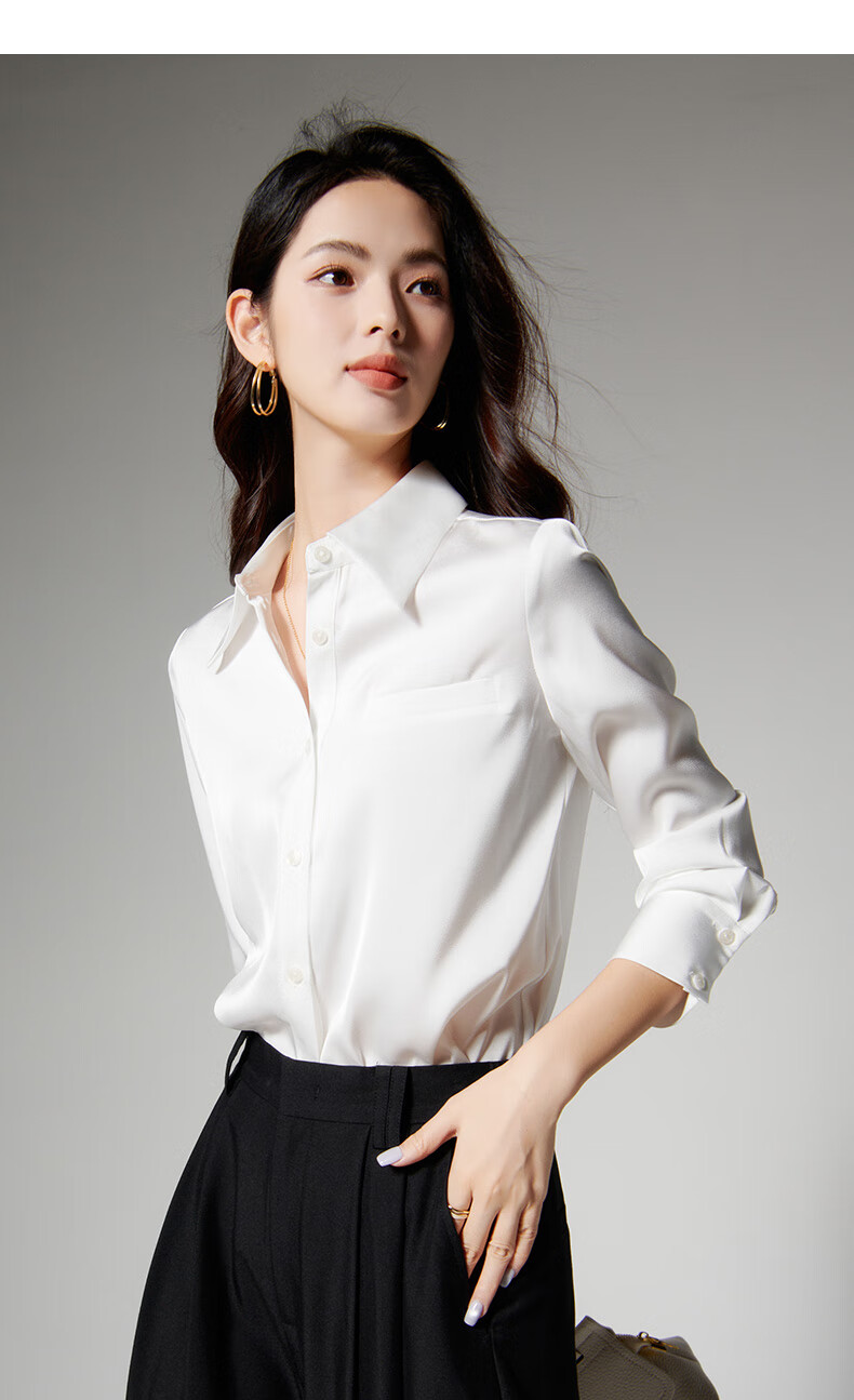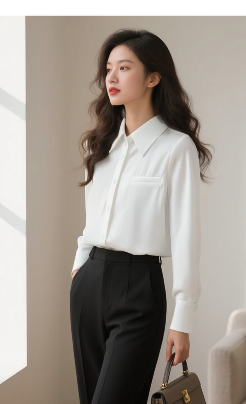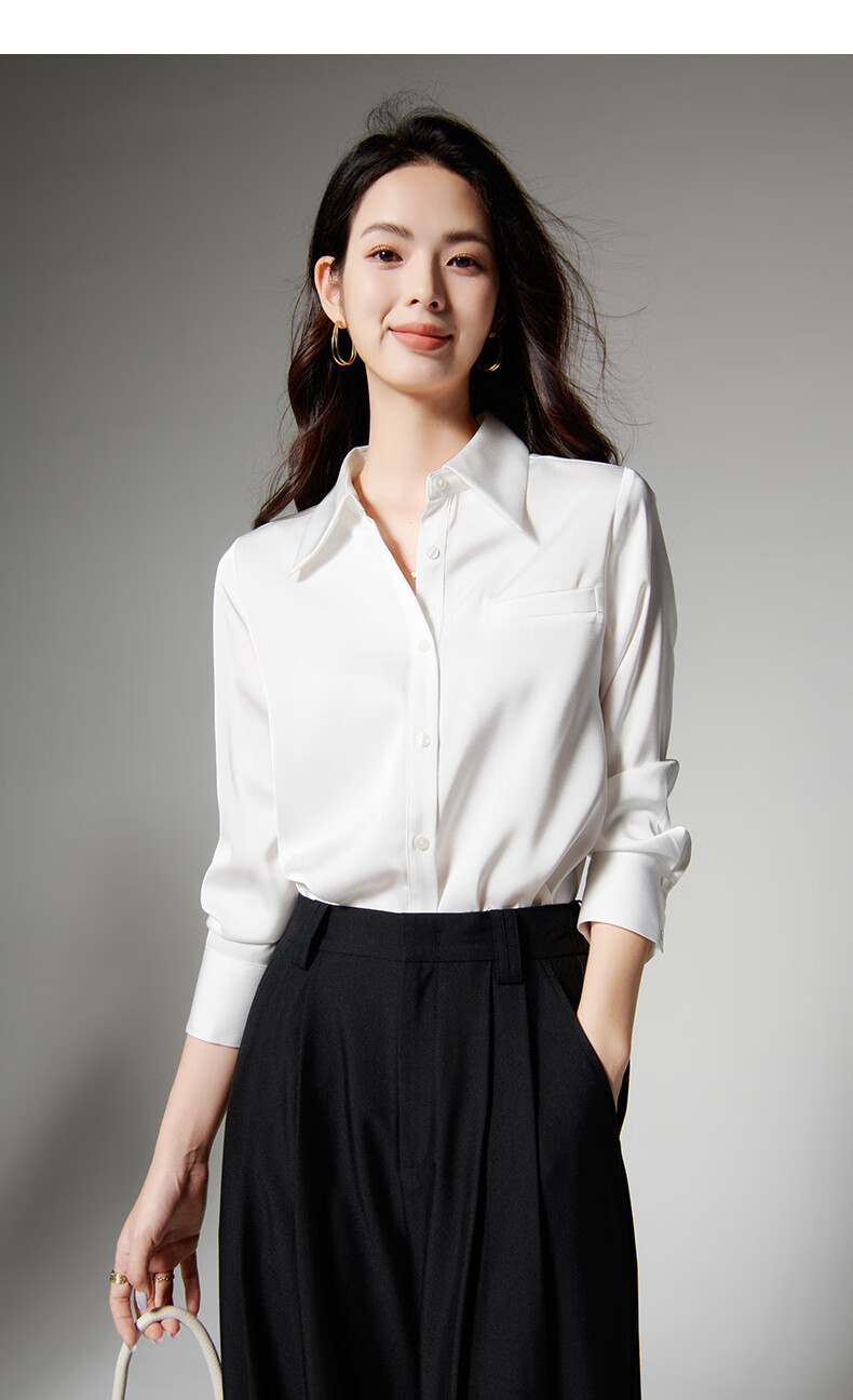晚白【新品】2026春款正式场合面试白衬衫职场实习穿搭法式缎感衬衣女 白色 2XL
