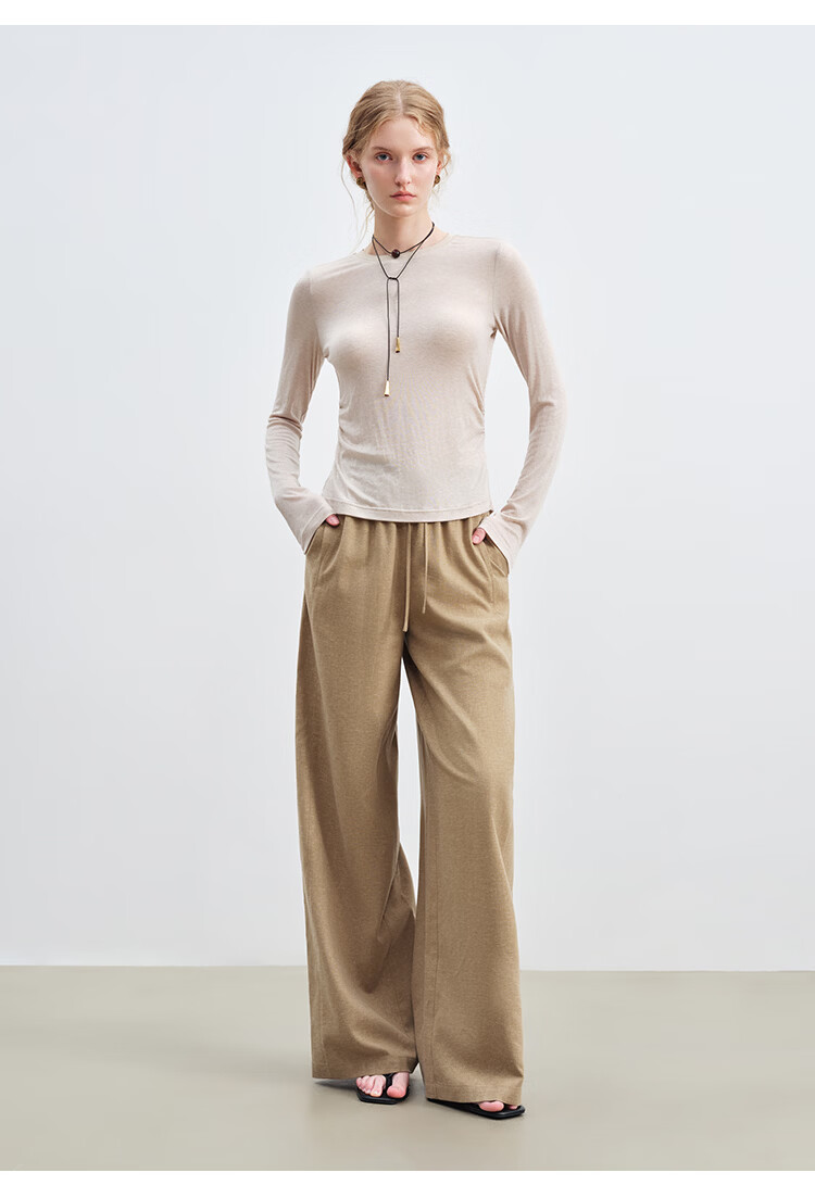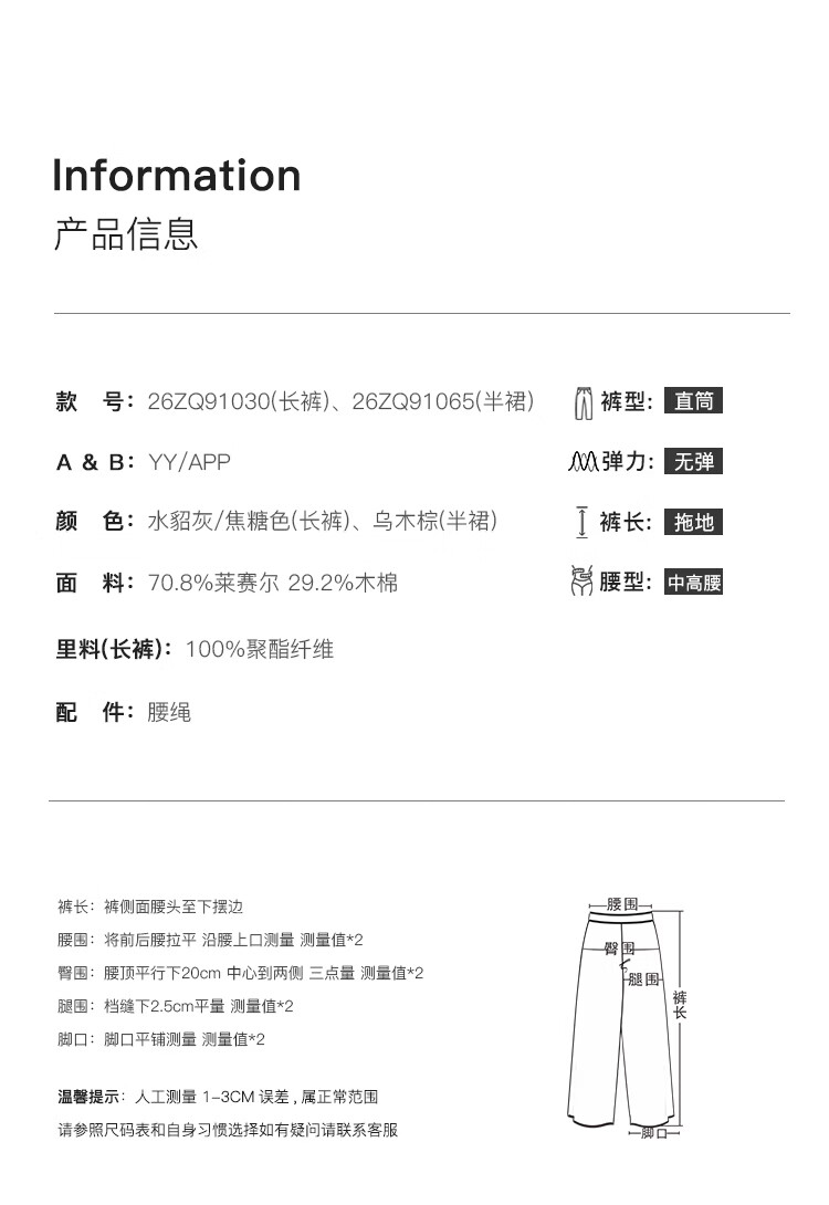 自巧小个子木棉天丝垂坠感直筒休闲裤女2026新款早春中长半身裙子 水貂灰休闲裤 L (尺码:5)