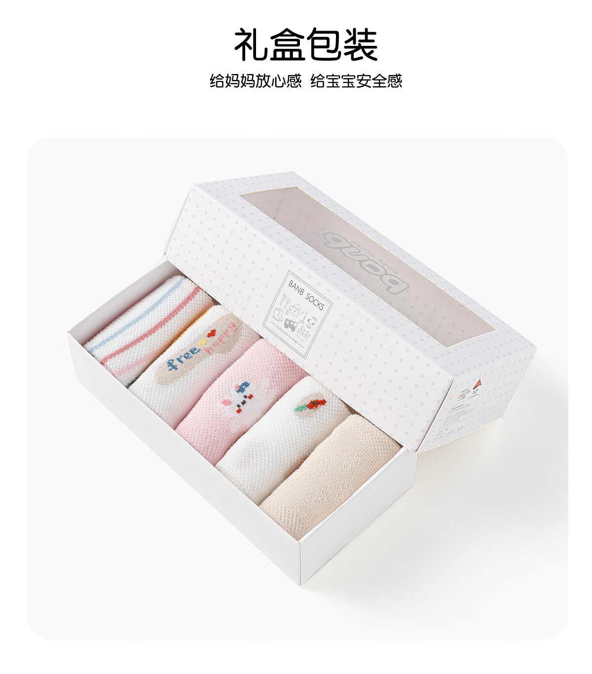 斑比童袜儿童袜子夏季薄款网眼棉袜中大童女孩春秋无骨袜 BB2312 春夏款儿童袜子 5双 0-1岁 建议脚码16码以内【12-14】