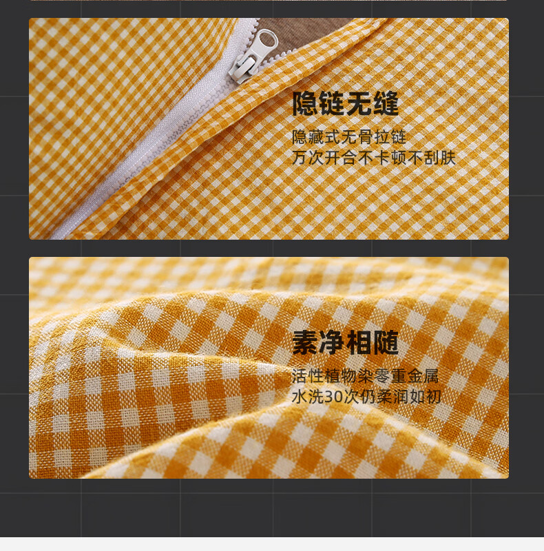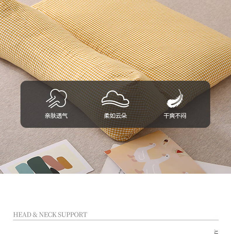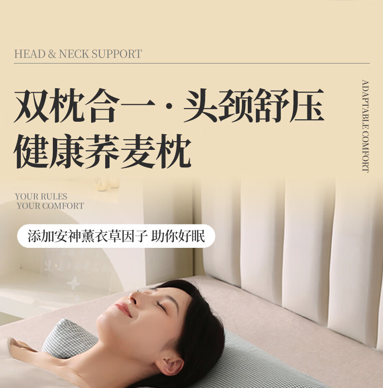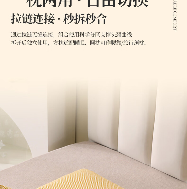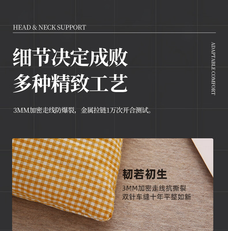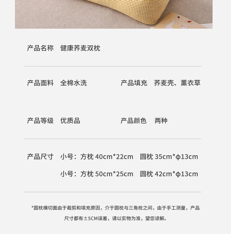 南极人(Nanjiren)全棉荞麦枕头单人枕芯枕头护颈枕颈椎病深度睡眠专用枕头成人一对 【牵引分区组合枕】小黄格小号【方枕40*22cm】