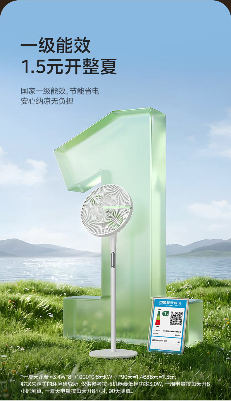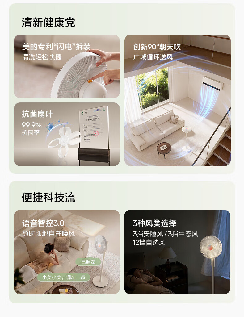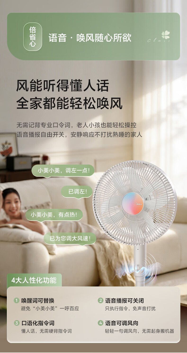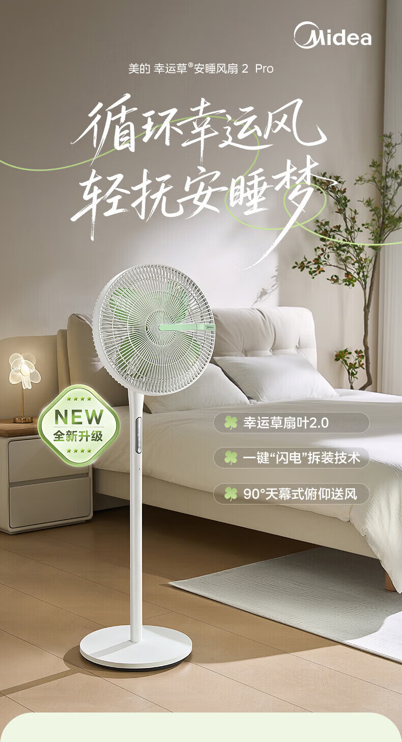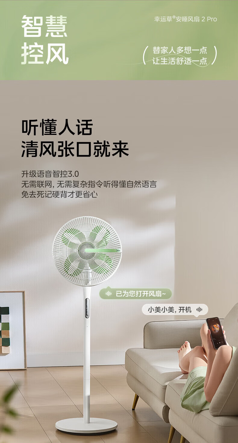 美的(Midea)电风扇落地扇家用智能变频立式风扇大风量客厅宿舍轻音立式两用电扇家用 【幸运草系列】 幸运草【触摸+APP+语音+遥控】