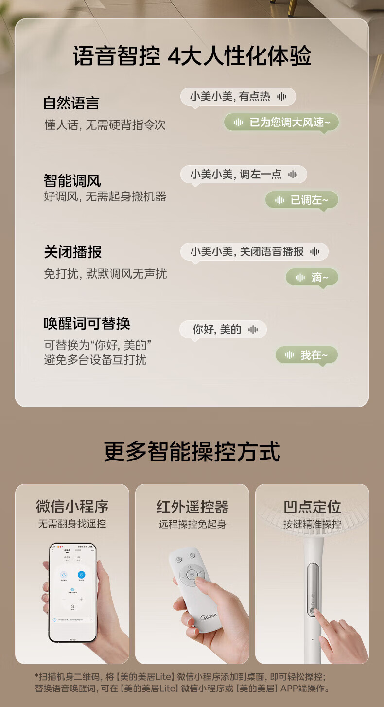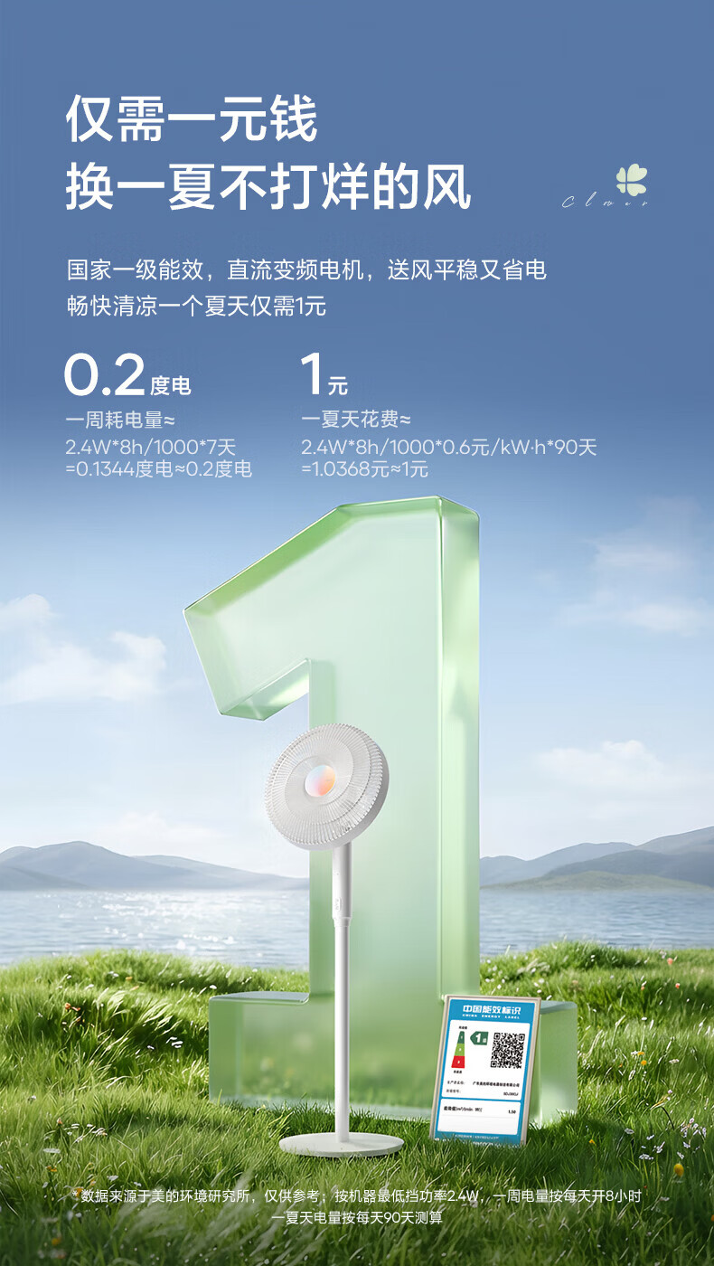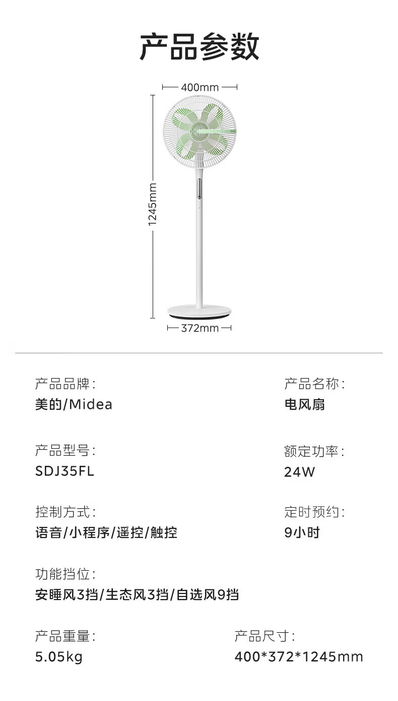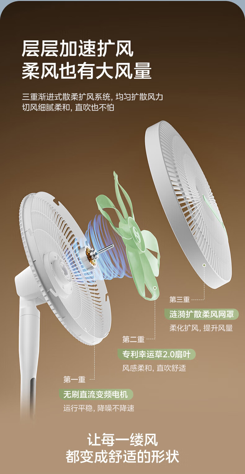 美的(Midea)电风扇落地扇家用智能变频立式风扇大风量客厅宿舍轻音立式两用电扇家用 【幸运草系列】 幸运草【触摸+APP+语音+遥控】