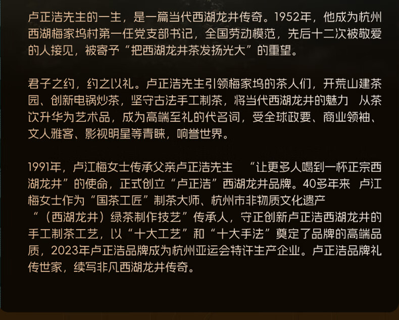 卢正浩绿茶西湖龙井特级100g2026新茶预售明前茶叶礼盒狮峰山源头直发
