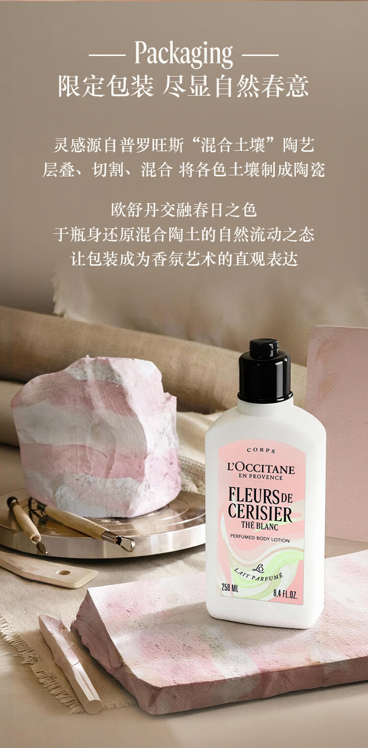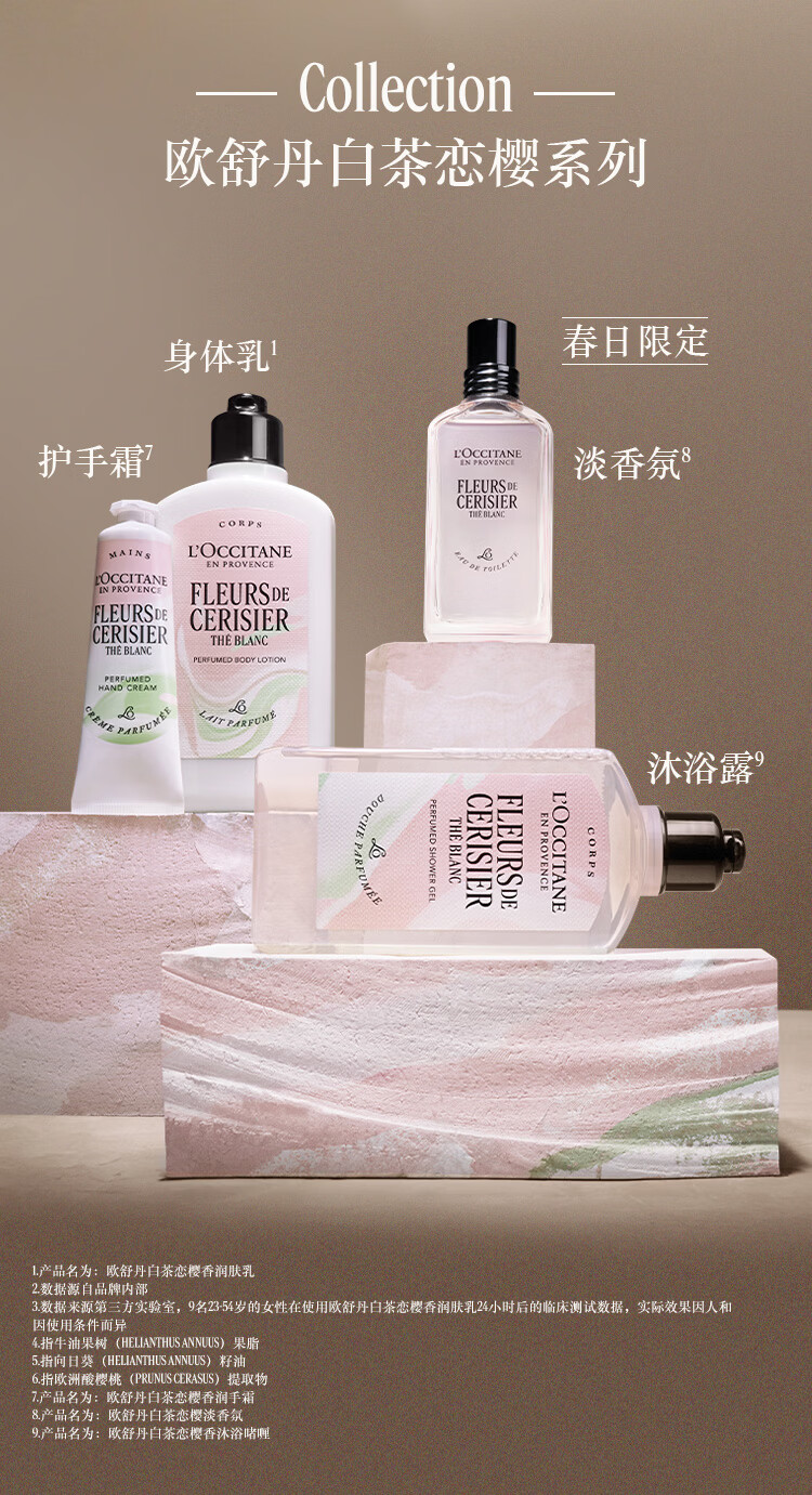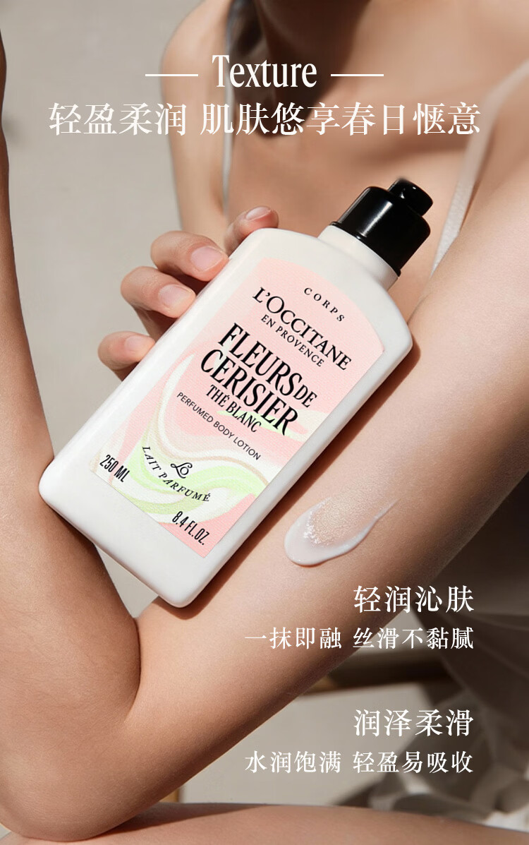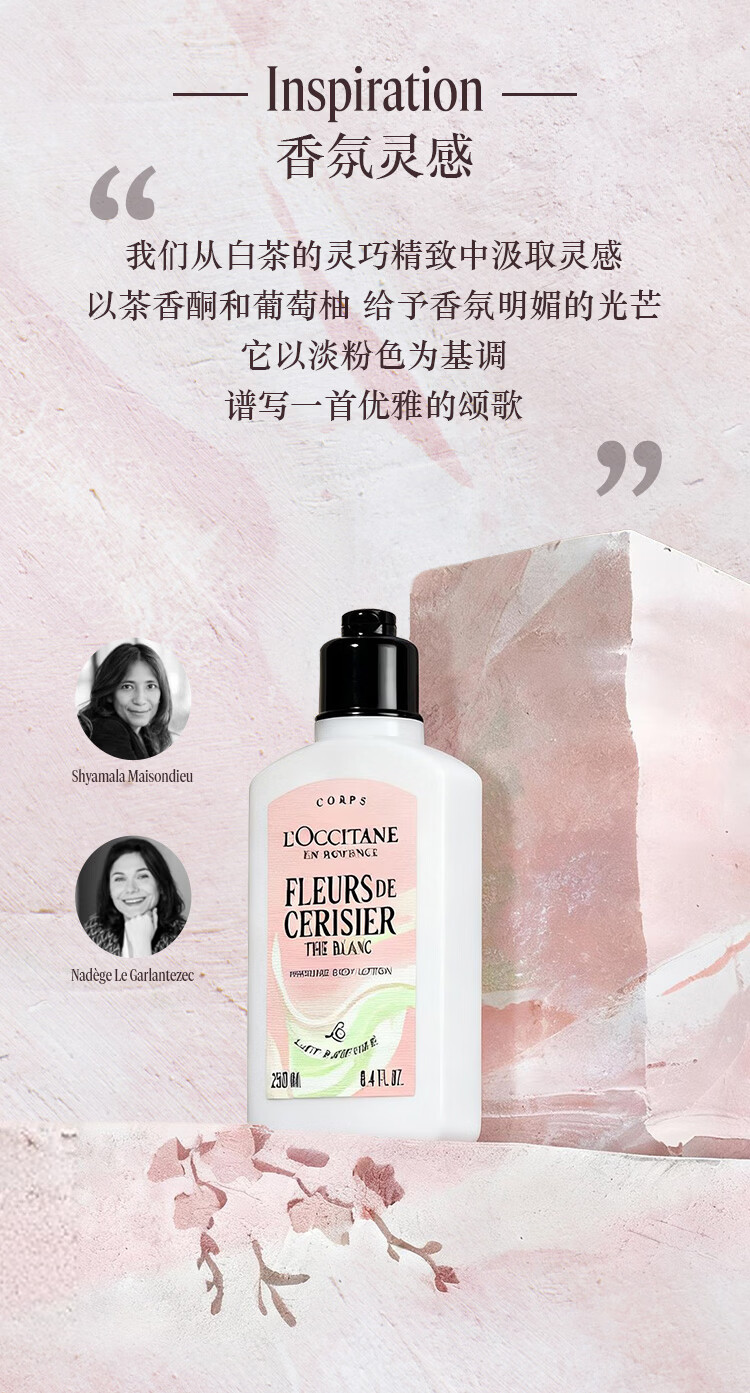 欧舒丹新品白茶恋樱身体乳250ml礼盒水润保湿生日礼物伴手礼送女友