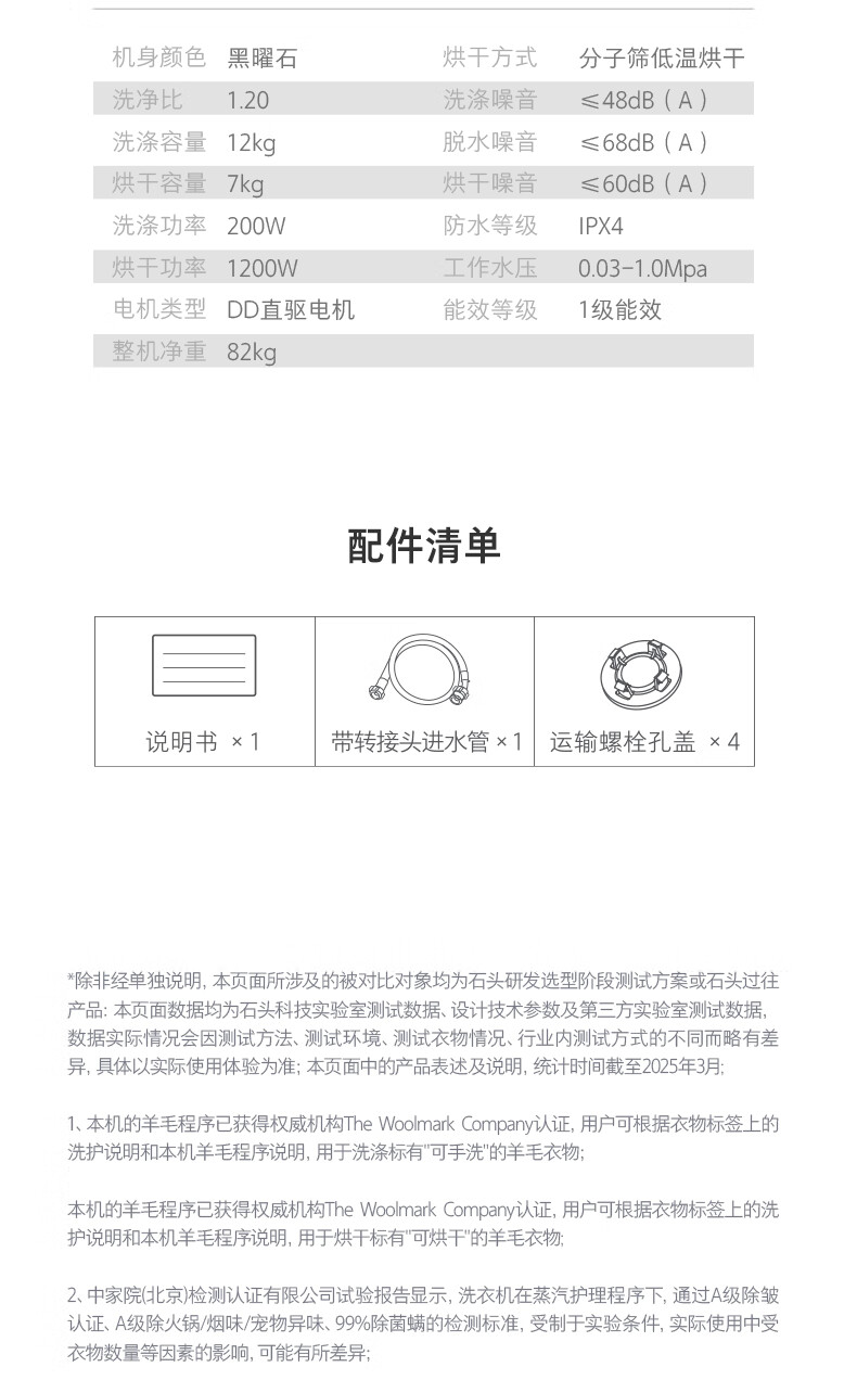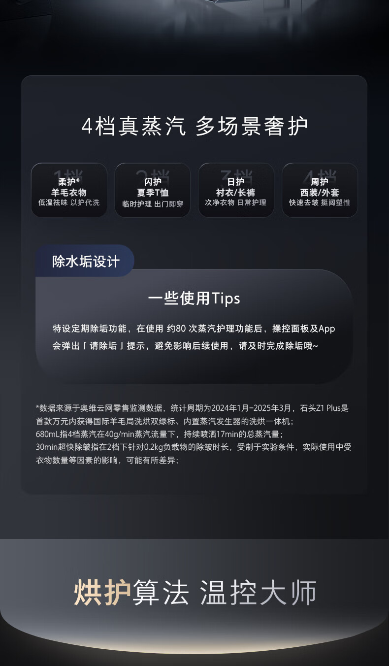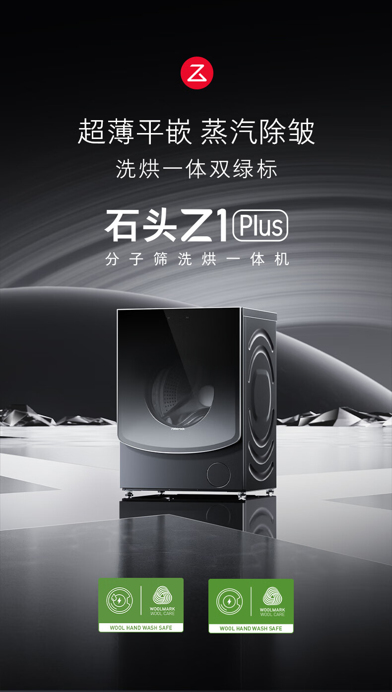 石头分子筛洗烘一体机Z1 Plus 12kg全自动滚筒带烘干洗衣机 蒸汽除皱 国家补贴 黑曜石XQGH120RR203