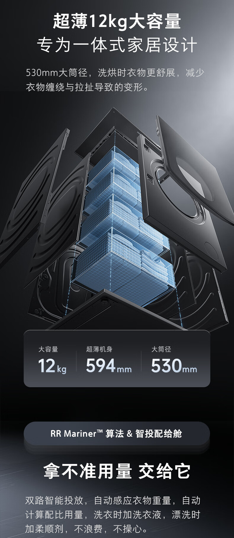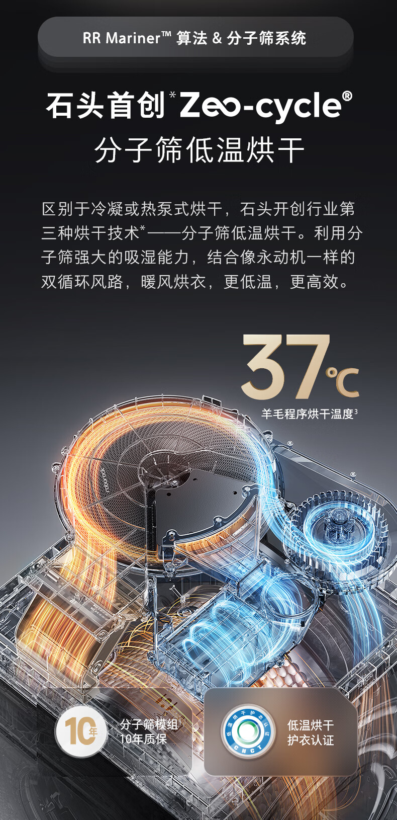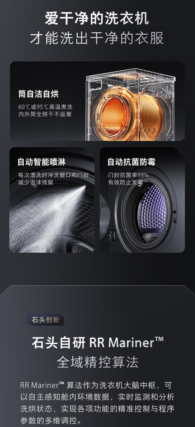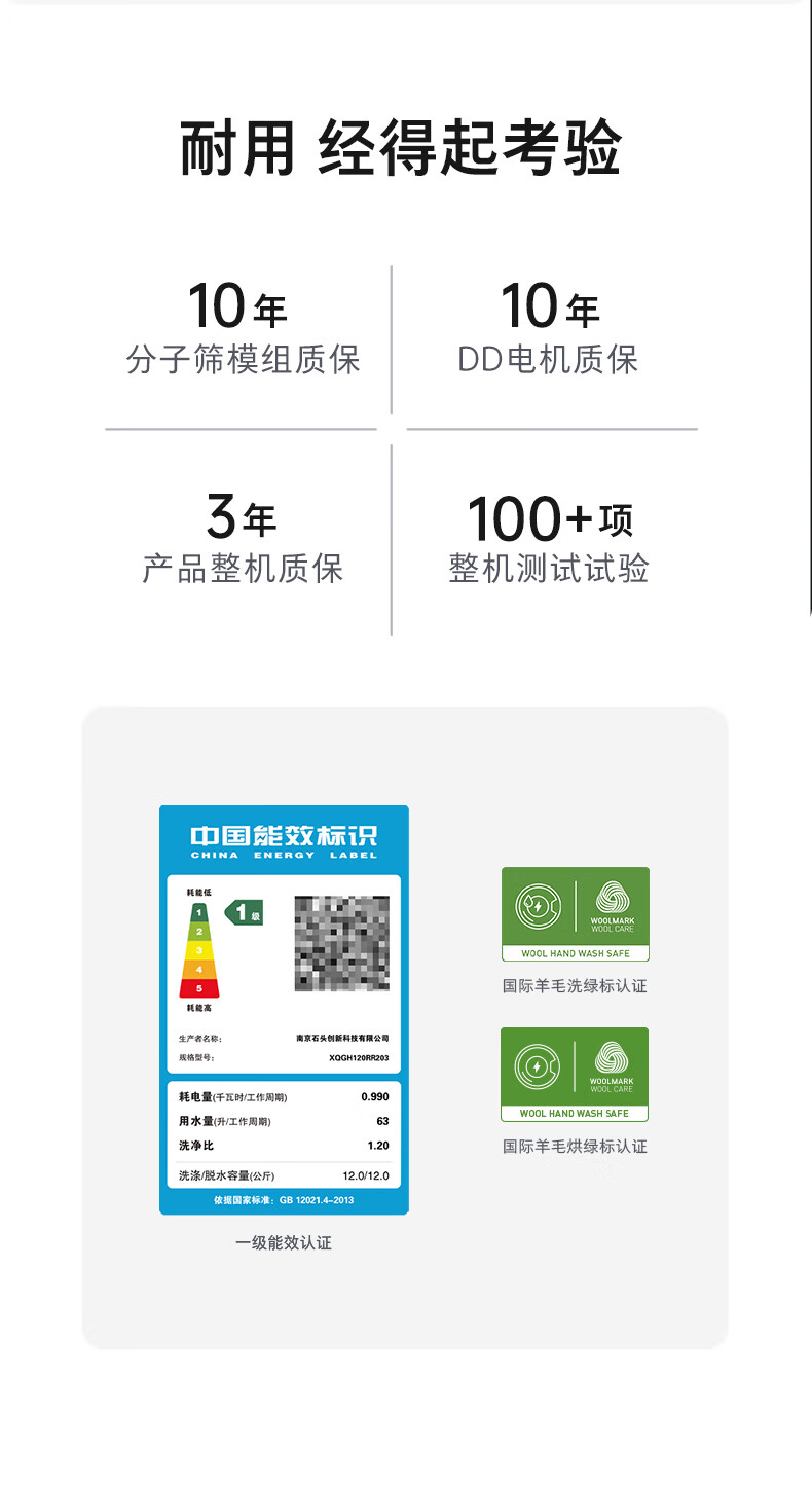 石头分子筛洗烘一体机Z1 全自动滚筒烘干洗衣机 12KG超薄大容量 1.2洗净比 国家补贴XQGH120RR21